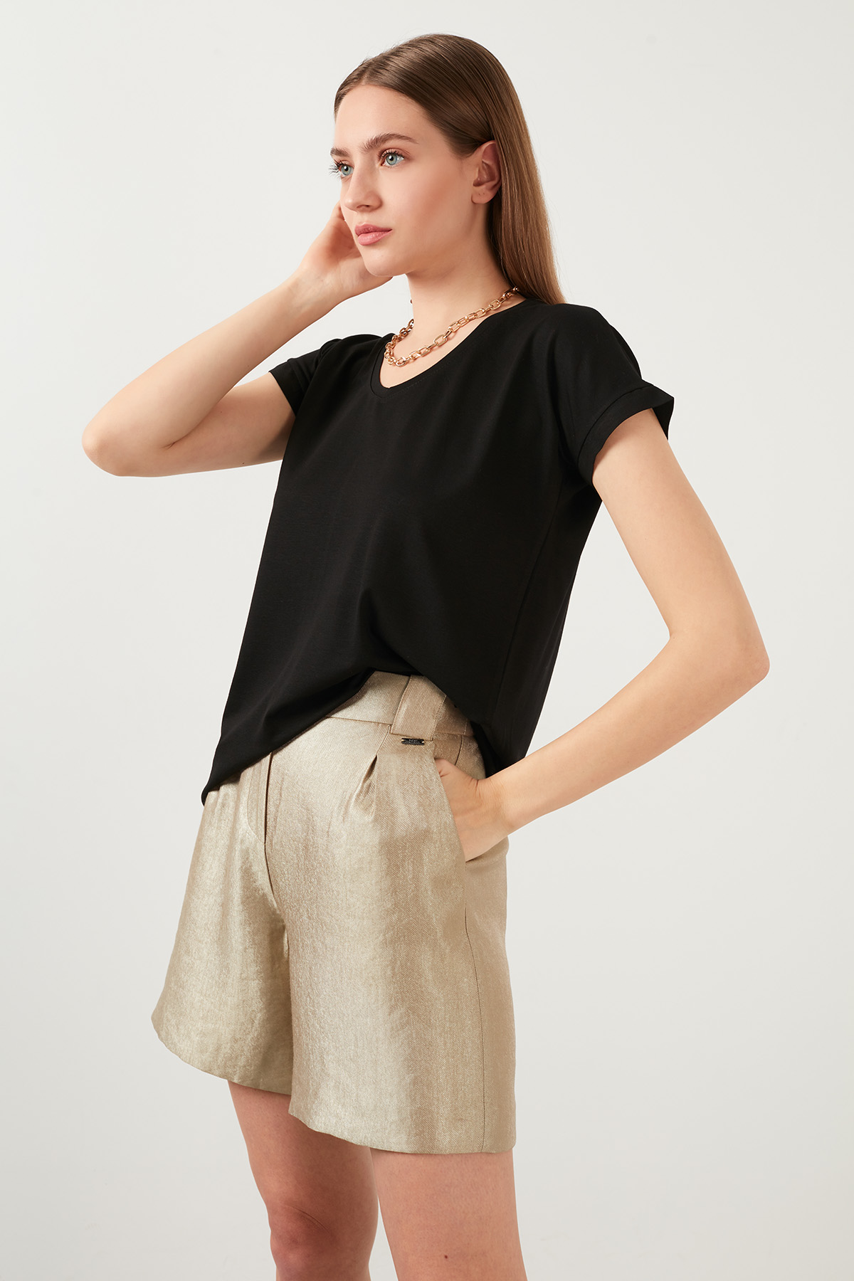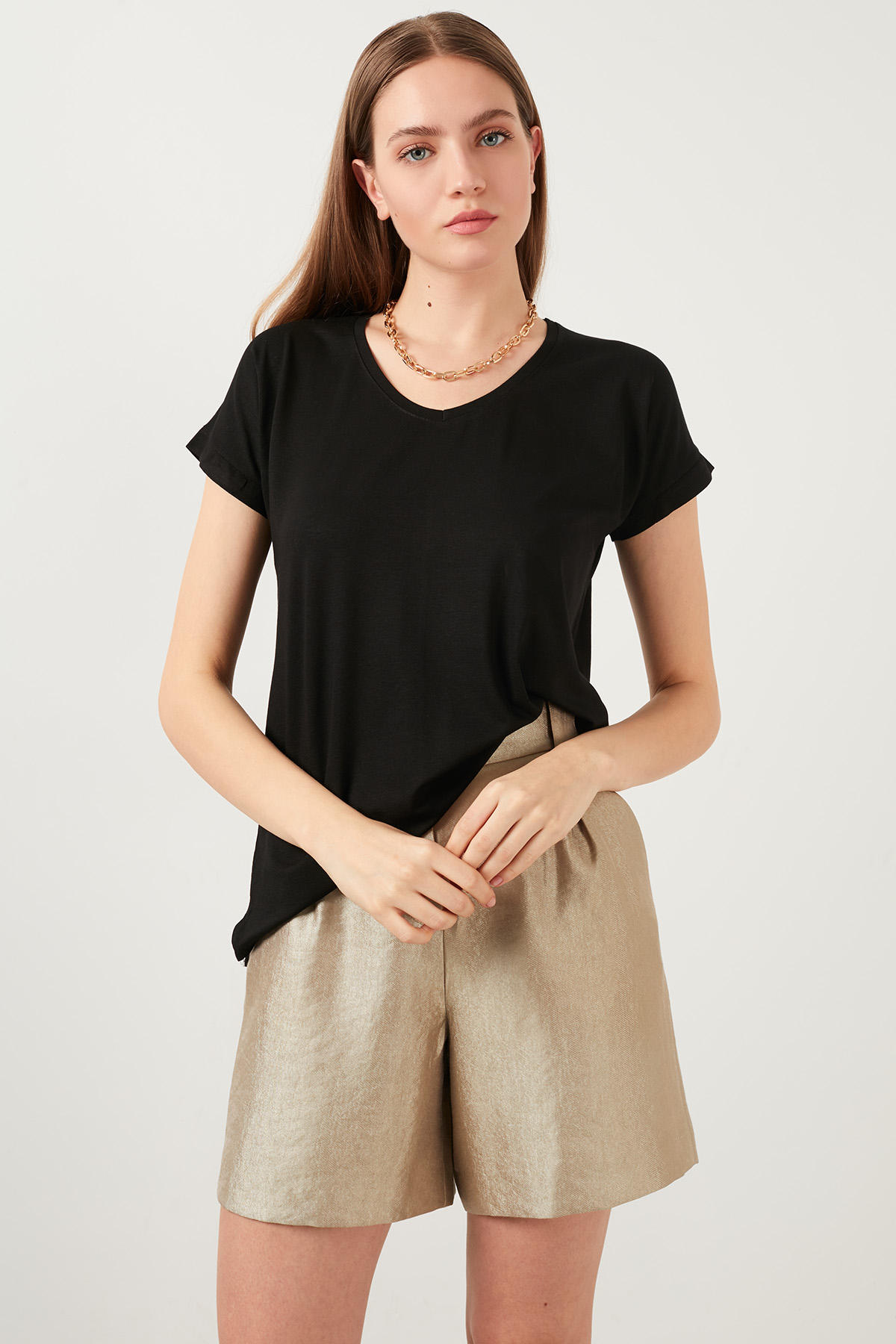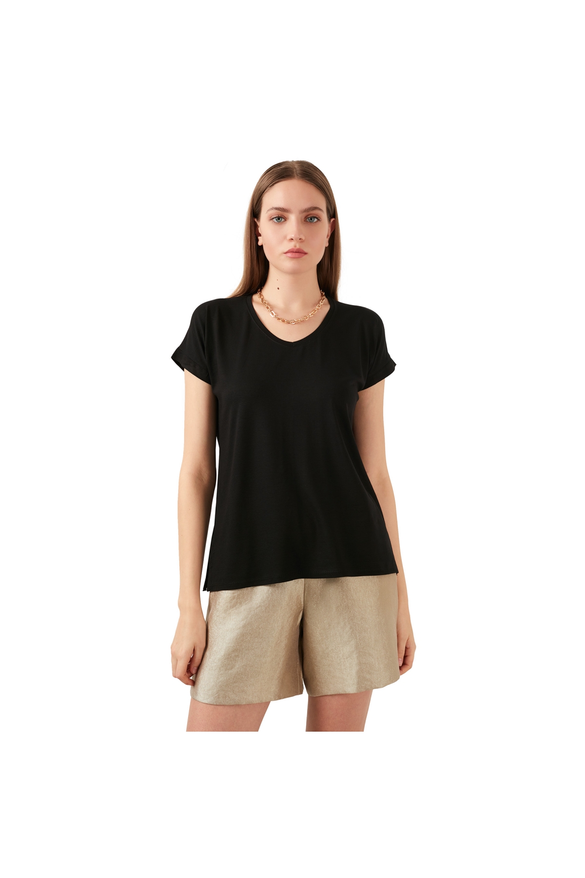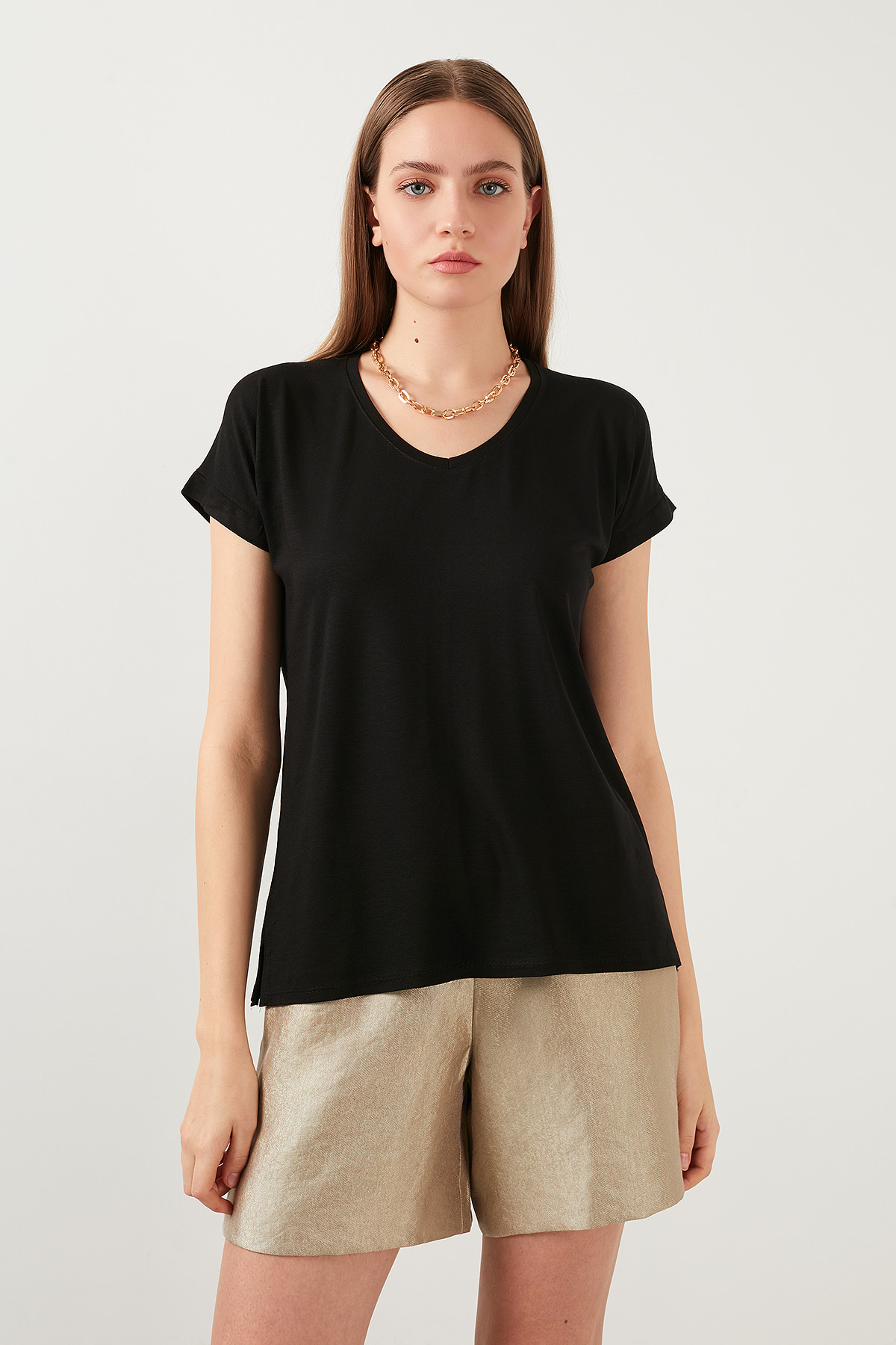 Marka : Lela Model : Bluz Sezon : İlkbahar/Yaz Materyal : % 95 Viskon % 5 Elastan Yaka Bilgisi : V Yaka Kol Bilgisi : Kısa KolManken Ölçüsü : Kilo : 55 kg / Boy : 1.76 cm / Göğüs : 83 cm / Bel : 62 cm / Basen : 91 cm / Beden : MYERLİ ÜRETİM 2DY5862000.07