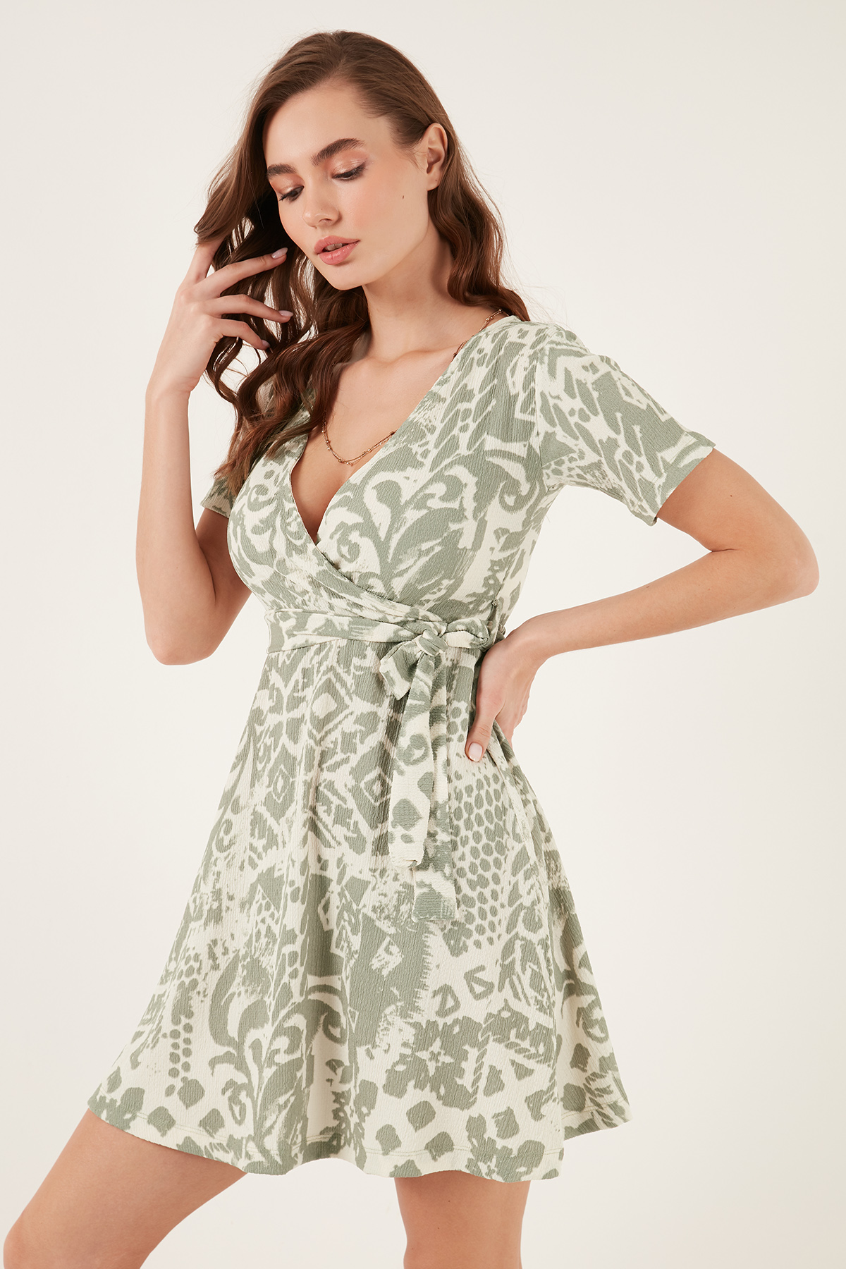 Marka : Lela Model : Elbise Sezon : İlkbahar/Yaz Materyal : % 97 Polyester % 3 Elastan Yaka Bilgisi : Kruvaze Yaka Kol Bilgisi : Kısa KolKalıp Bilgisi : Regular FitManken Ölçüsü : Kilo : 52 kg / Boy : 1.79 cm / Göğüs : 81 cm / Bel : 60 cm / Basen : 90 cm / Beden : MYERLİ ÜRETİM 2DY5865723.2368