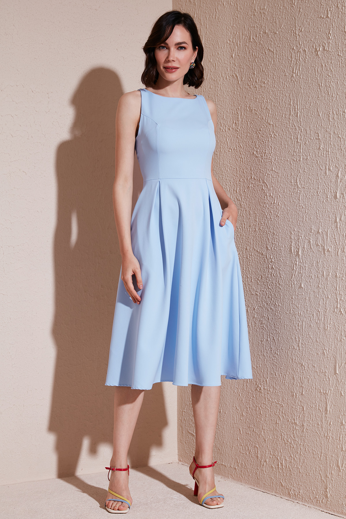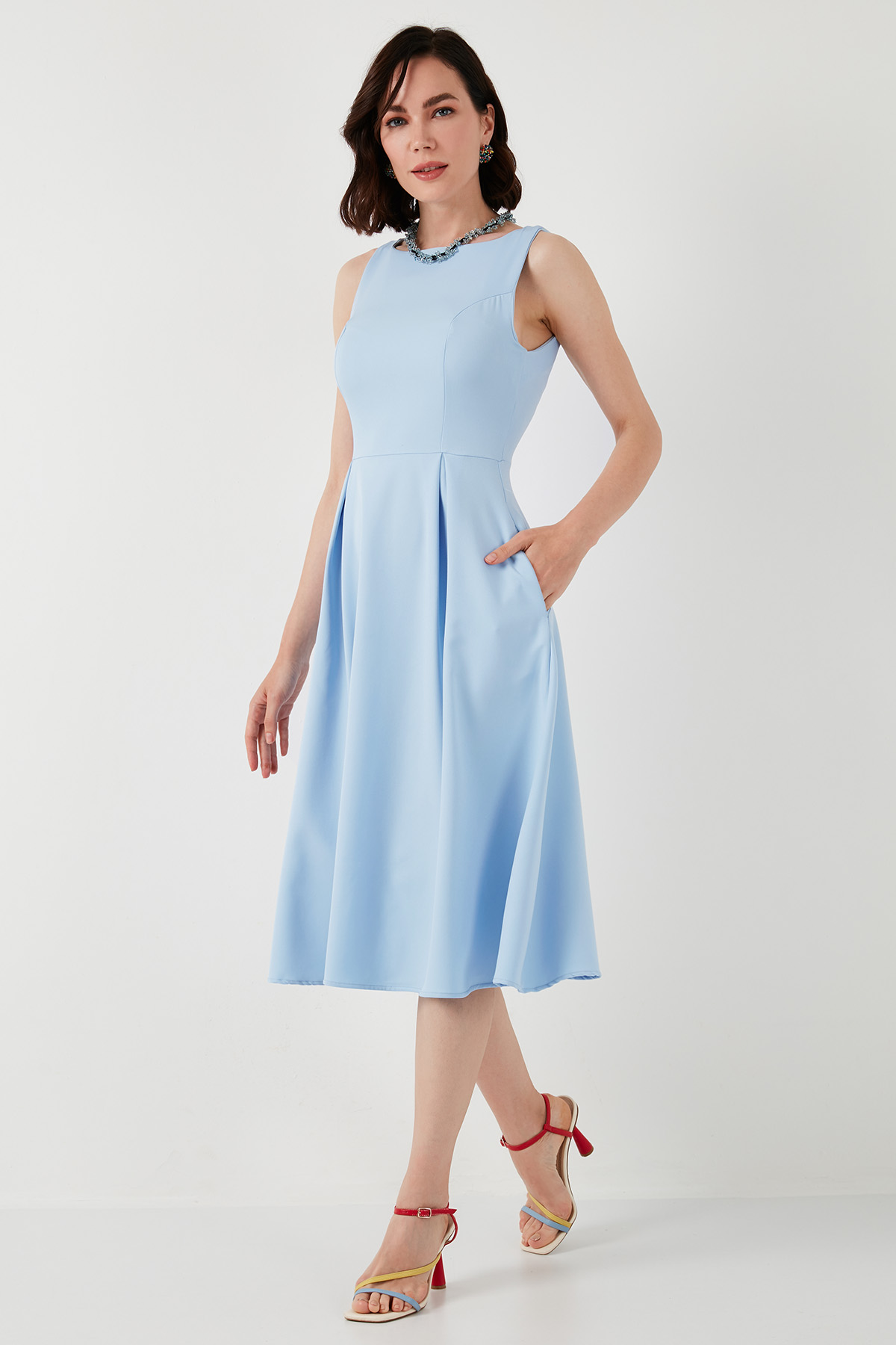 Marka : Lela Model : Elbise Sezon : İlkbahar/Yaz Materyal : % 97 Polyester % 3 Elastan Yaka Bilgisi : Bisiklet YakaKapama Bilgisi : FermuarKol Bilgisi : KolsuzCep Bilgisi : CepliKalıp Bilgisi : Regular FitManken Ölçüsü : Boy : 1.76 cm / Göğüs : 89 cm / Bel : 62 cm / Basen : 89 cm / Beden : 36Üretim Yeri : Türkiye 2DY6051963.2565
