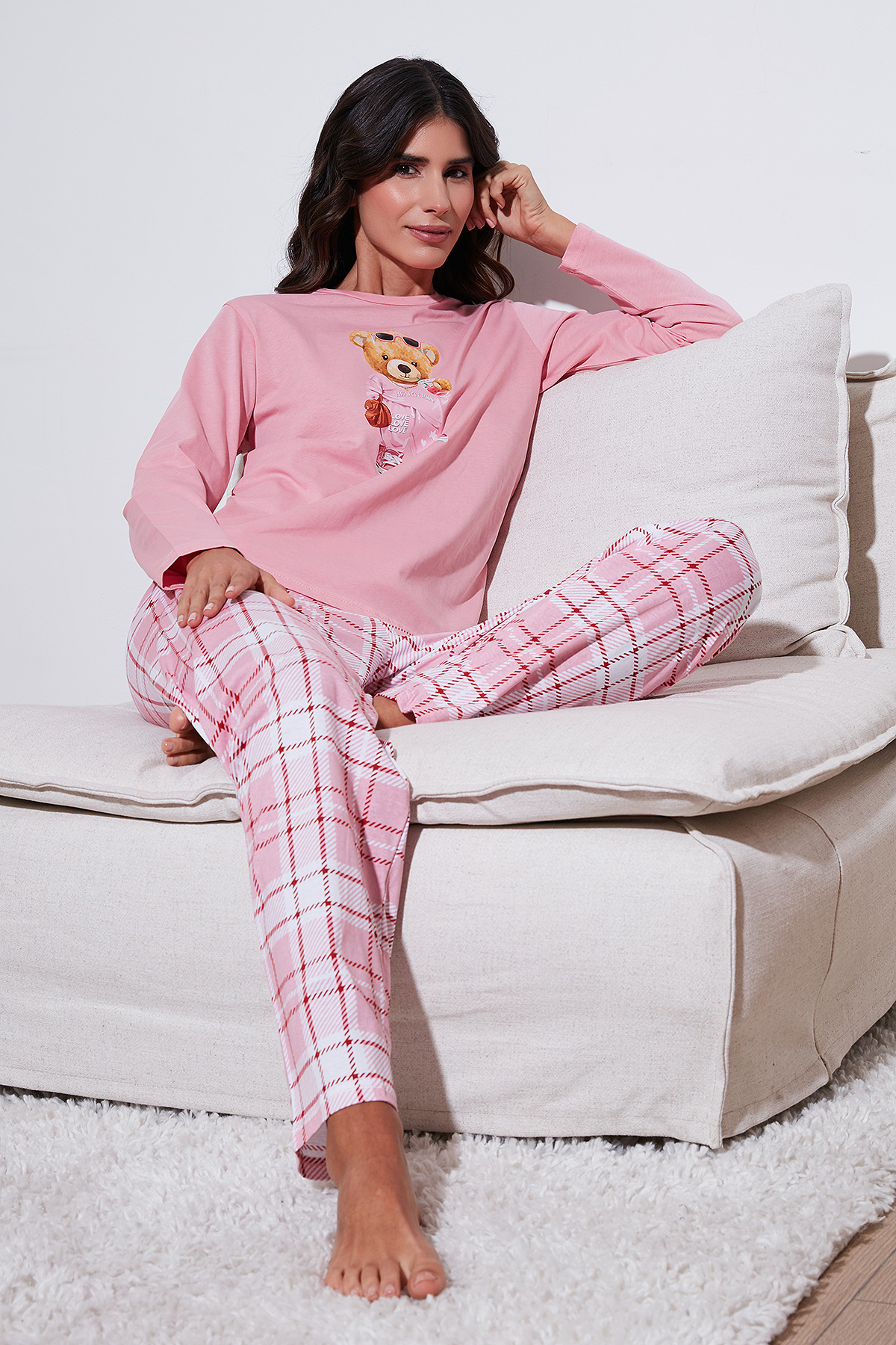 Model: Pijama Takımı Giyim Tarzı: Ev Giyim Desen: Baskılı Materyal: % 100 Pamuk Yaka Tipi: Bisiklet Yaka Kapama Şekli: Lastikli Bel Kol Boyu: Uzun Kol Kumaş Tipi: Belirtilmemiş Bel: Normal Bel Boy: Standart Paça Tipi: Düz Paça Kalıp Bilgisi: Regular Fit Manken Bedeni: Boy : 1.80 cm / Göğüs : 80 cm / Bel : 60 cm / Basen : 89 cm / Beden : M Yaş Grubu: Yetişkin Menşei: Türkiye 2DK65723314.37