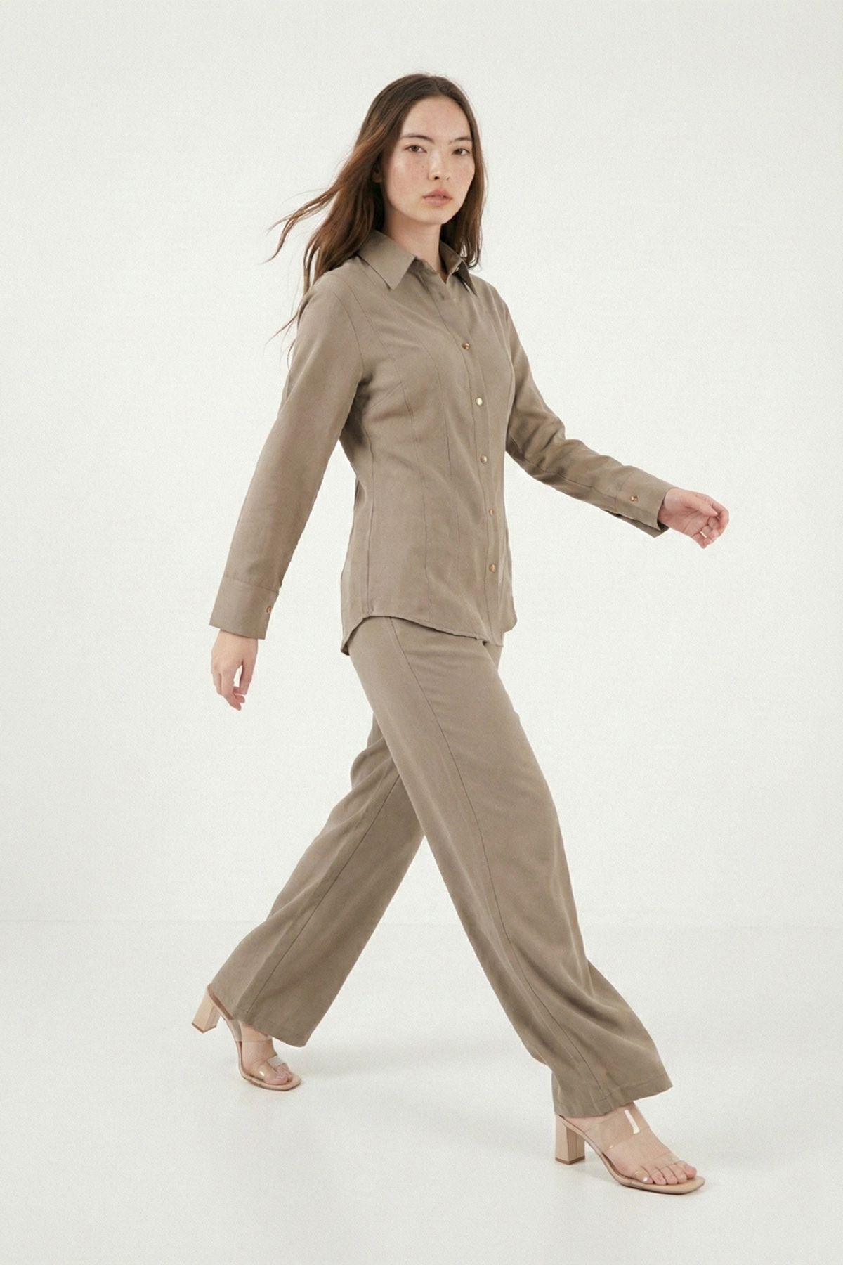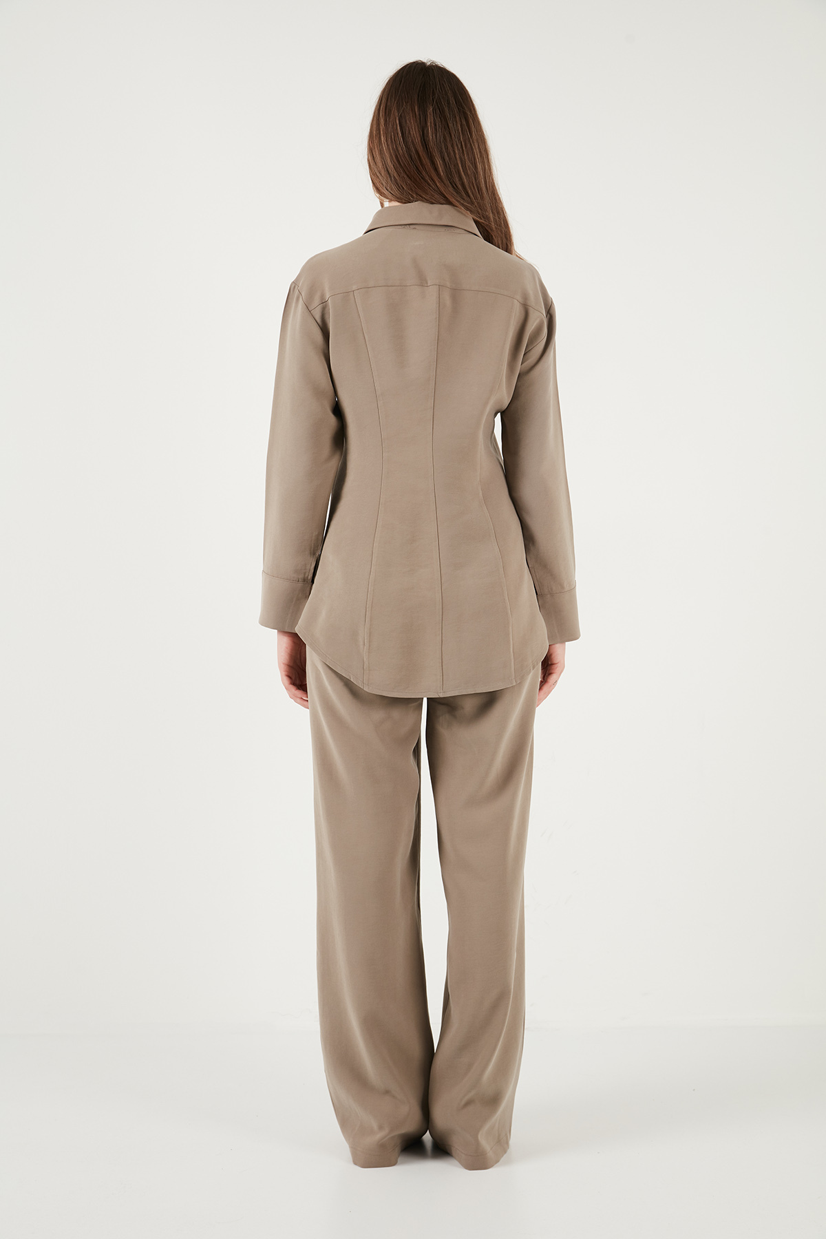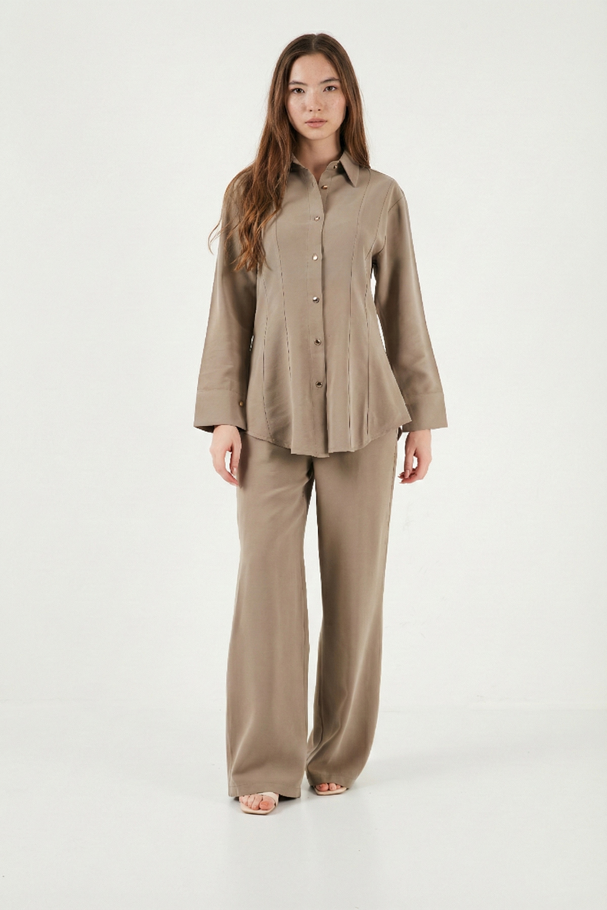 Model: Takım Giyim Tarzı: Günlük/Casual Desen: Düz Materyal: % 91 Viskon % 9 Polyester Yaka Tipi: Klasik Yaka Kapama Şekli: Düğmeli Kol Tipi: Uzun Kol Cep: Cepli Kumaş Tipi: Belirtilmemiş Boy: Standart Paça Tipi: Geniş Paça Kalıp Bilgisi: Regular Fit Yaş Grubu: Yetişkin Menşei: Türkiye Detaylar: Belden oturmalı kesimiyle şık ve düzgün bir siluet oluşturur 2DY6928872.65