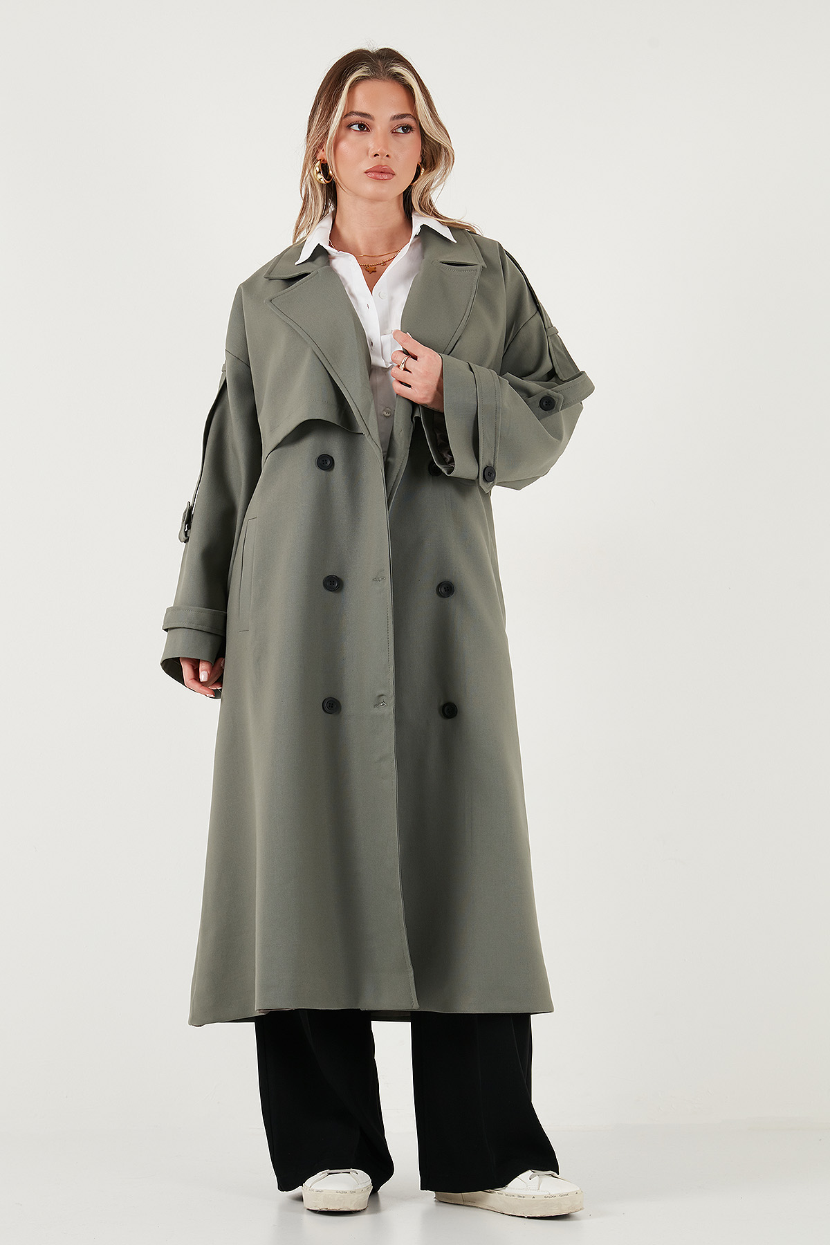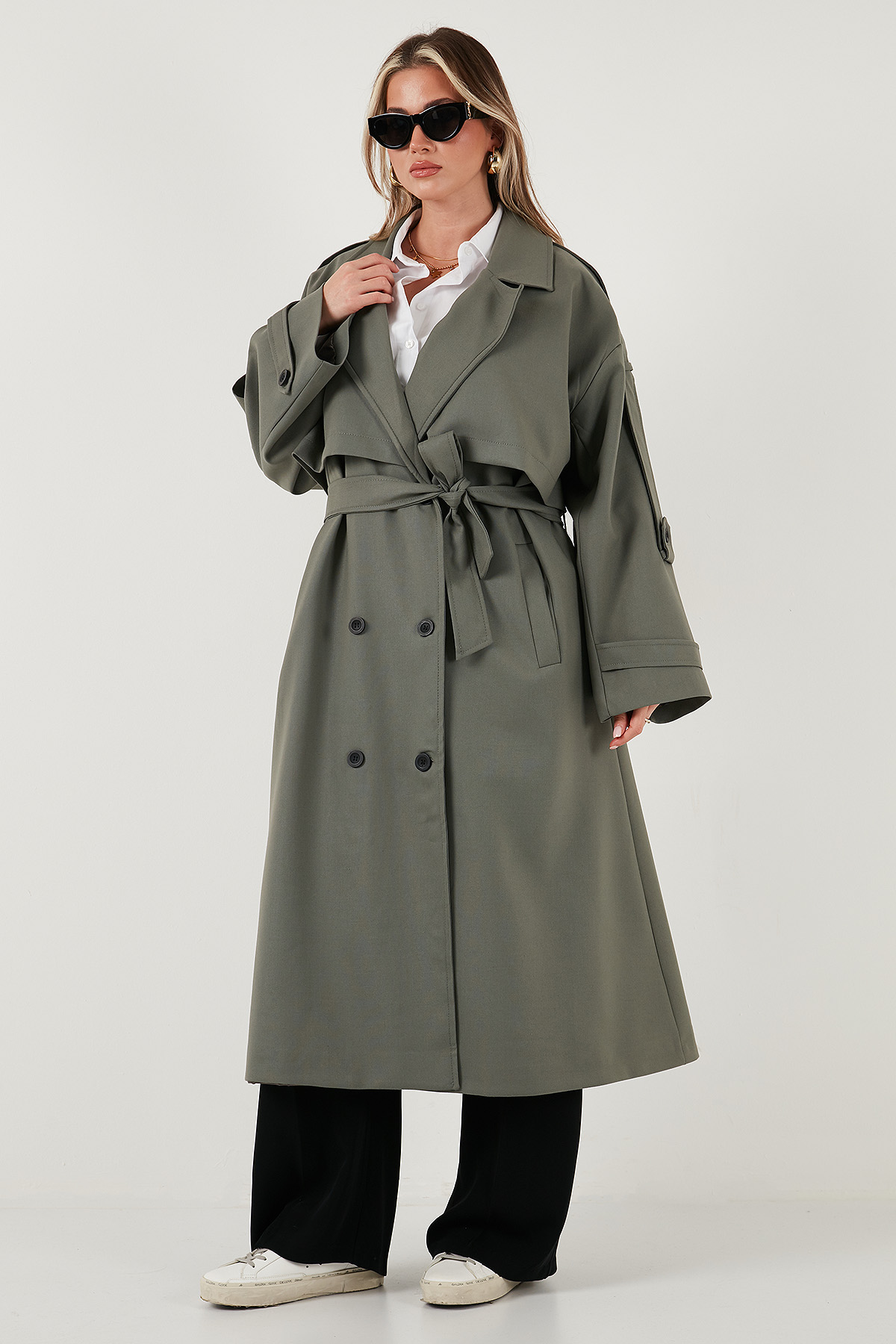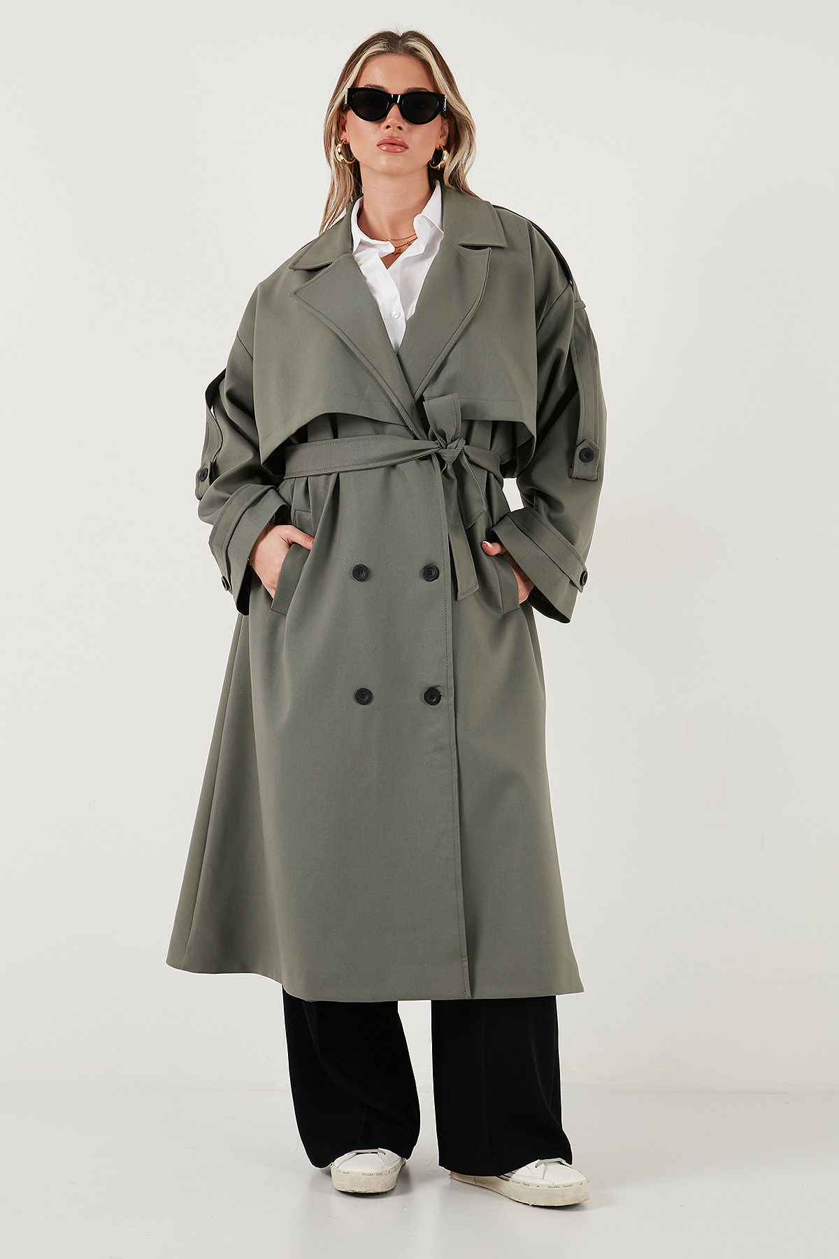 Model: Trençkot Giyim Tarzı: Günlük/Casual Materyal: % 64 Polyester % 31 Viskon % 5 Elastan Yaka Tipi: Kruvaze Yaka Kapama Şekli: Düğme ve Kemerli Cep: Cepli Kumaş Tipi: Belirtilmemiş Astar Durumu: Astarlı Boy: Uzun Kalıp Bilgisi: Oversize Fit Manken Bedeni: Boy: 1.78 cm / Göğüs: 85 cm / Bel: 62 cm / Basen: 92 cm / Beden: Onesize Yaş Grubu: Yetişkin Menşei: Türkiye 2DK6839476.65