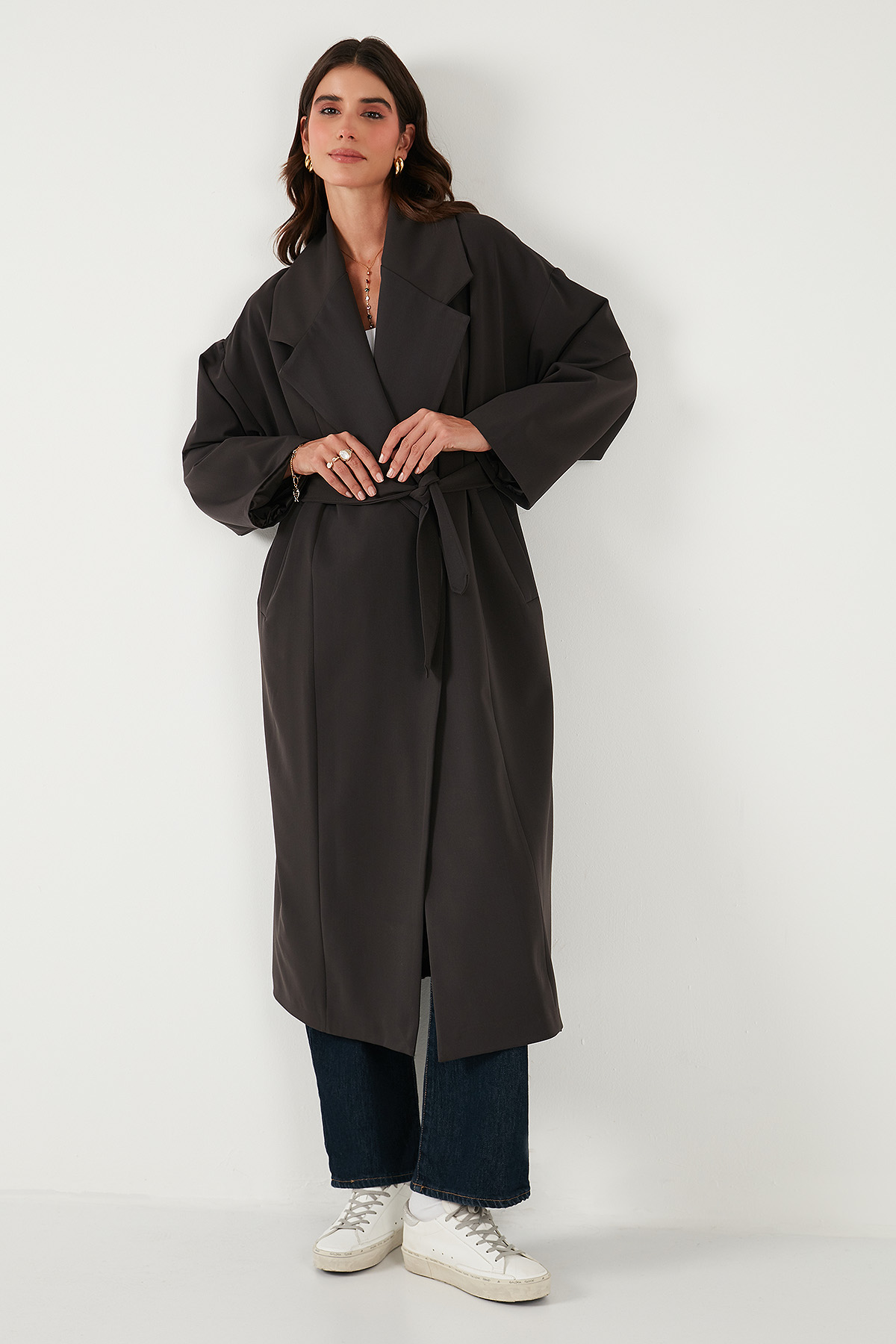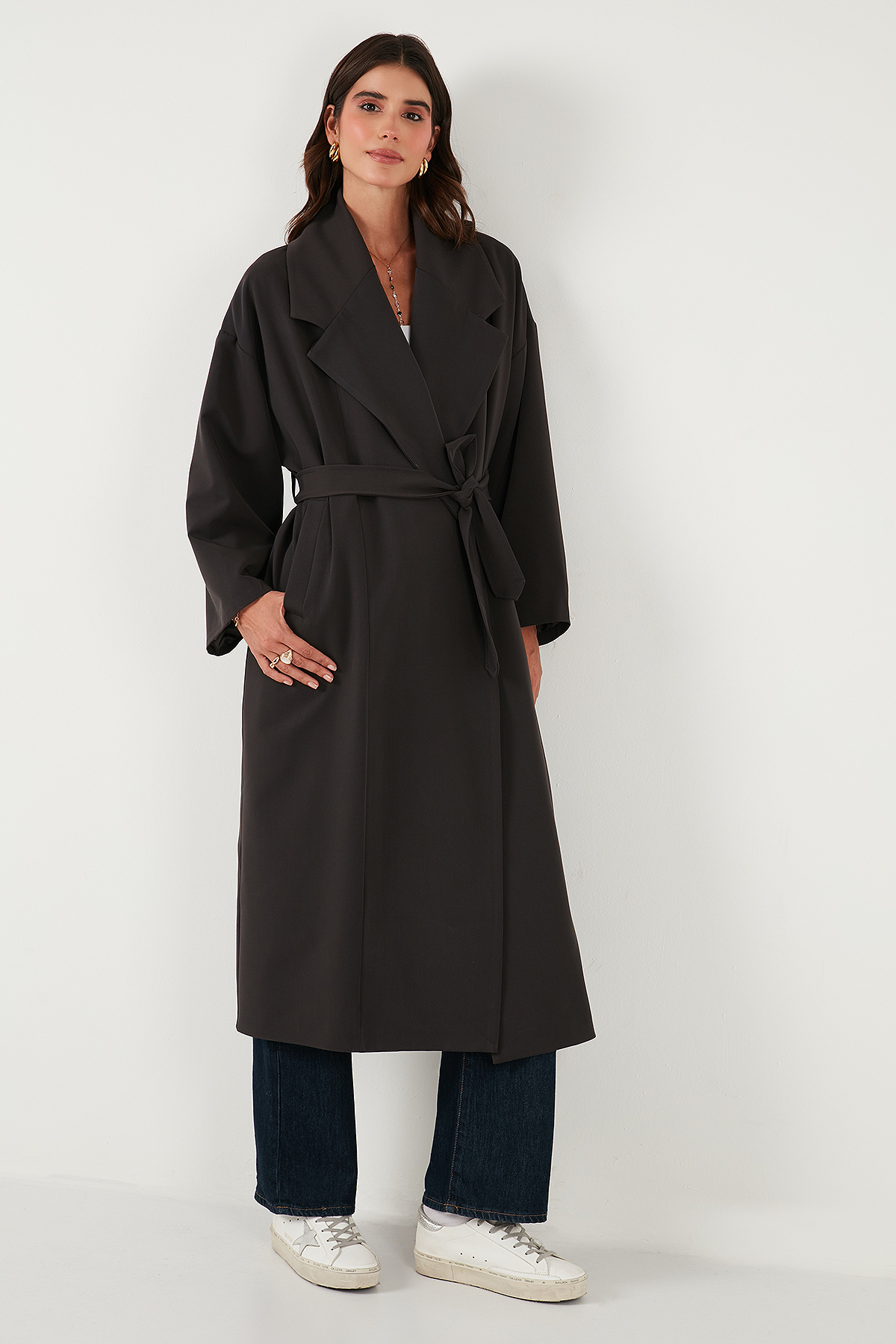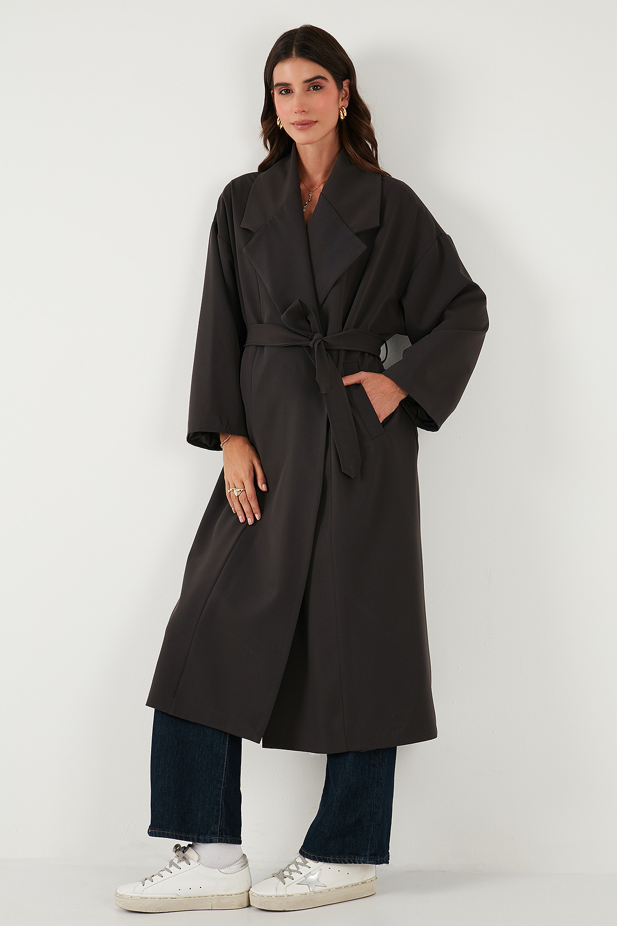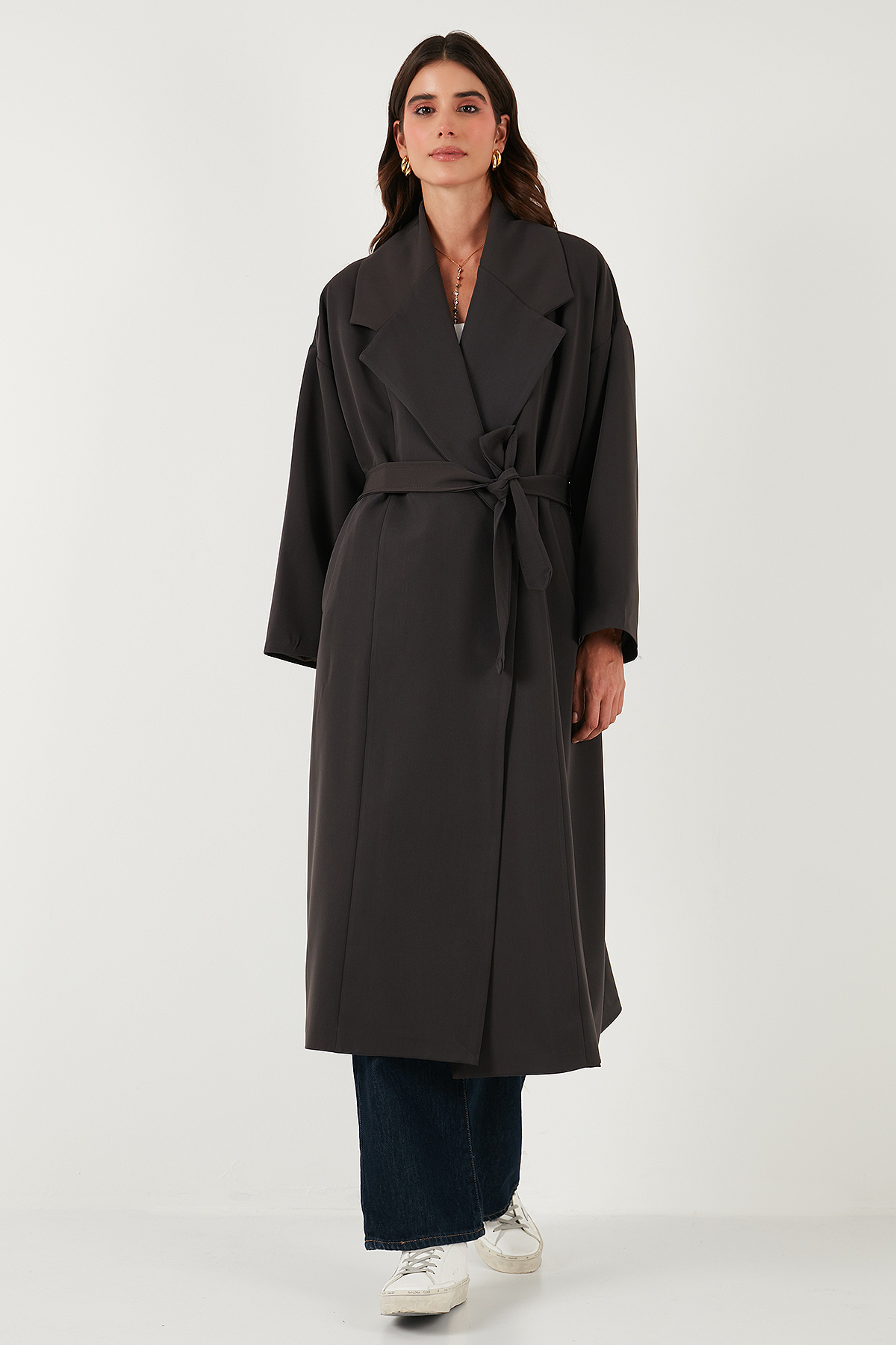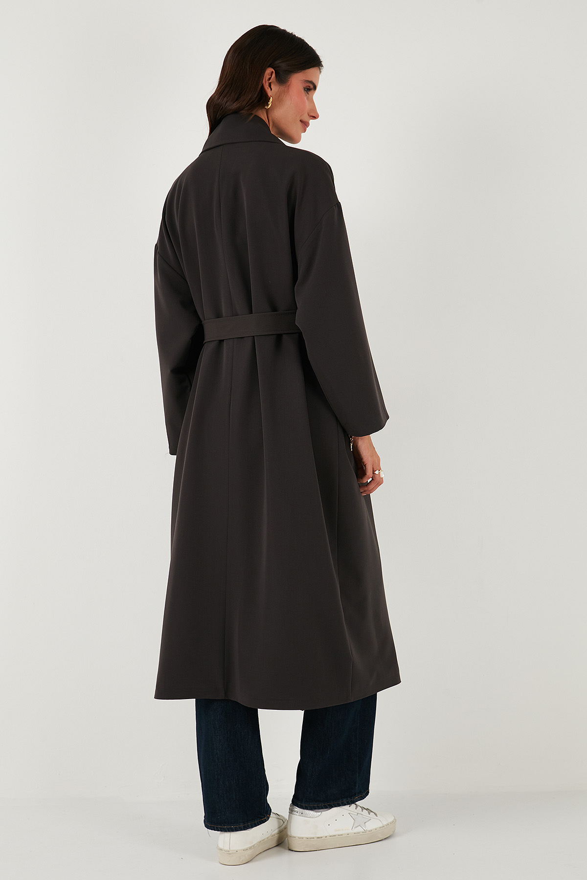 Model: Trençkot Giyim Tarzı: Günlük/Casual Materyal: % 64 Polyester % 31 Viskon % 5 Elastan Yaka Tipi: Kruvaze Yaka Kapama Şekli: Bağlamalı Kol Tipi: Uzun Kol Cep: Cepli Kumaş Tipi: Belirtilmemiş Astar Durumu: Astarlı Boy: Uzun Kalıp Bilgisi: Oversize Fit Manken Bedeni: Boy : 1.80 cm / Göğüs : 80 cm / Bel : 60 cm / Basen : 89 cm / Beden : Onesıze Yaş Grubu: Yetişkin Menşei: Türkiye 2DK6839617.151