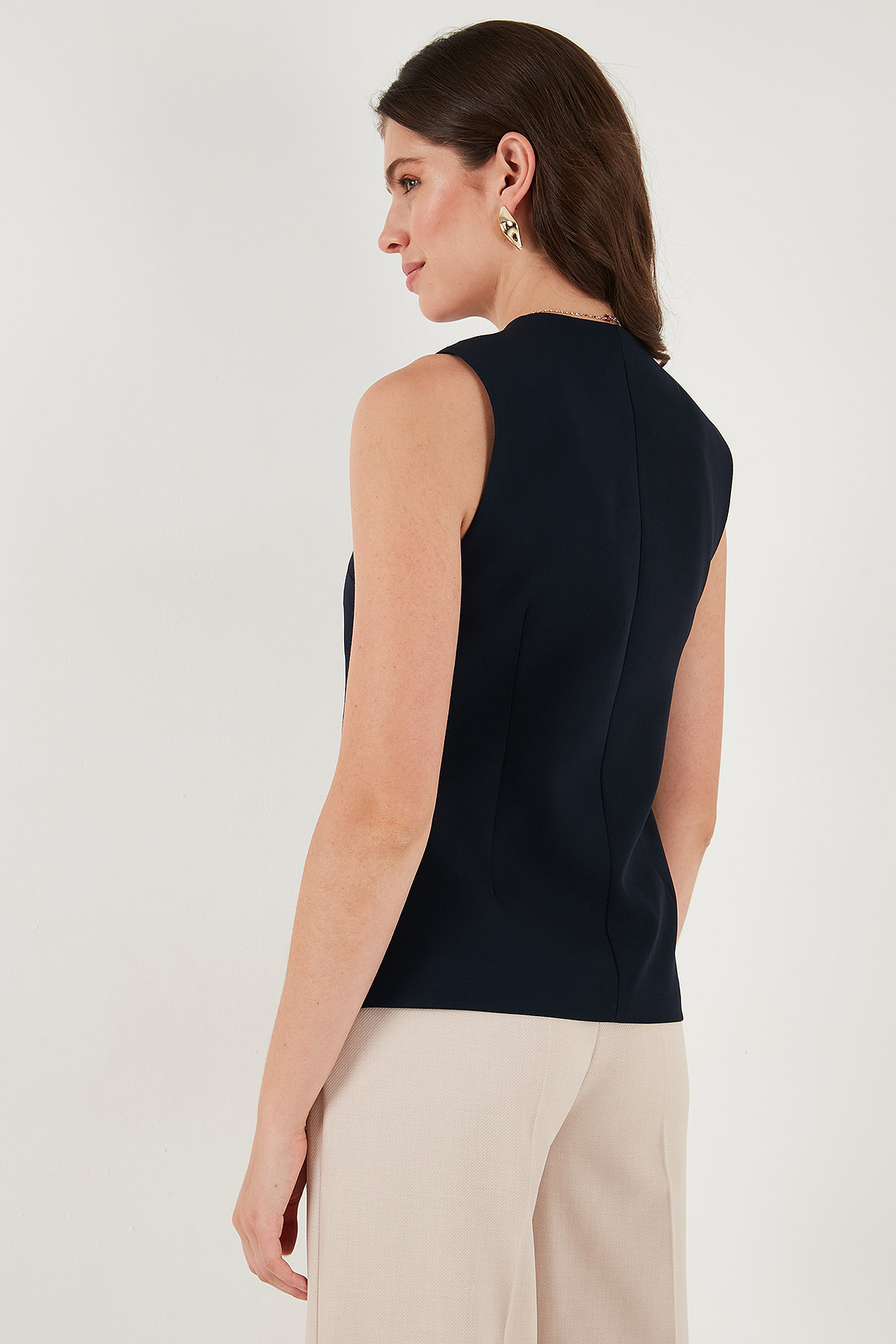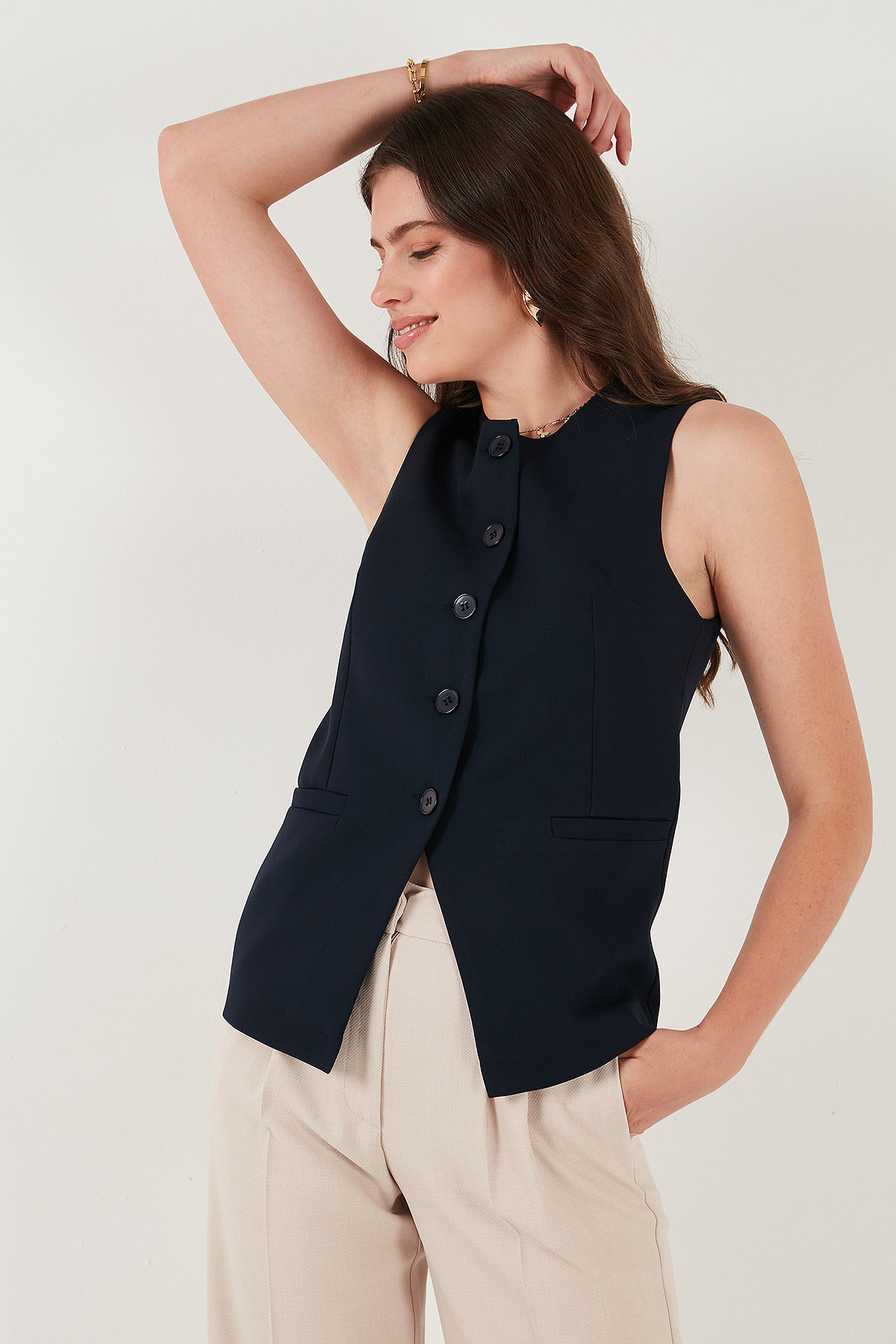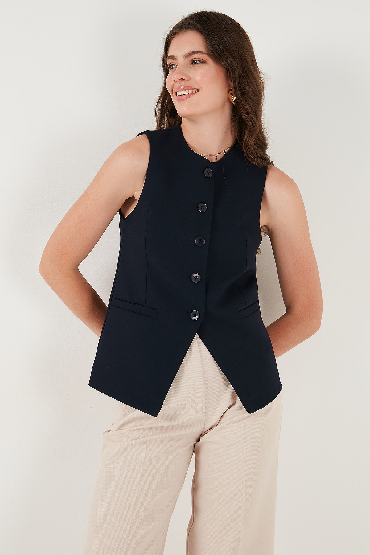 Model: Yelek Giyim Tarzı: Günlük/Ofis/Özel Gün Materyal: % 88 Polyester % 12 Elastan Yaka Tipi: Bisiklet Yaka Kapama Şekli: Düğmeli Kol Tipi: Kolsuz Cep: Cepli Kalıp Bilgisi: Regular Fit Manken Bedeni: Boy : 1.80 cm / Göğüs : 80 cm / Bel : 65 cm / Basen : 91 cm / Beden : S Menşei: Türkiye 2DE65200004.12
