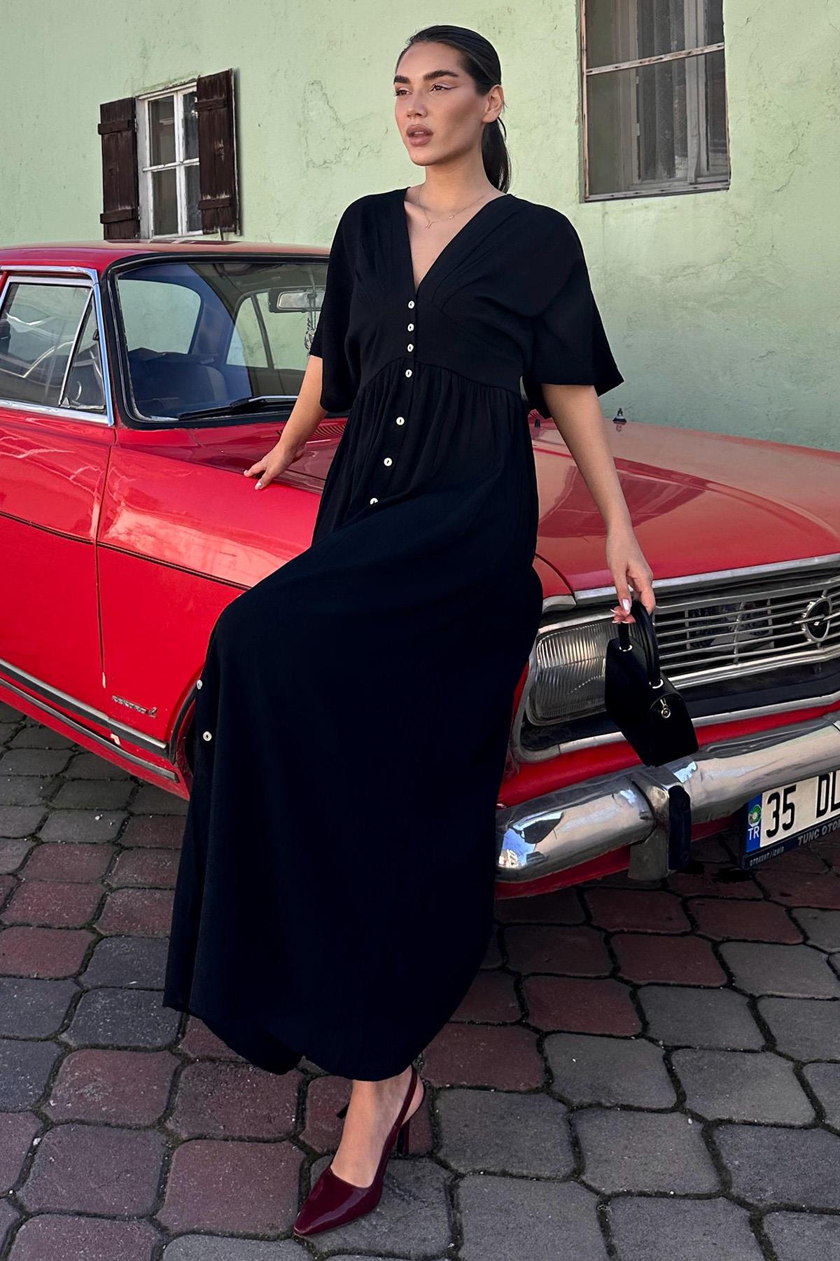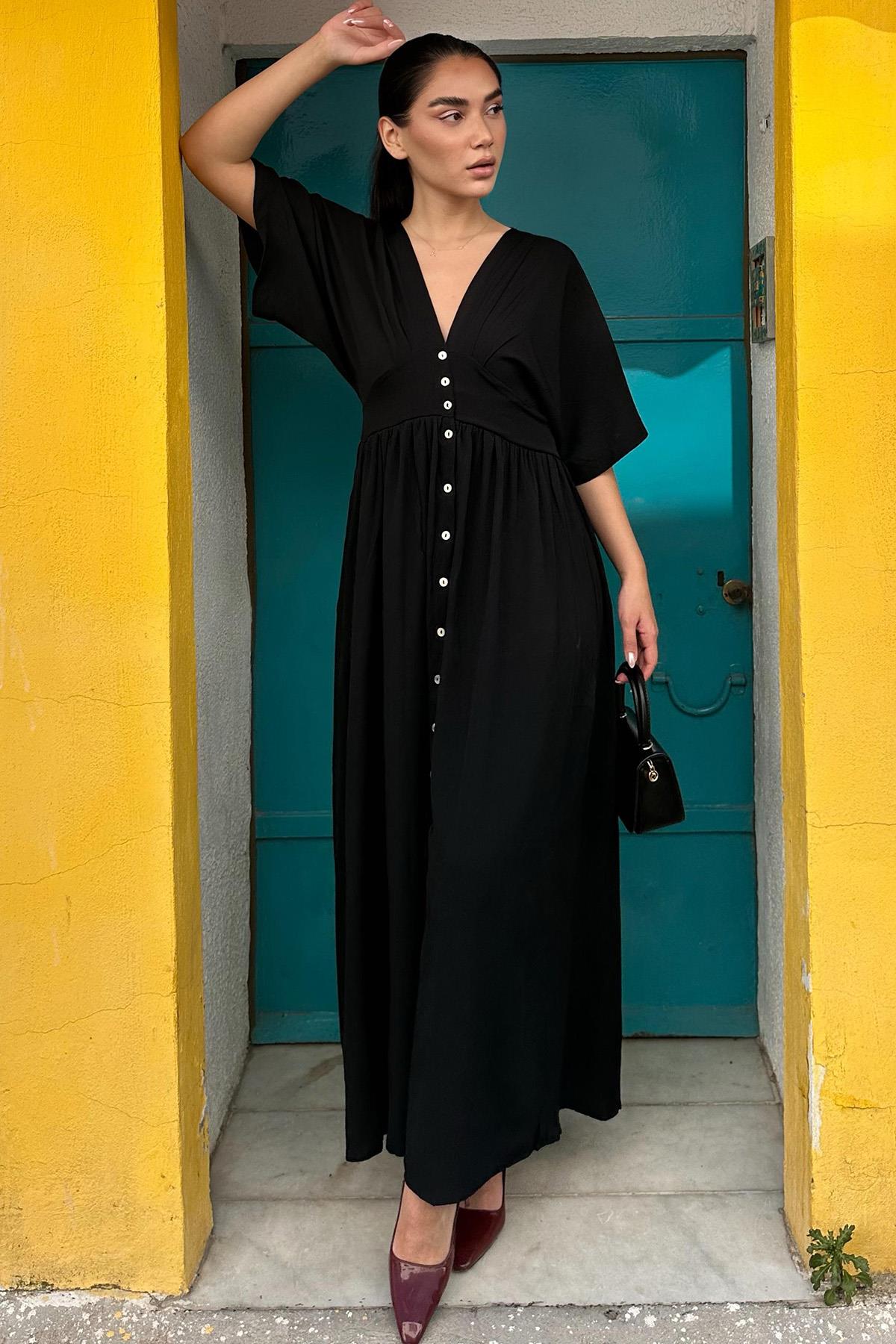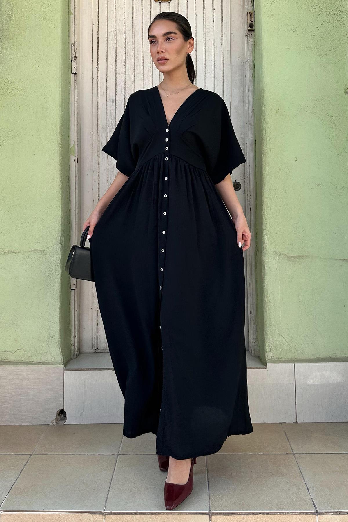 AnasayfaGiyimElbiseAbiye elbiseSiyah v yaka düğmeli elbise mg2339