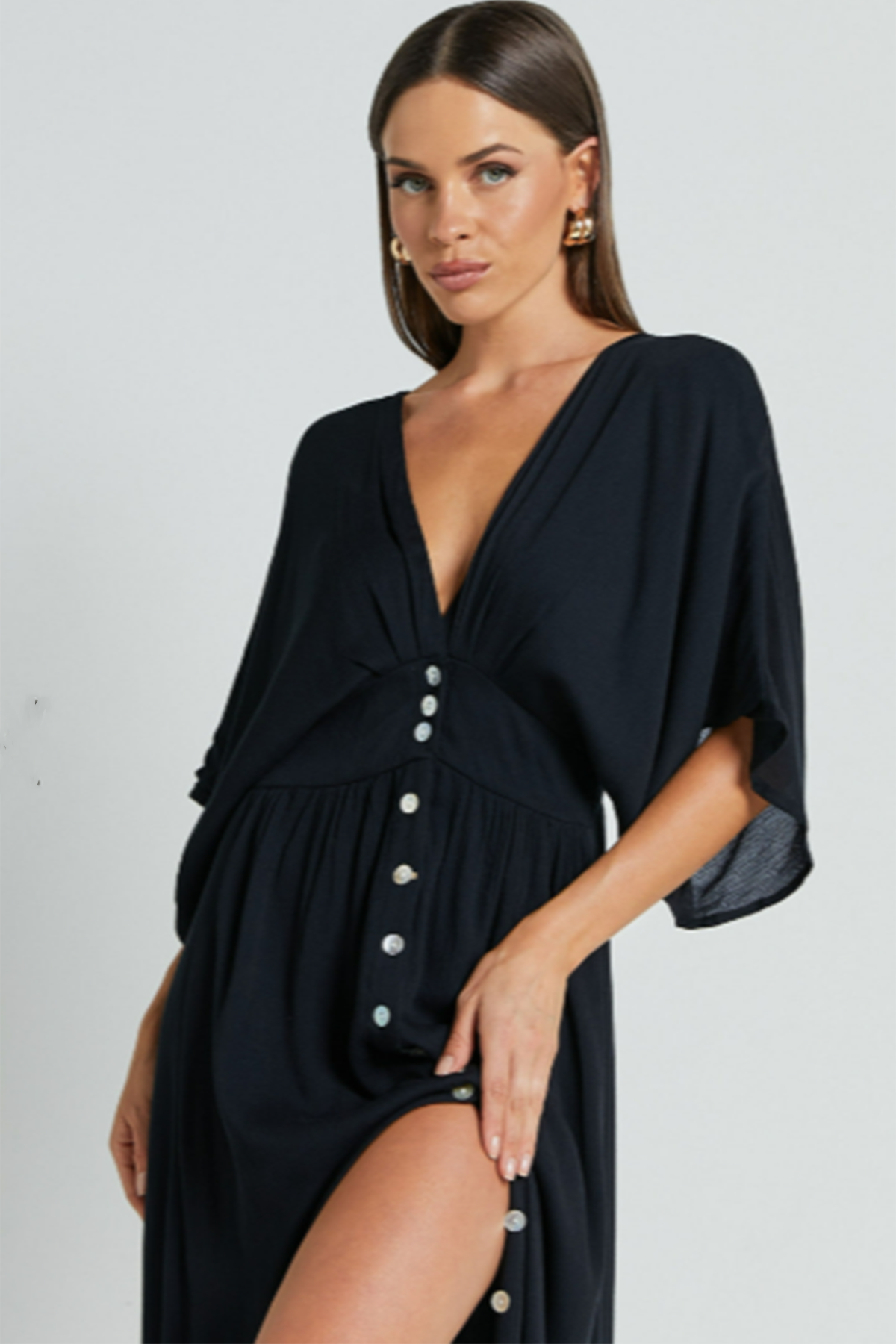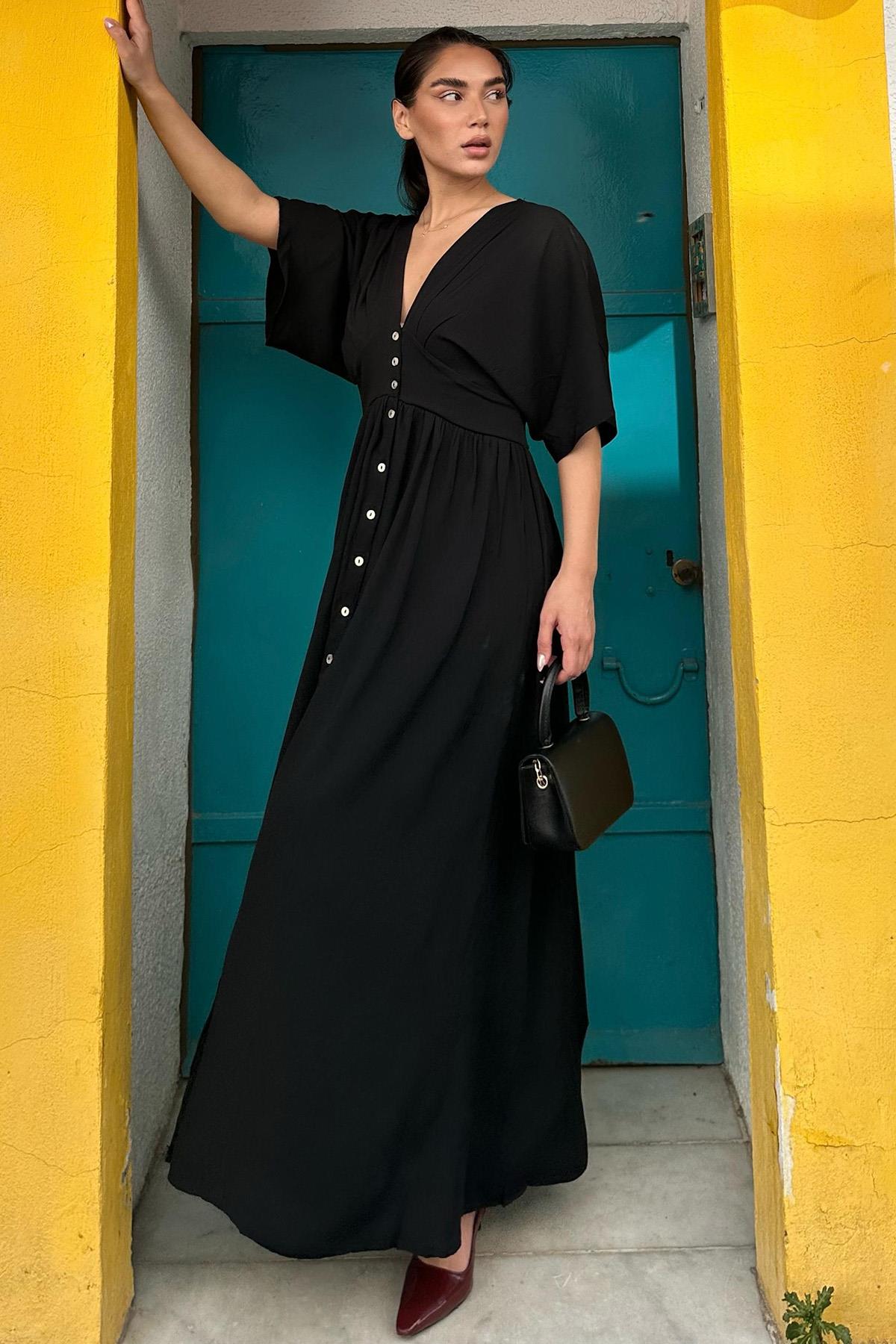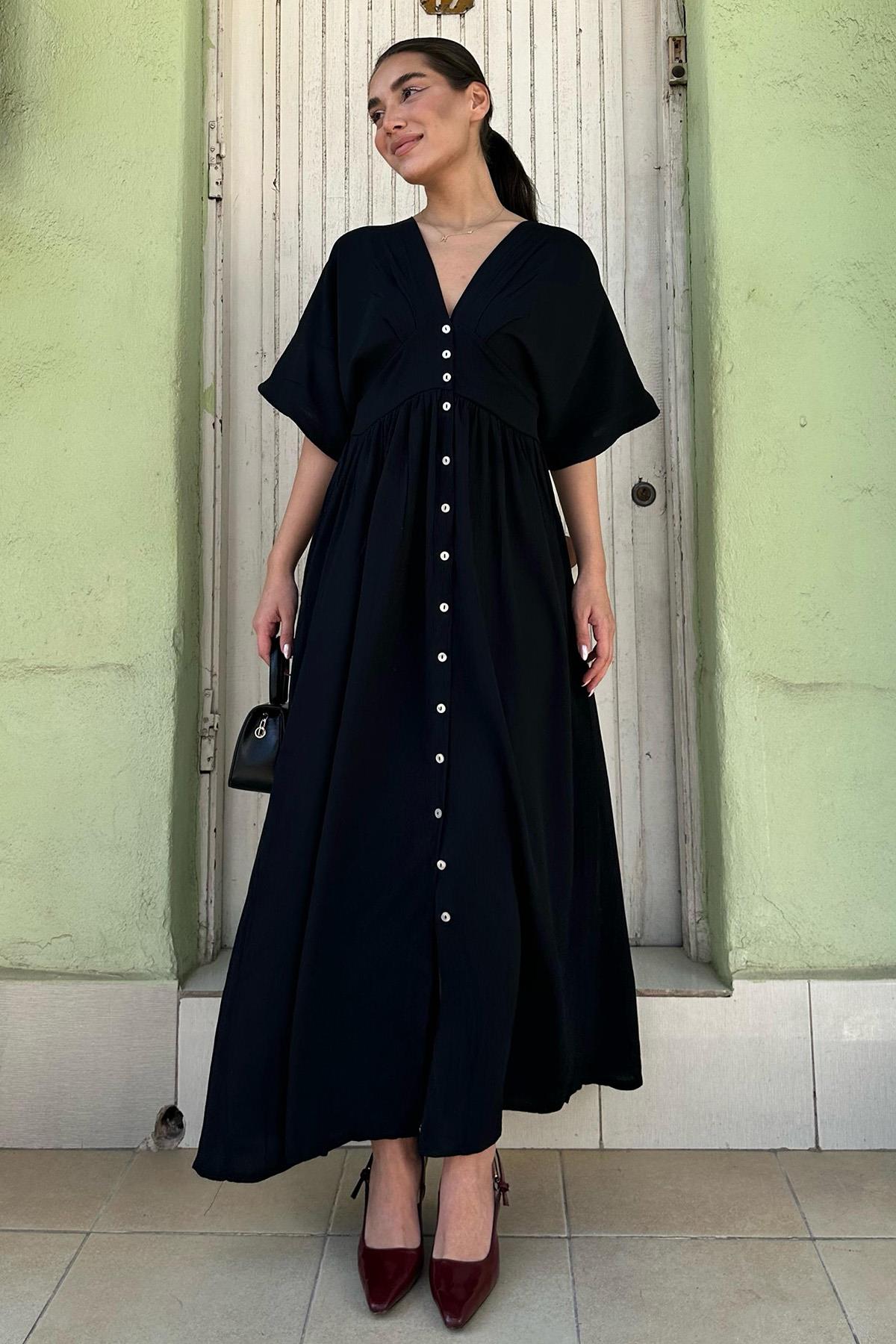 AnasayfaGiyimElbiseAbiye elbiseSiyah v yaka düğmeli elbise mg2339