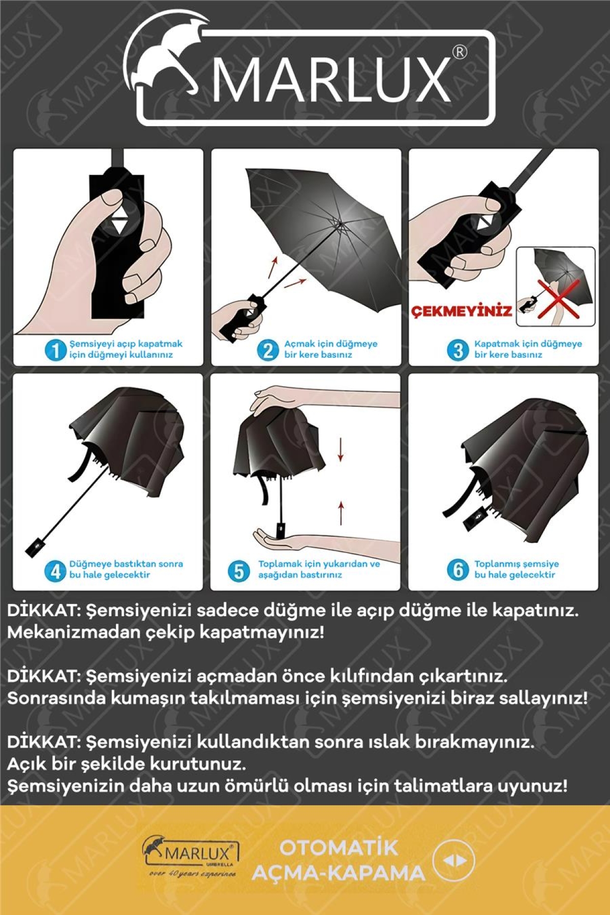 • Şık ve modern tasarımıyla dikkat çeken lüks 10 tel şemsiye, her yaştan kullanıcıya hitap eden unisex bir üründür