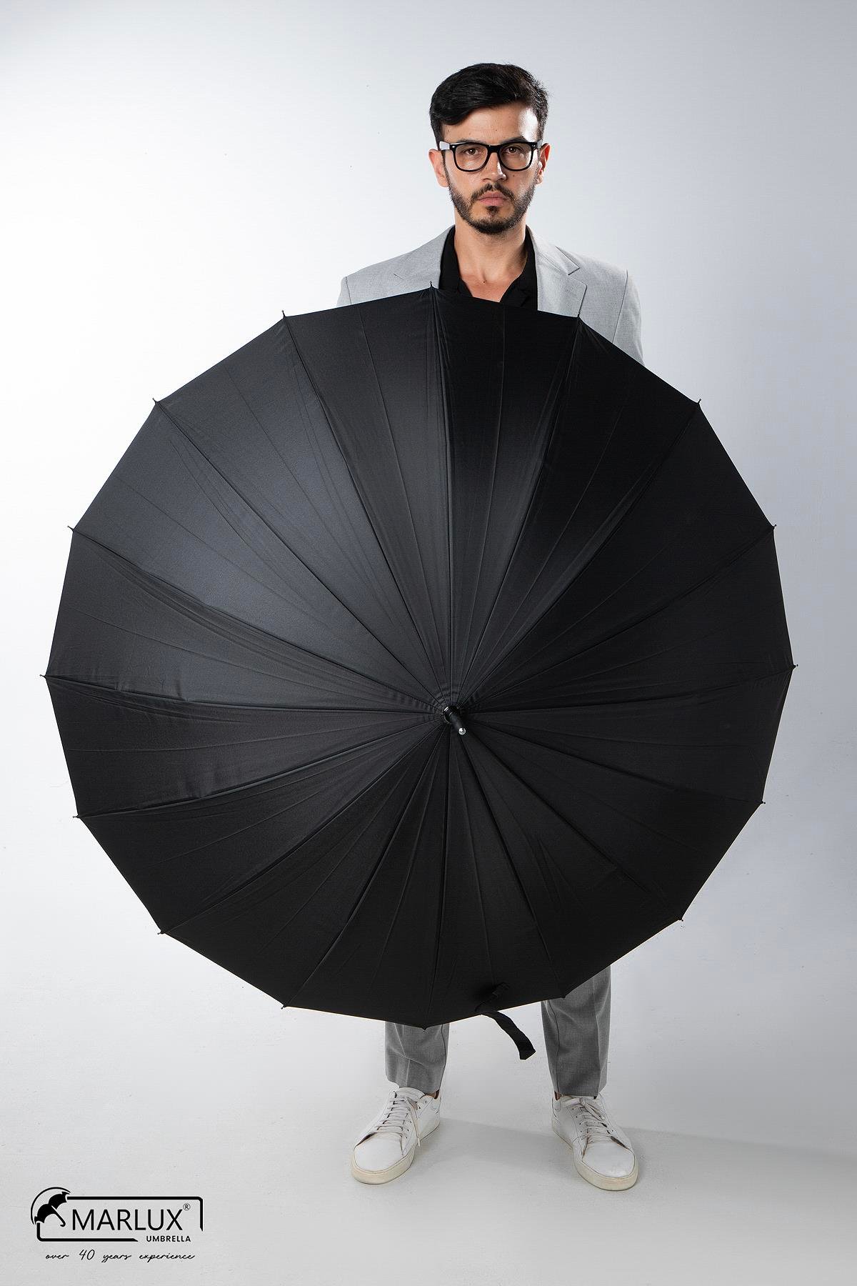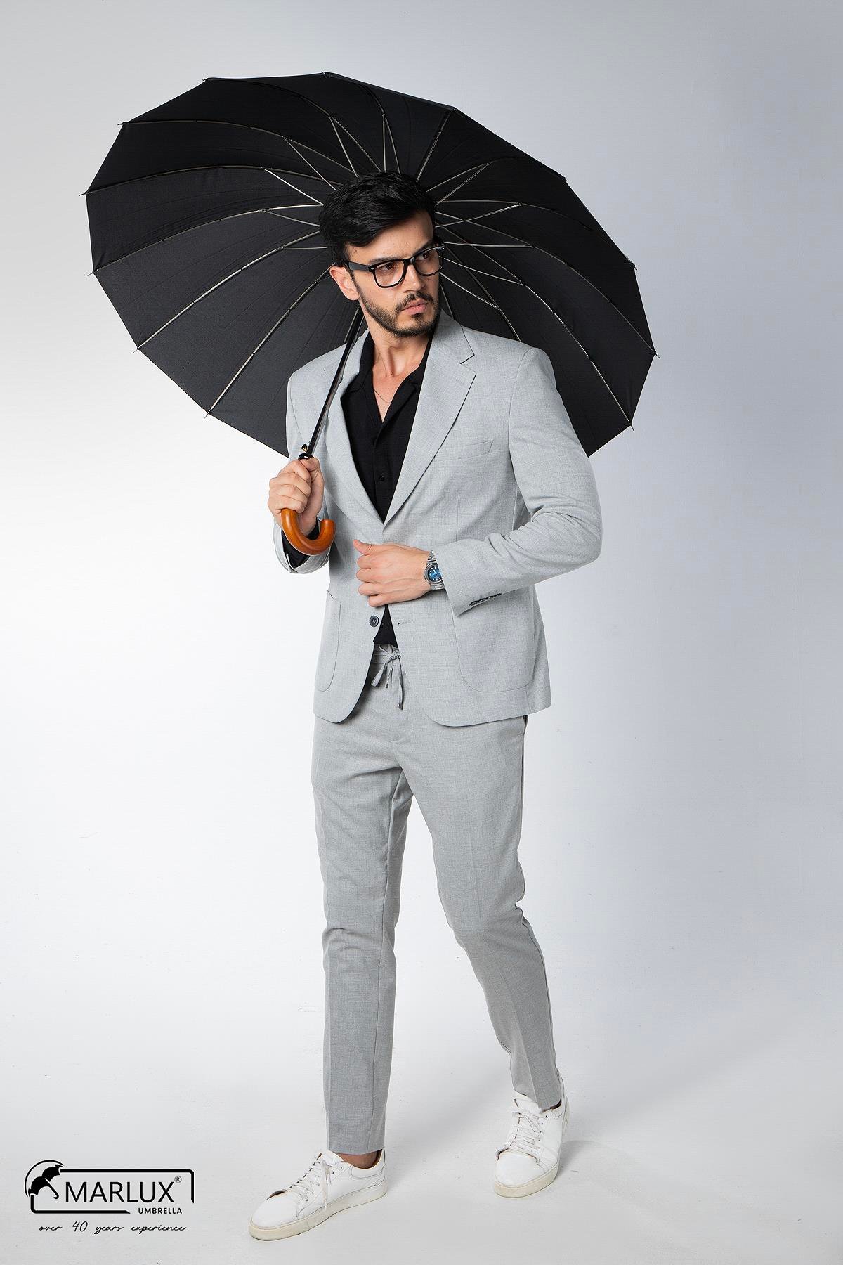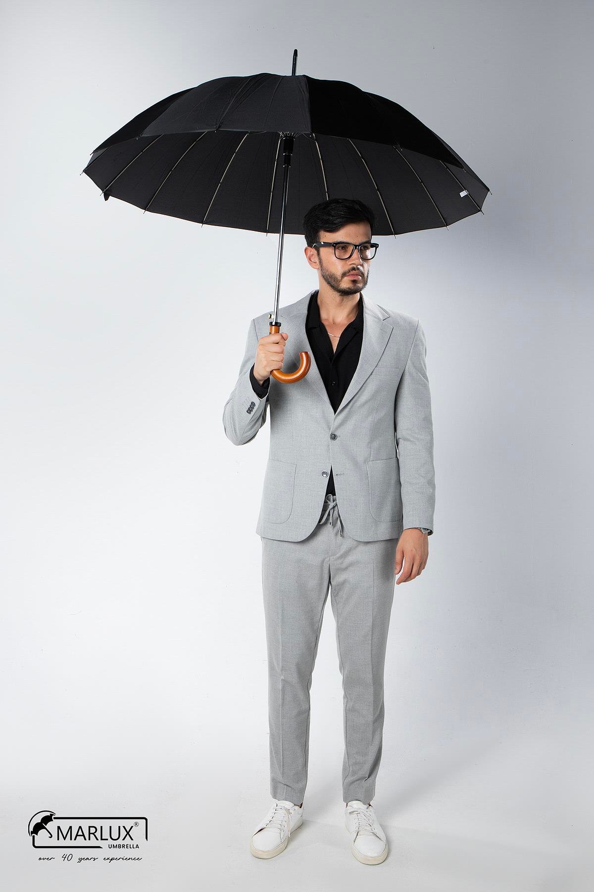 Marlux Siyah Ahşap Saplı 16 Çelik Telli Ultra Premium Lüks Erkek Baston Şemsiye M21MARMPR1025R001