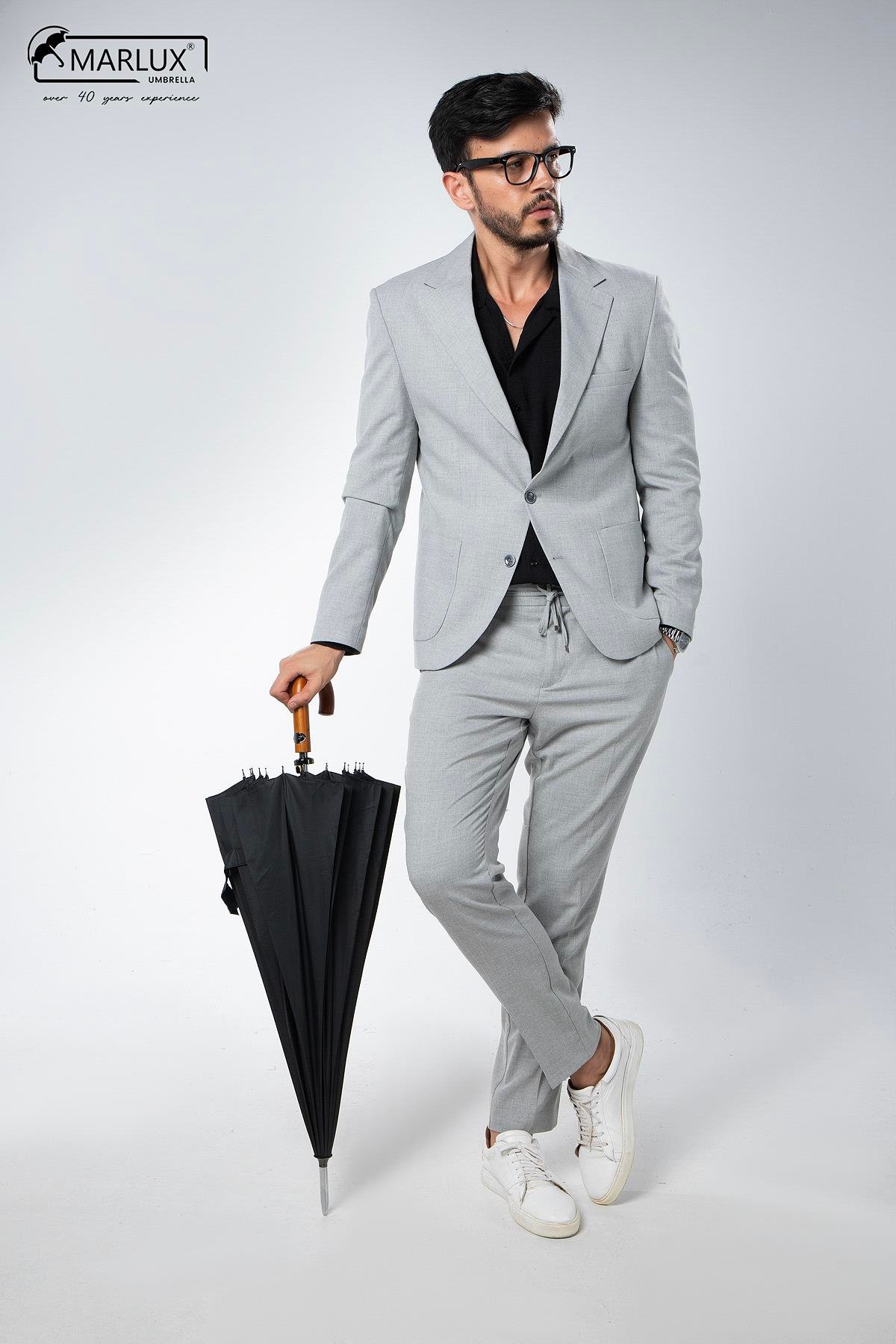 AnasayfaAksesuarŞemsiyeSiyah ahşap saplı 16 çelik telli ultra premium lüks erkek baston şemsiye m21marmpr1025r001