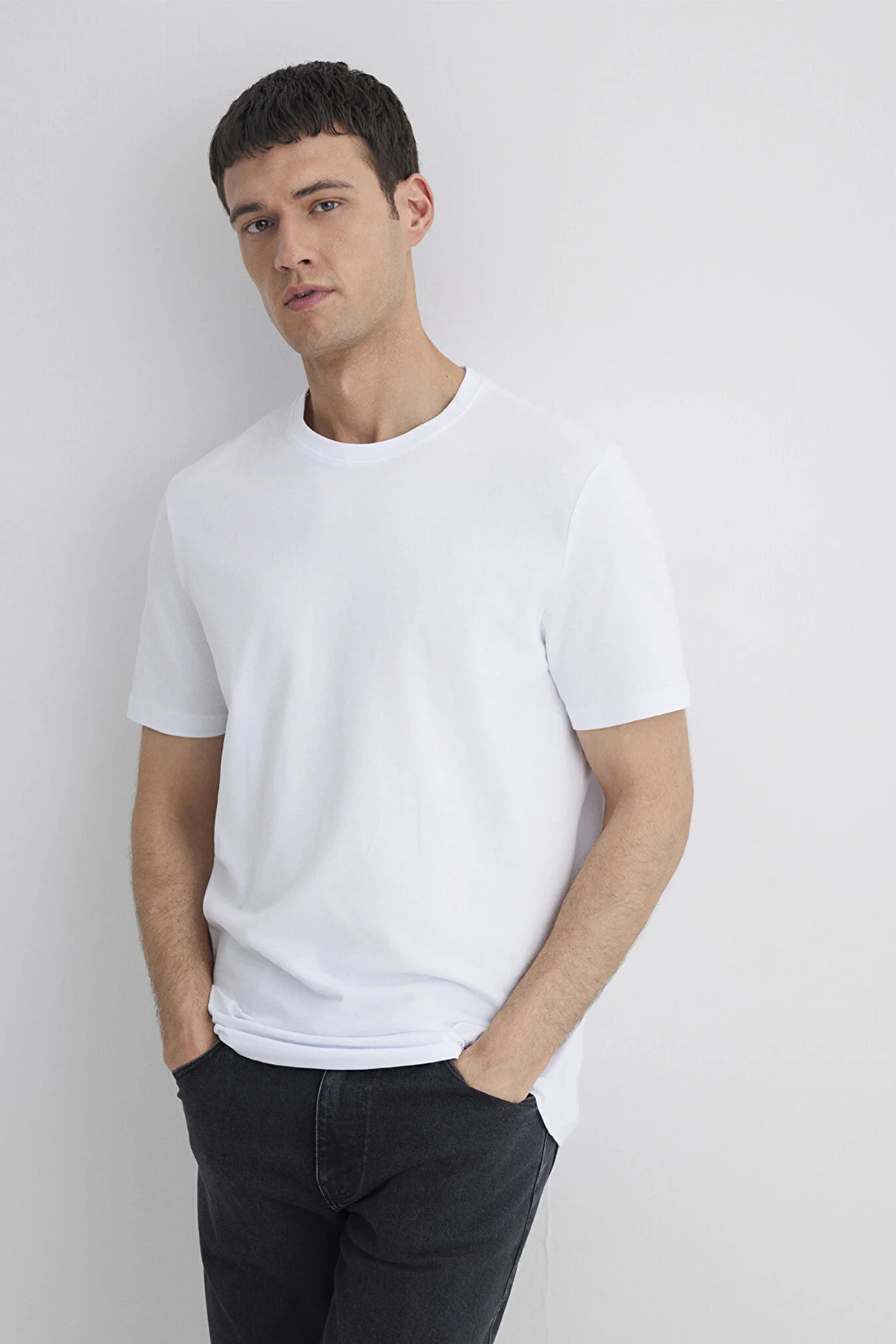 Ürün Tipi: T-Shirt;Kalıp Bilgisi: Regular fit;Materyal Bilgisi: 96% Pamuk, 4% Elastan;Menşei : Türkiye (TR);Detay: Bisiklet yaka, kısa kollu, pamuklu basıc T-Shirt;Model Ölçüleri(cm) / Üzerindeki Ürün: Boy - 187, Göğüs - 99, Bel – 80, Kalça - 94;Mankeninin denediği beden: L beden;