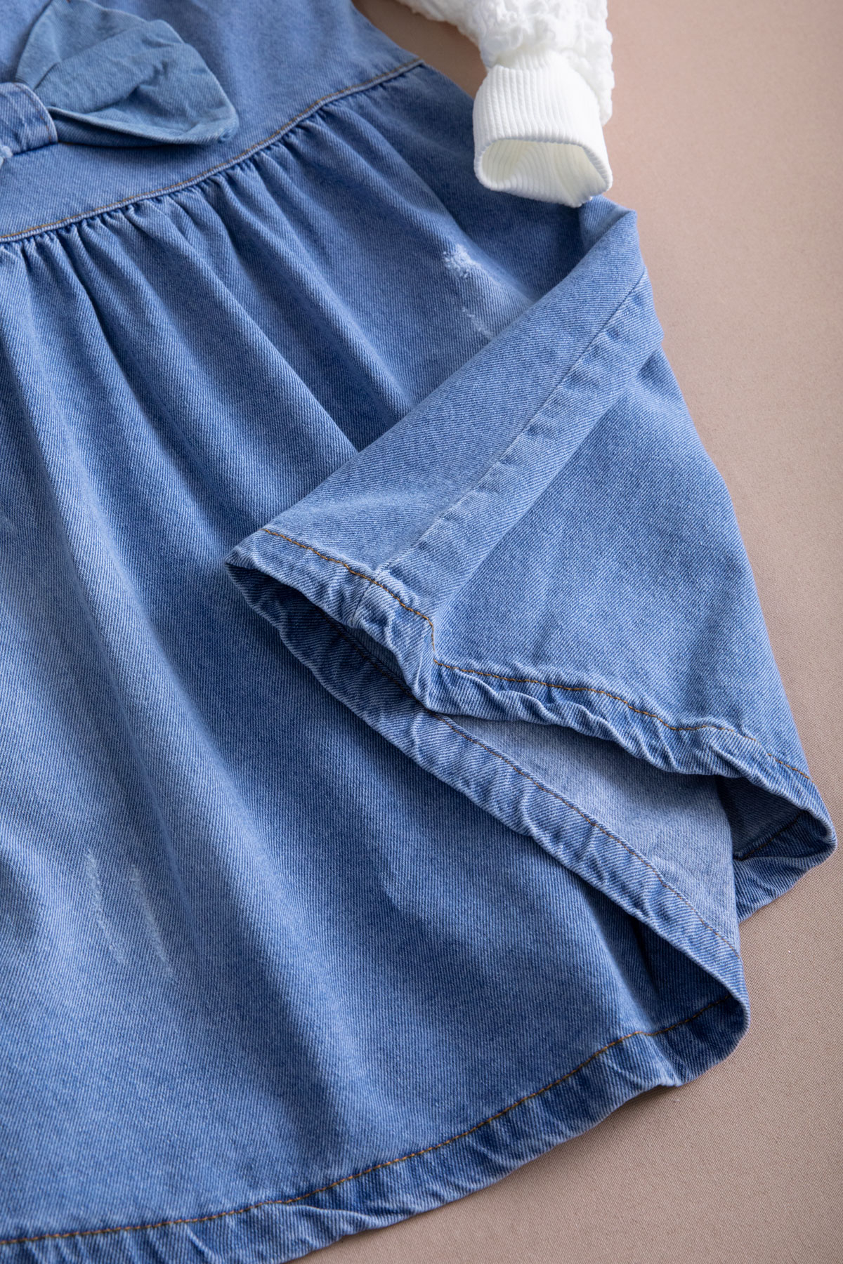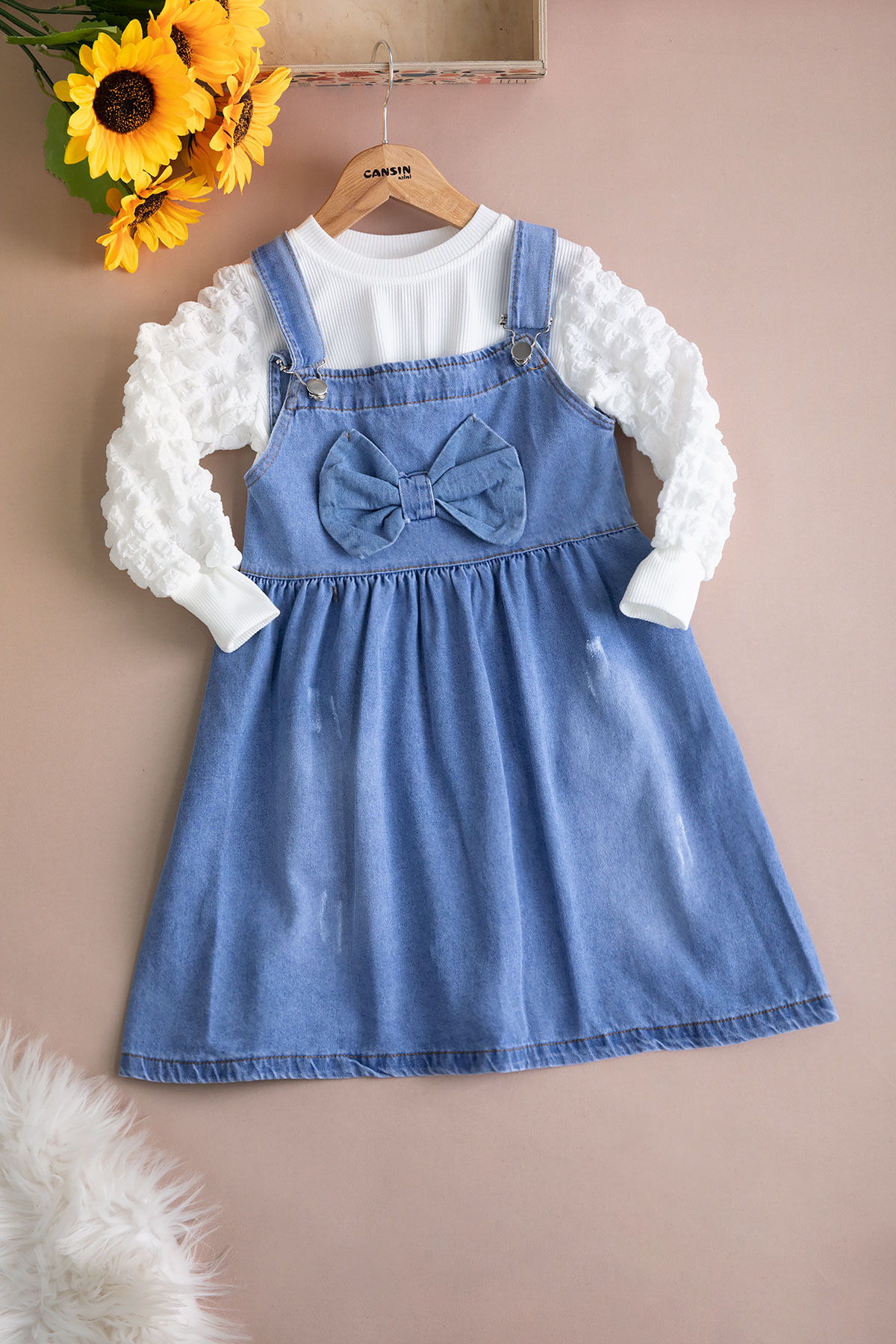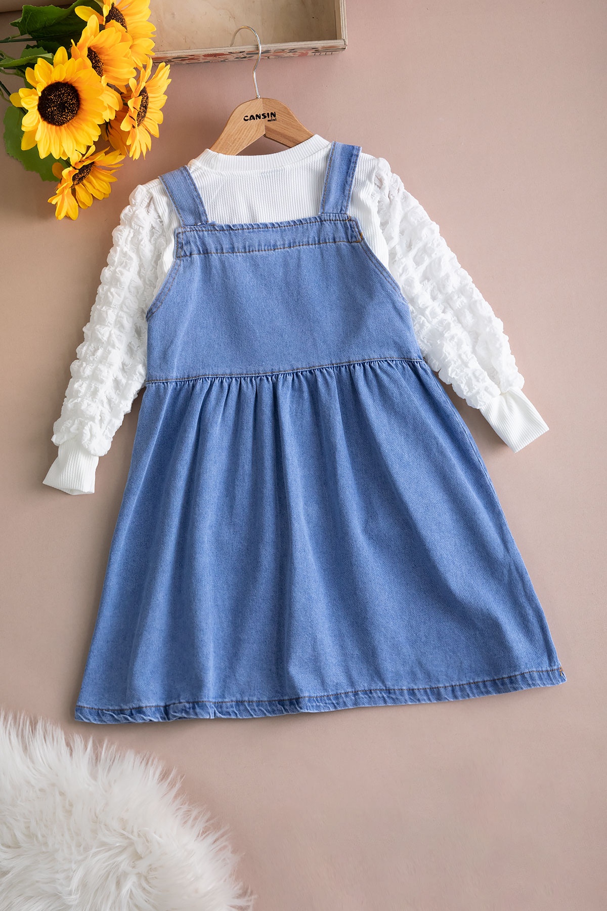 Kumaş İçeriği: %70 Pamuk %29 Polyester %1 Likra İçeriklidir. Dantel Yakalı Uzun Kol Fitilli Badi ve Jean Salopetten Oluşan Kız Çocuk Takımı. Türkiye'de Üretilmiştir.