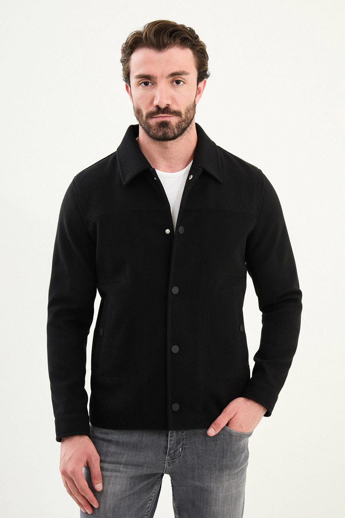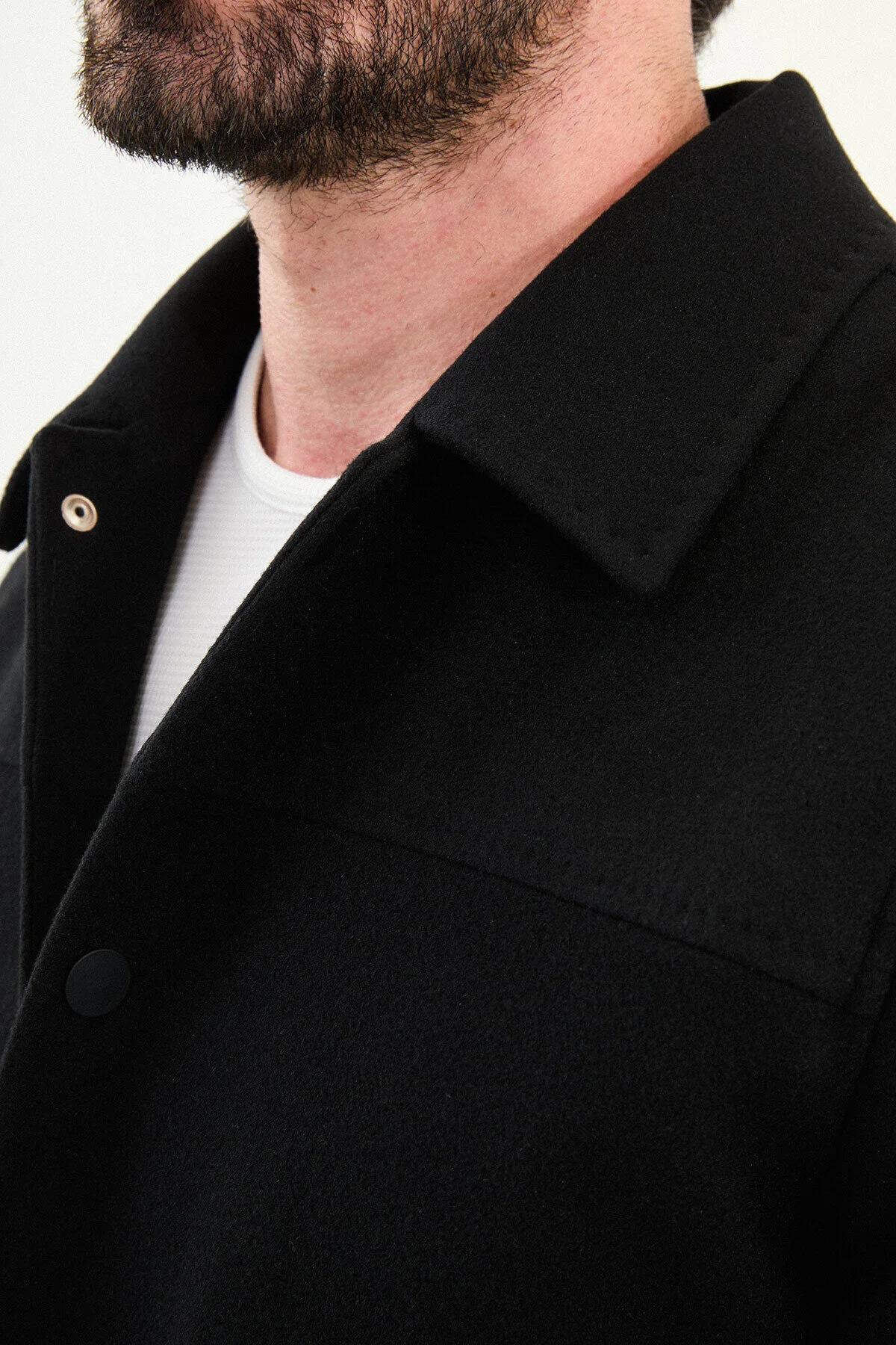 Mcr Düz Slim Fit Gömlek Yaka Çıtçıtlı Kaşe Erkek Mont 39650