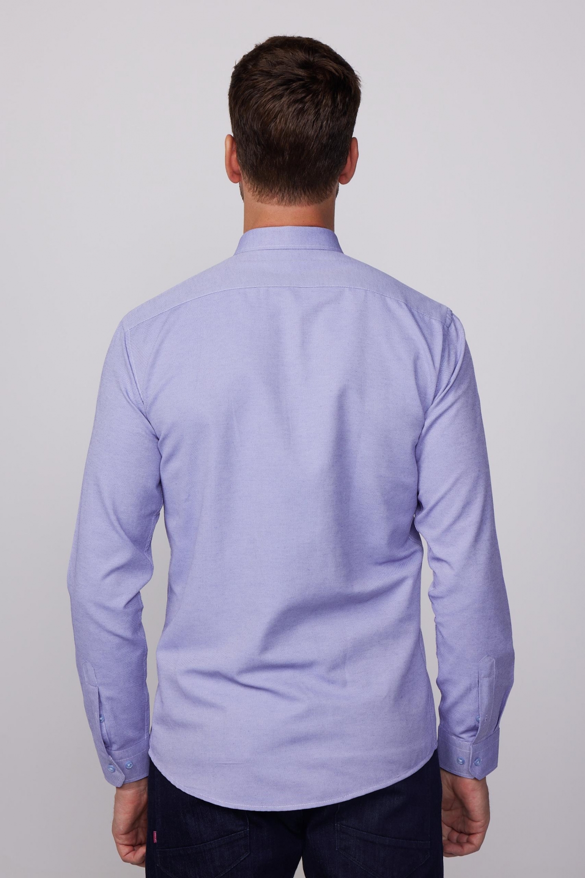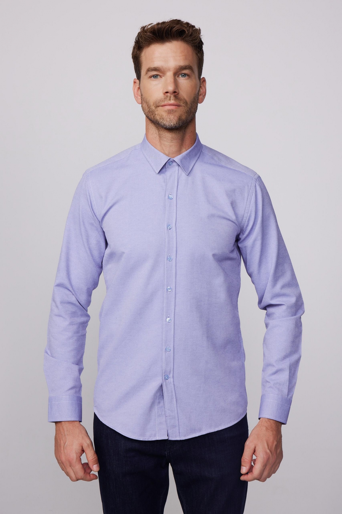 Modern Slim Fit Pamuklu Kolay Ütü Armürlü Mavi Erkek Gömlek