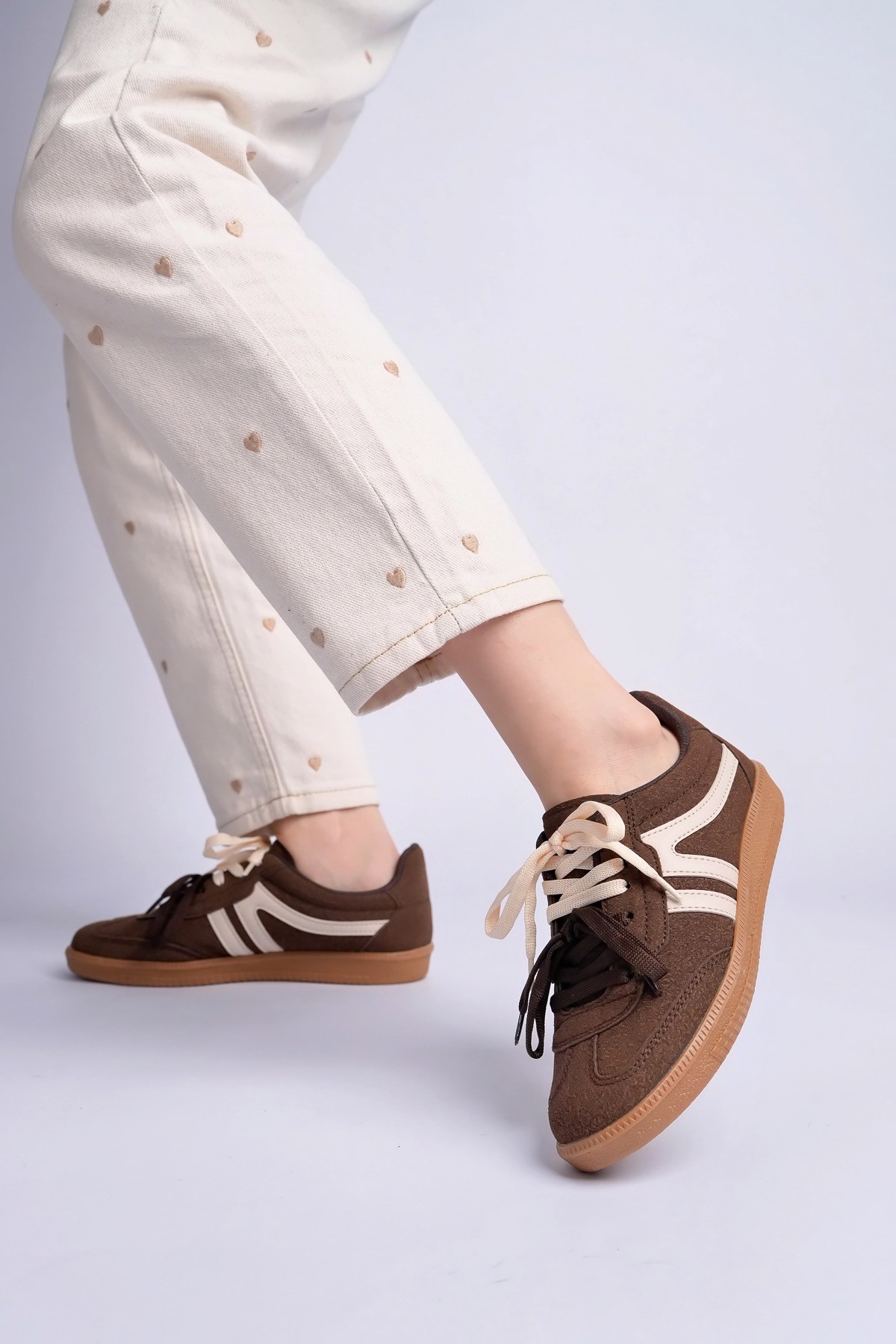 Çift bağcıklı tasarımı, stiline küçük ama etkili dokunuşlar ekleme imkânı sunarken; yumuşak dokulu üst yüzeyi gün boyu rahat bir kullanım sağlar. Hafif ve esnek taban yapısı sayesinde uzun süreli kullanımlarda dahi konfor hissini korur. Günlük kombinlerden hafta sonu stillerine kadar geniş bir kullanım alanına sahiptir.