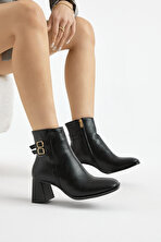 Küt burun kesimi, rugan parlak malzemesi ile bütünleşerek sade ve zarif bir görünüm elde etmenizi sağlıyor. Son yılların trendi olan kalın topuk bu modelde farklı tasarımı ile sizlerin karşısına çıkıyor. Günlük kıyafetlerinizle ya da özel günlerinizde sizlere eşlik ederek şıklığınıza ortak olacak bu model şimdi sizler için satışta.