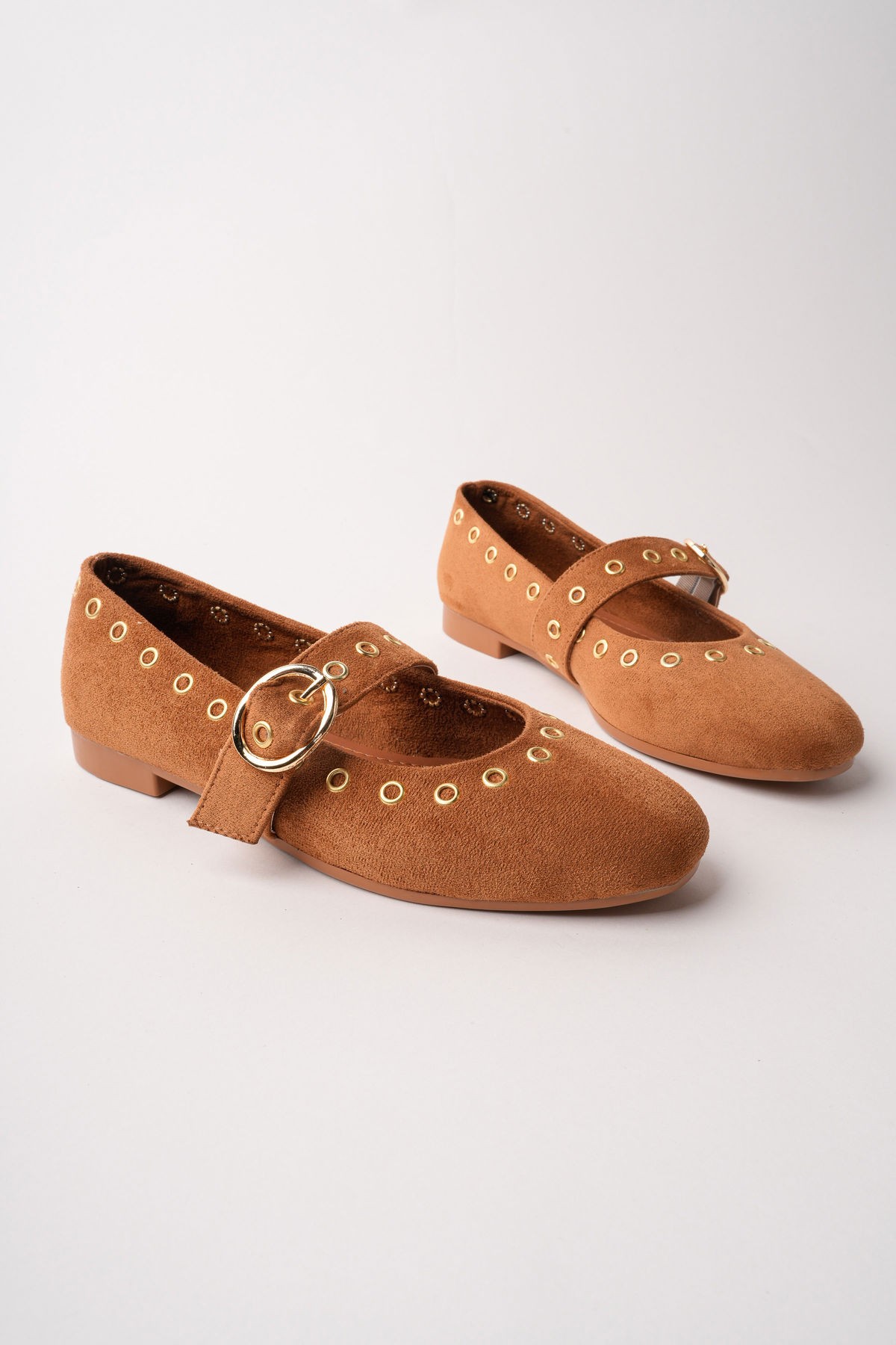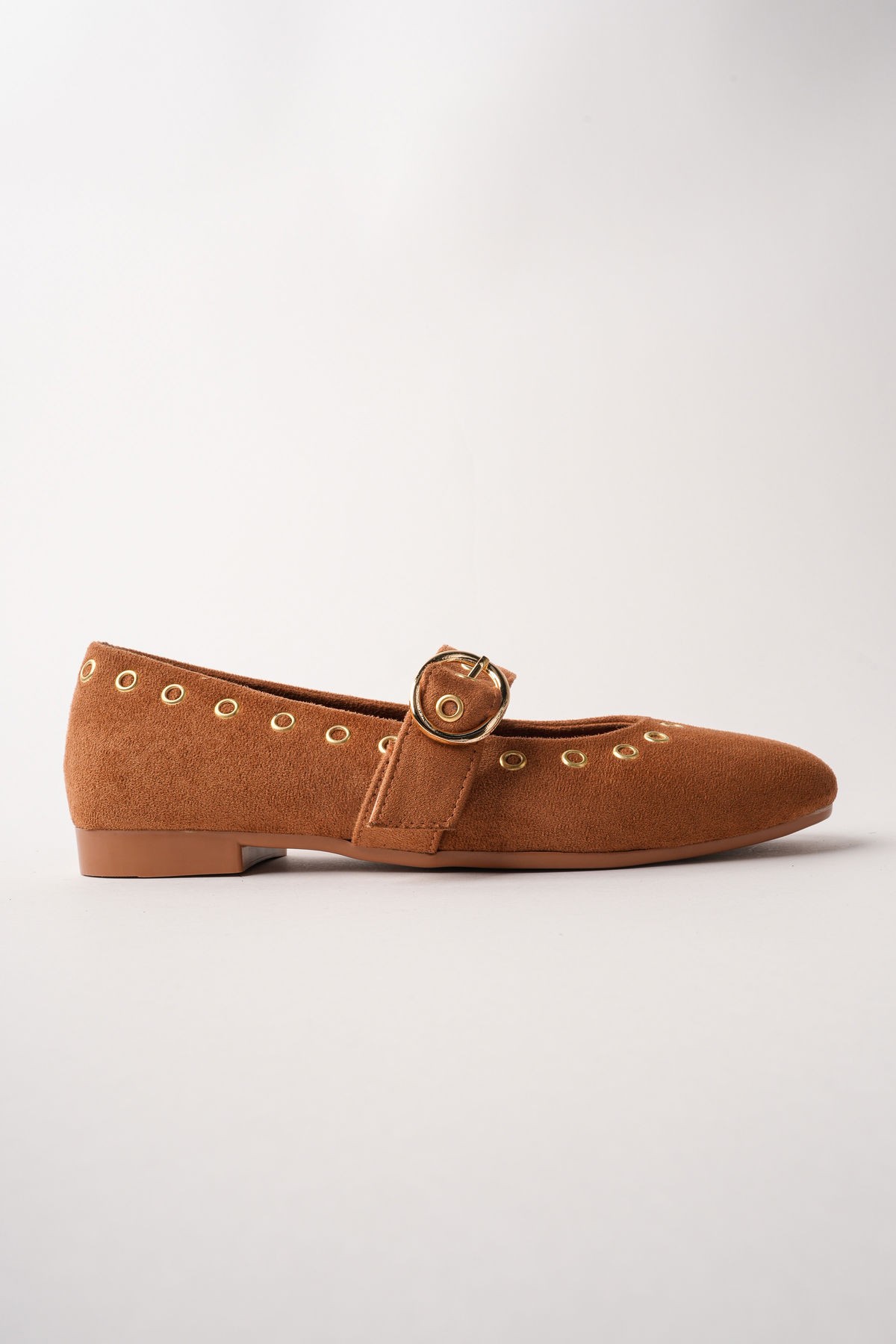 Muggo ZENA Gold Tokalı Zımbalı Deri Kadın Babet Ayakkabı