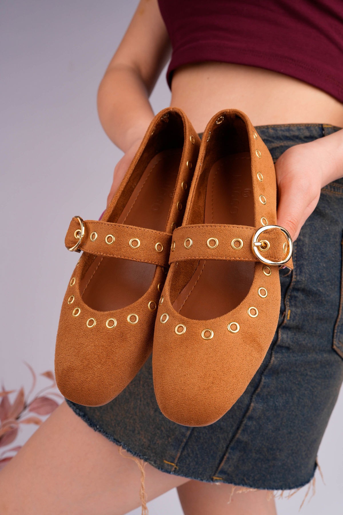 Şıklığı modern detaylarla buluşturan bu model, günlük kombinlerden özel davet stiline kadar her ortama uyum sağlar. Süet dokulu yüzeyi ve gold metal halka & zımba detayları ile güçlü bir stil sunar. Ayarlanabilir kemer detayı sayesinde ayağa tam oturur, gün boyu konforlu kullanım sağlar.