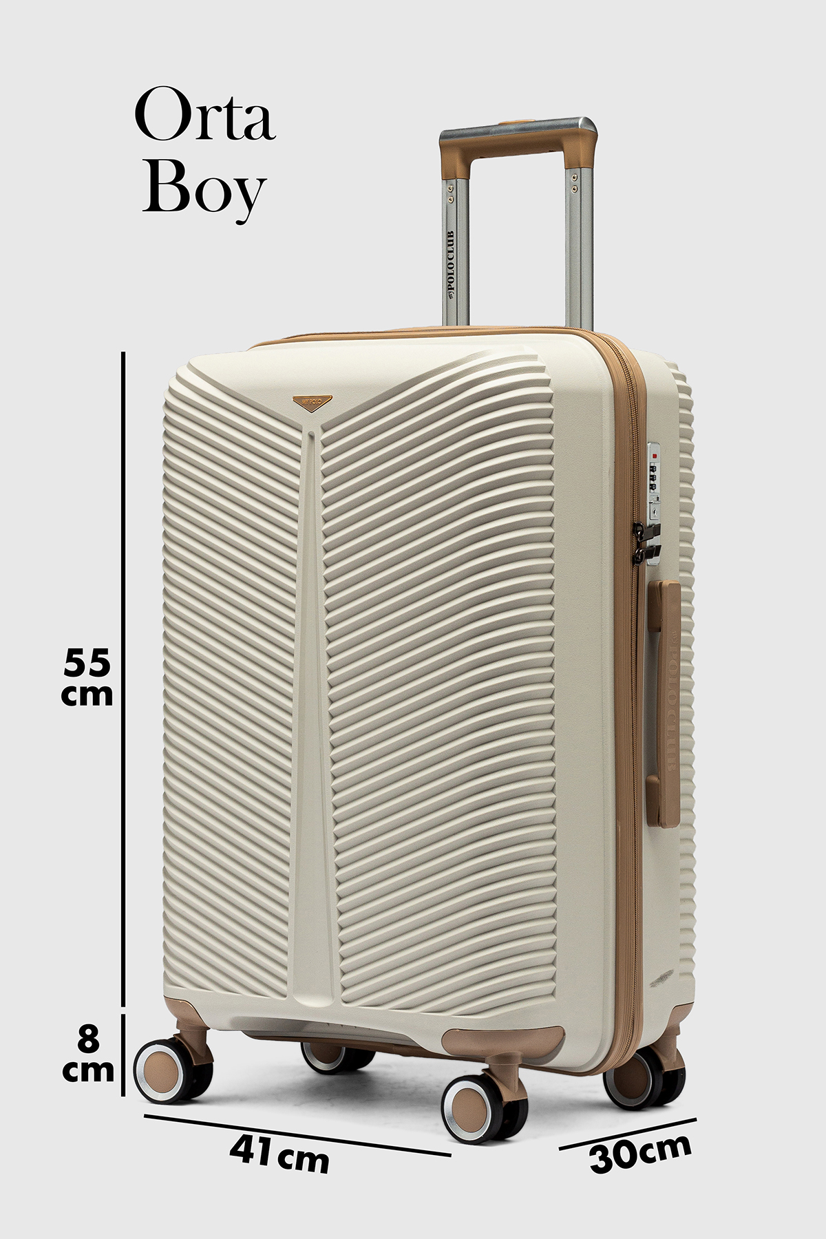 ÖLÇÜ ve AĞIRLIKBüyük Boy: 67x48x35cm 4000grOrta Boy: 55x41306cm 3180grKabin Boy: 47x34x22cm 2550gr valizlerde kalite, konfor ve cezbeden renkler bir arada,Güçlü ve daha dayanıklı seyahatlerinizde sizi yarı yolda bırakmaz ve darbelere karşı maksimum koruma sağlar.Gövde üzerine monte edilen tüm aksesuarlar, perçin yerine çelik vida ile tutturulmuştur. Böylelikle hem sağlamlık ve uzun ömür sağlanır, hem de olası parça değişimleri kolay bir şekilde sorunsuz gerçekleştirilebilir.Kauçuk-Silikon karışımı, birbirinden bağımsız 360° dönebilen 4 adet tekerlek, konforlu ve sessiz seyahat imkanı sunar. 4 köşedeki tekerlek sistemi ve alüminyum çekme kolu ile yükü valiziniz taşır. Size sadece valizinizi yönlendirmek kalır.Silikon kaplı (soft touch) elinizi acıtmayan, yumuşak tutma sapı ile valizinizi daha rahat taşırsınız.Kolayca değiştirebileceğiniz şifreli kilit sistemi ile eşyalarınız güvende kalır.Herşey Yerli Yerinde,İç lastikli kilitli kemer ile eşyalarınız valiz içinde dağılmaz.Çift taraflı eşya koyulabilen kullanışlı fermuarlı iç bölümler ile eşyalarınızı ayırabilirsiniz.Muadillerine göre daha hafif gövde yapısı ile bagaj kotası dostudur.Ürünümüz tamamen Türkiye'de üretilmiştir. Bu sebeple satış sonrası yedek parça tedarik ve temininde asla sıkıntı yaşamazsınız.Değiştirilebilir bütün parçalar