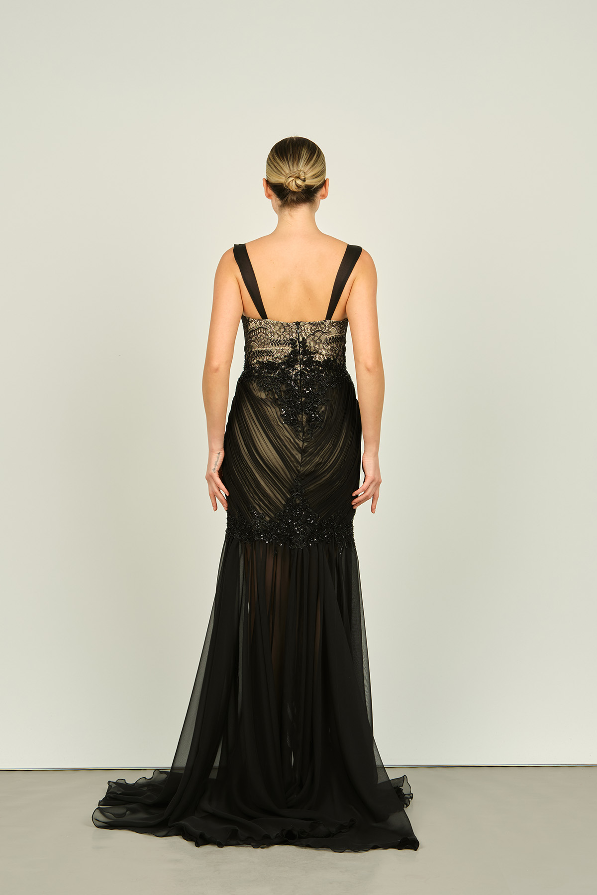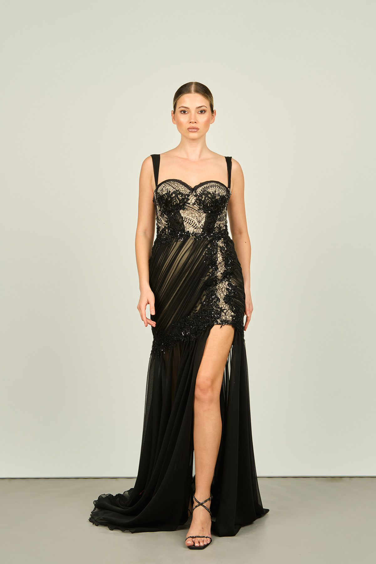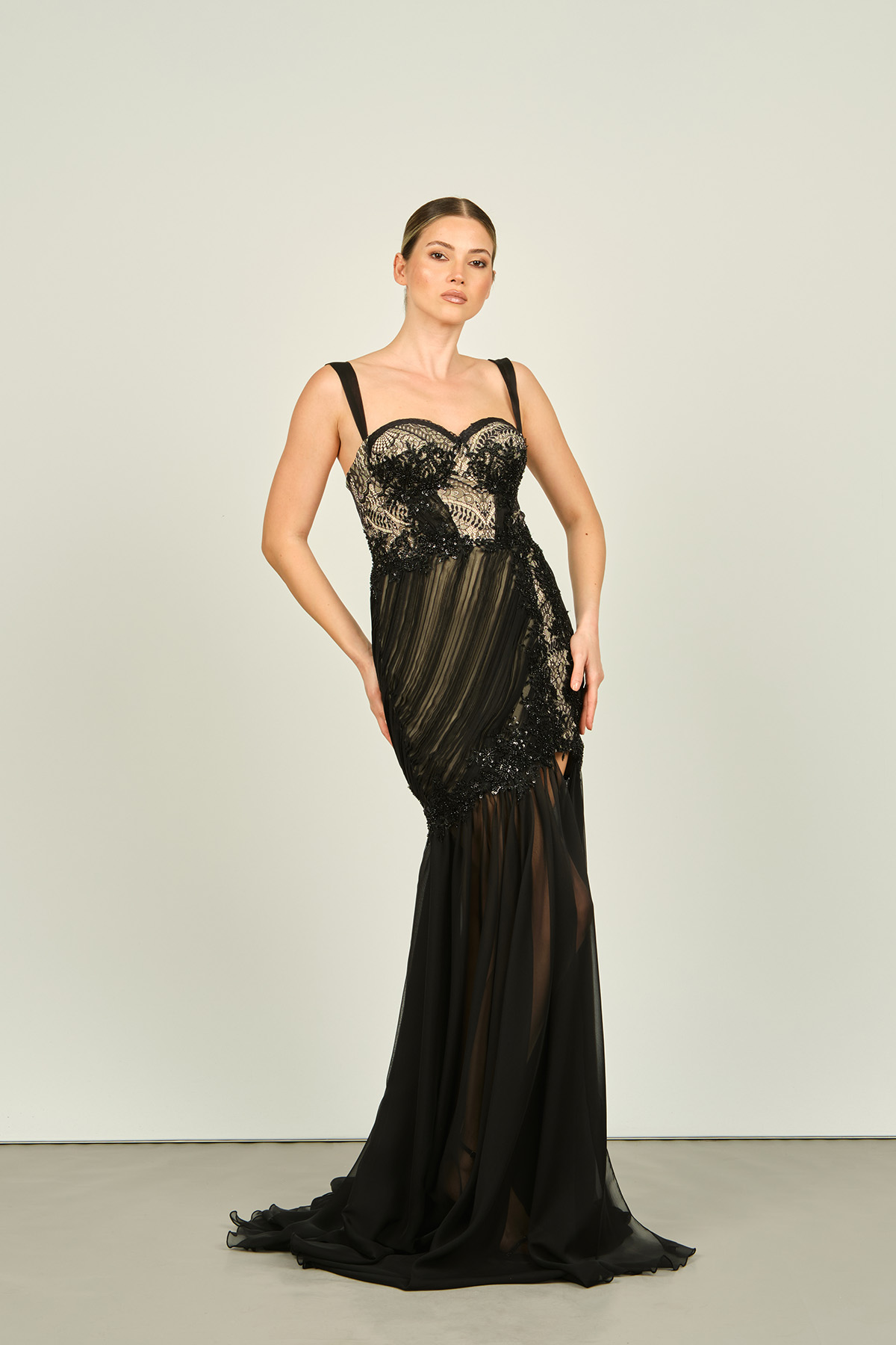 Ürün Tipi: Abiye Elbise;Materyal Bilgisi: Dantel;Kalıp Bilgisi: Normal;Detay: Belden uzun şifon detaylı, full ten rengi astarlı, uzun, dantel abiye elbise;Model Ölçüleri(cm) / Üzerindeki Ürün: Boy - 173, Göğüs - 86, Bel - 67, Kalça –92 / 36 beden;