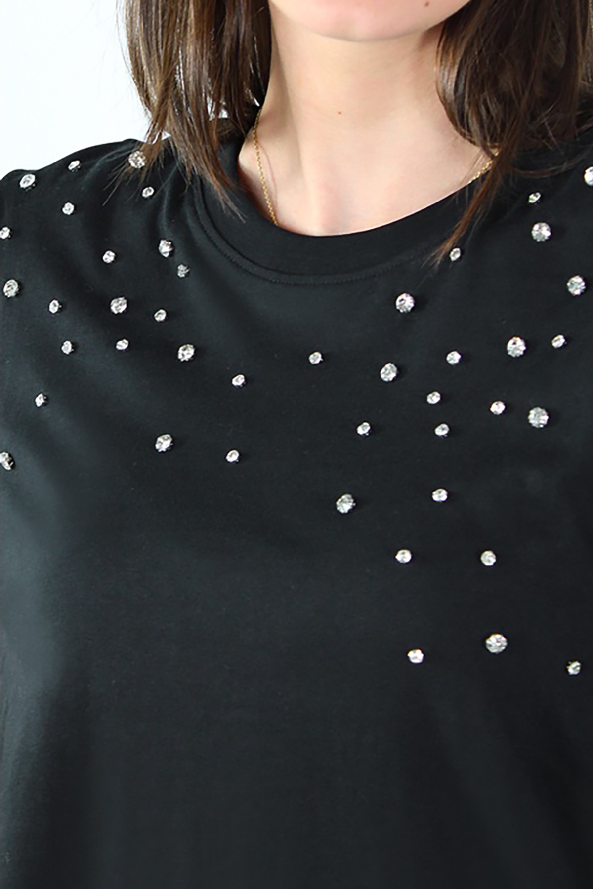 Ürün Tipi: T-Shirt;Materyal Bilgisi: %100 Pamuk;Detay: Taş detaylı, bisiklet yaka, kısa kol T-Shirt;