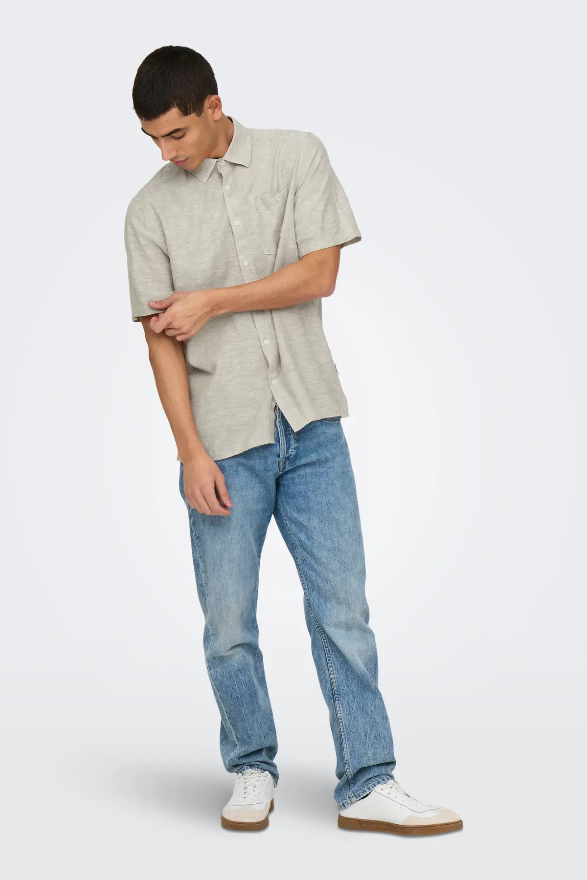 Ürün Tipi: Gömlek;Kalıp Bilgisi: Regular Fit;Materyal Bilgisi: 45% Keten, 55% Pamuk;Menşei : Bangladeş (BD)Detay: Bu model gömlek, keten içeriği sayesinde hafif ve nefes alabilen yapısıyla sıcak havalarda maksimum konfor sunarken, zamansız tasarımıyla her ortamda şıklığınızı korumanıza yardımcı olur. Gömlek yakası ve düğmeli kapanışı klasik bir dokunuş eklerken, kısa kollu tasarımı hareket özgürlüğü sağlar. Göğüs kısmındaki tek cep, hem işlevsellik hem de estetik açıdan tamamlayıcı bir detay sunar. Günlük giyimden iş kombinlerine, özel günlerden rahat hafta sonu stiline kadar her anınıza uyum sağlayacak bu model gömlek, gardırobunuzun vazgeçilmez parçalarından biri olmaya aday;