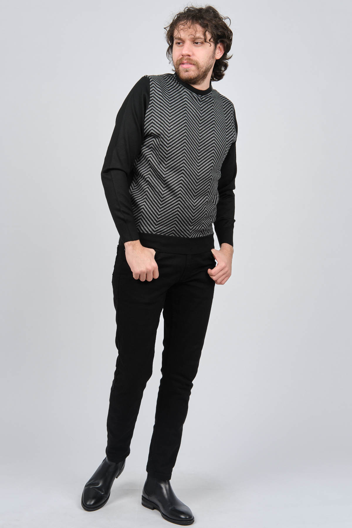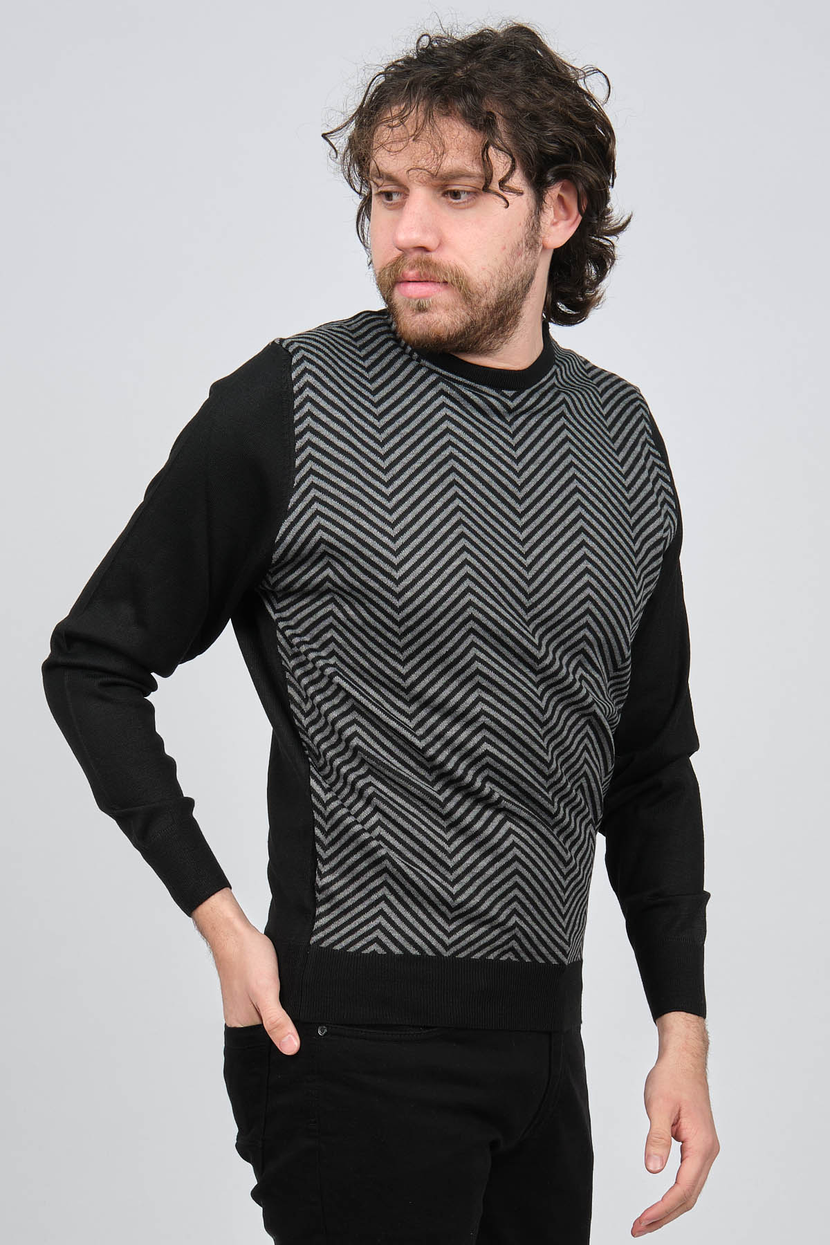 Ürün Tipi: Kazak;Materyal Bilgisi: %30 Yün, %70 Akrilik;Kalıp Bilgisi: Standart;Detay: Bisiklet yaka, Desenli, Uzun kollu, Yün kazak;Model Ölçüleri(cm) / Üzerindeki Ürün: Boy - 188, Göğüs - 102, Bel - 90, Kalça - 103, / M Beden