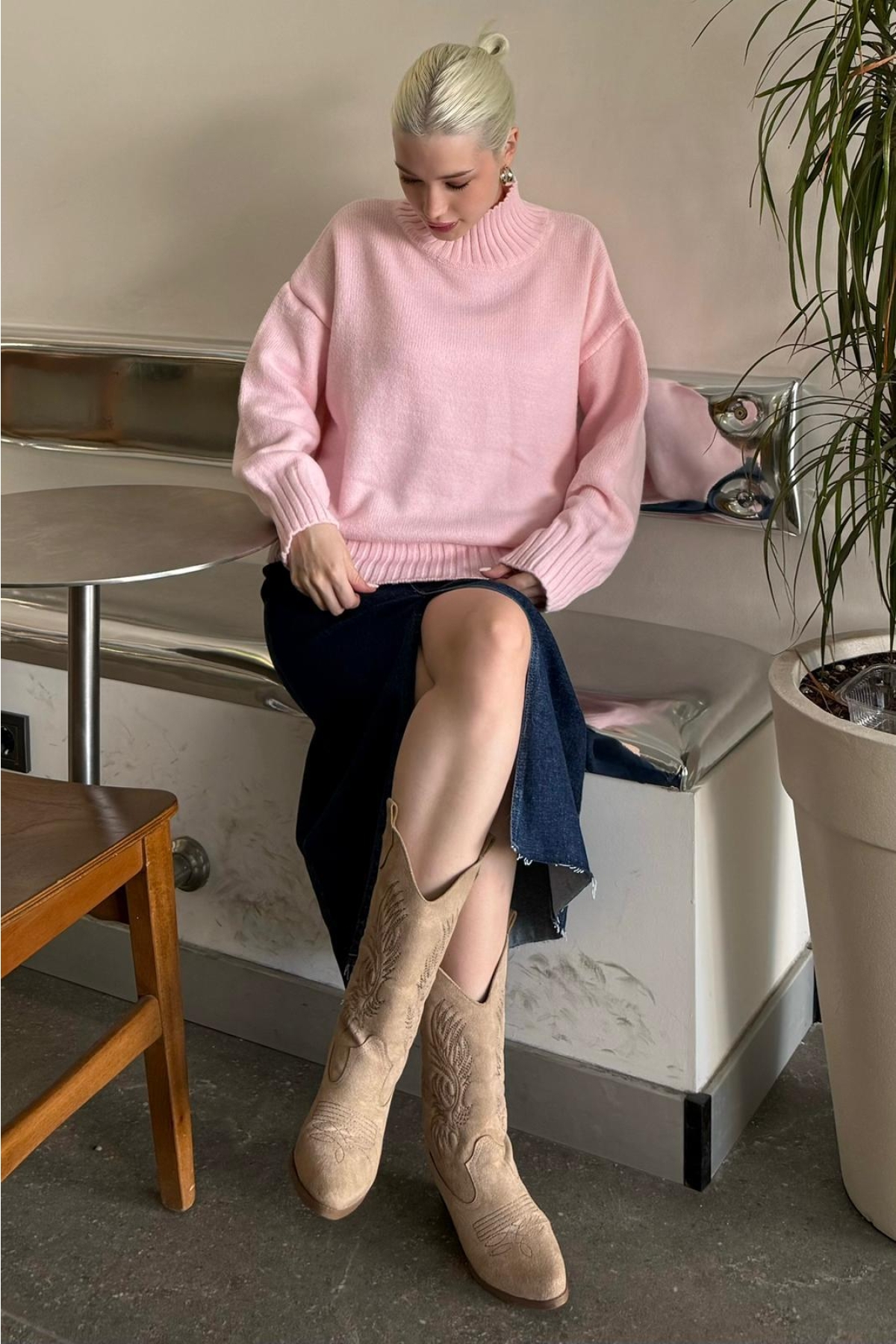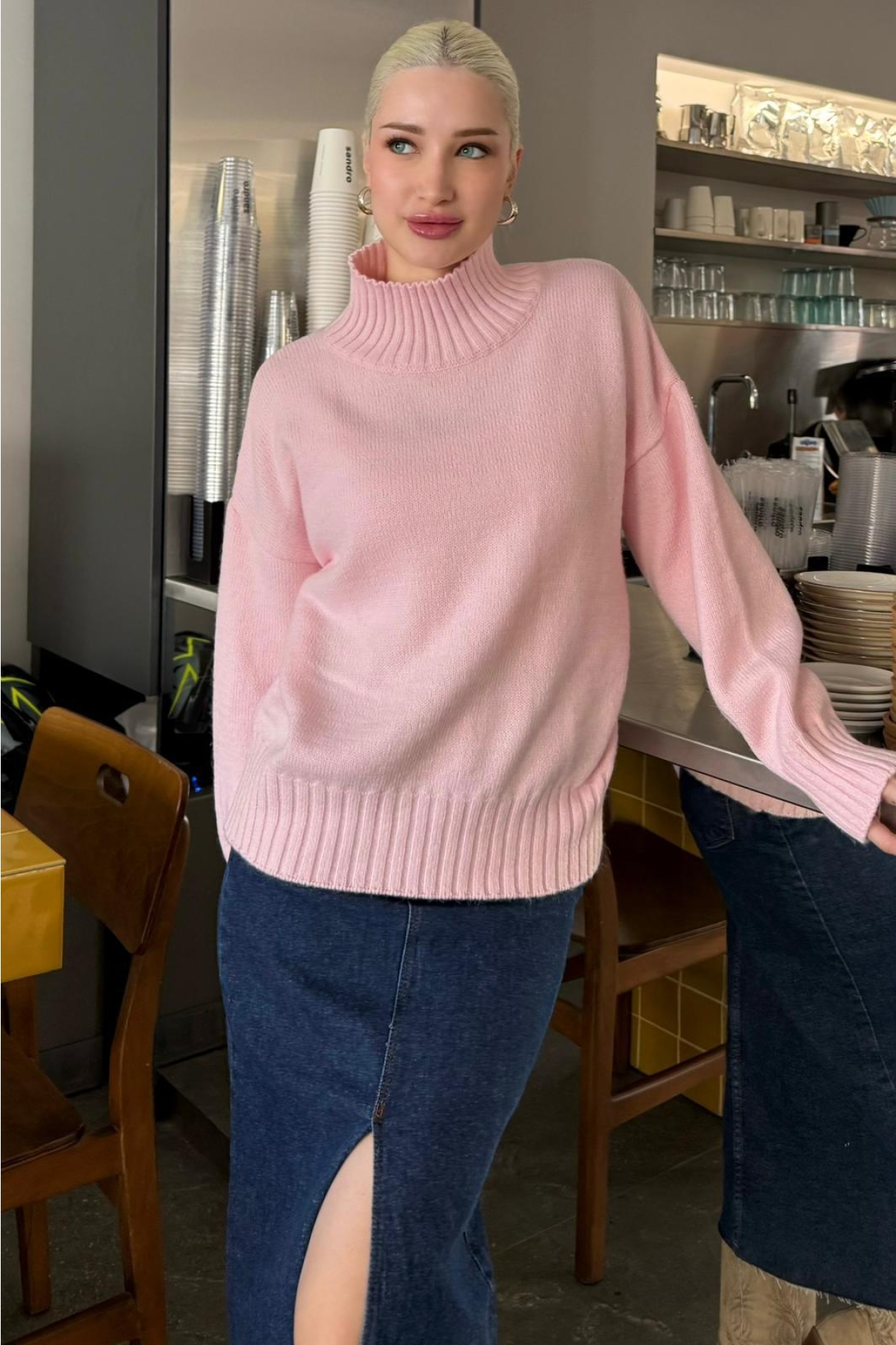 AnasayfaGiyimKazakPembe boğazlı kadın triko kazak mg2535
