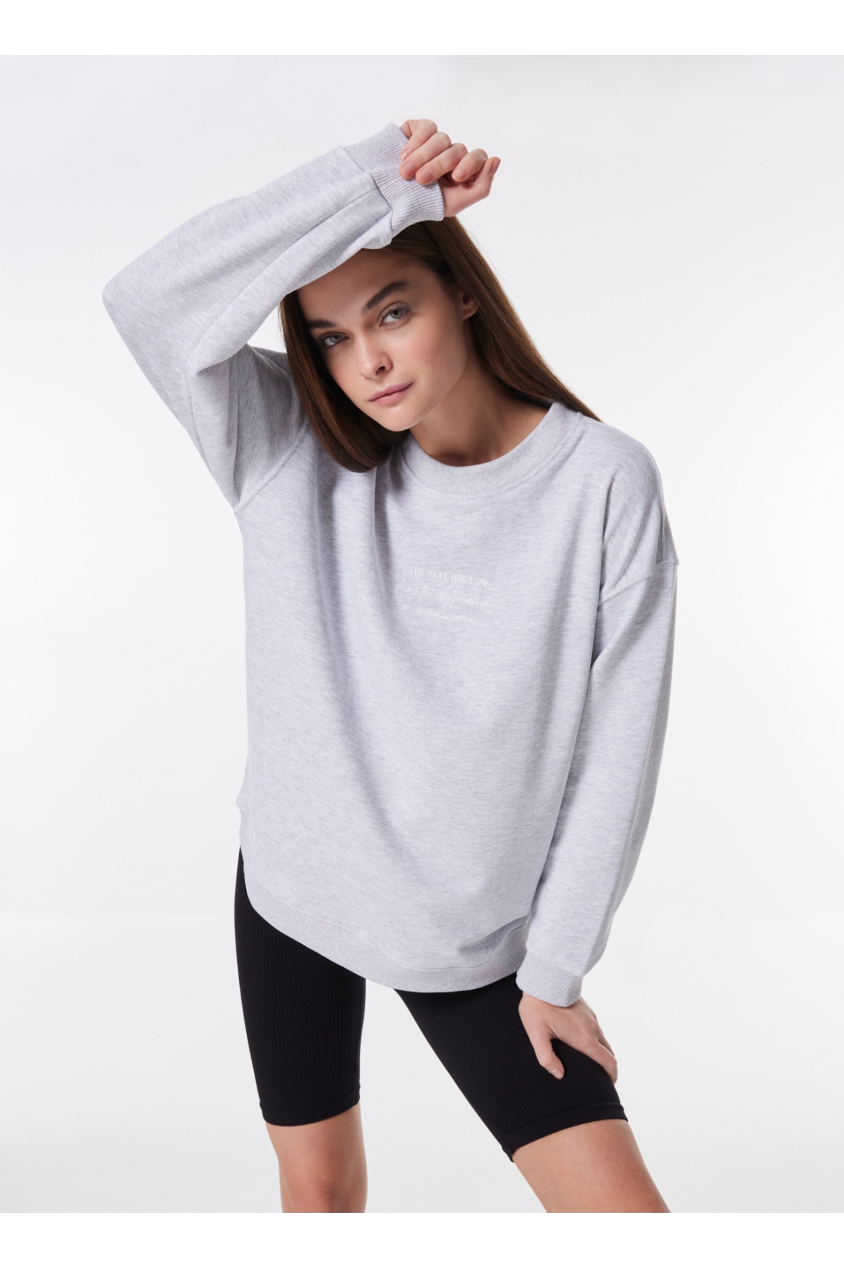 Gri melanj tonlarıyla dikkat çeken bu sweatshirt, günlük stilinize modern bir dokunuş katıyor. People By Fabrika'nın tasarımı olan bisiklet yaka ve uzun kollu kesimi, rahat bir görünüm sunarken aynı zamanda şıklığı da beraberinde getiriyor. Loose fit kalıbı sayesinde vücut hatlarını nazikçe sararak konforlu bir kullanım sağlıyor.Bu sweatshirt, hem spor hem de gündelik kombinler için mükemmel bir parça olarak öne çıkıyor. Jean pantolonlar veya yüksek bel eteklerle harika uyum sağlar üzerine giyeceğiniz hafif bomber ceketle tamamlayarak sokak modasına uygun şık görünümler elde edebilirsiniz. Ayrıca sneaker'lar ile oluşturacağınız dinamik kombinler, gün boyu hareket özgürlüğü sunar.Detaylarda sadeliği tercih edenlerin gözdesi olacak bu parça minimalist aksesuarlarla zenginleştirildiğinde ise zarif ve sofistike bir hava yaratır. İnce zincir kolyeler ya da büyük hoop küpeler ile kombininizi tamamlayabilirsiniz.Kendi tarzınızı yansıtmak için ideal olan bu sweatshirt'ü dolabınıza eklemeyi unutmayın! Şimdi alışverişe başlayın ve stilinizi yenileyin!