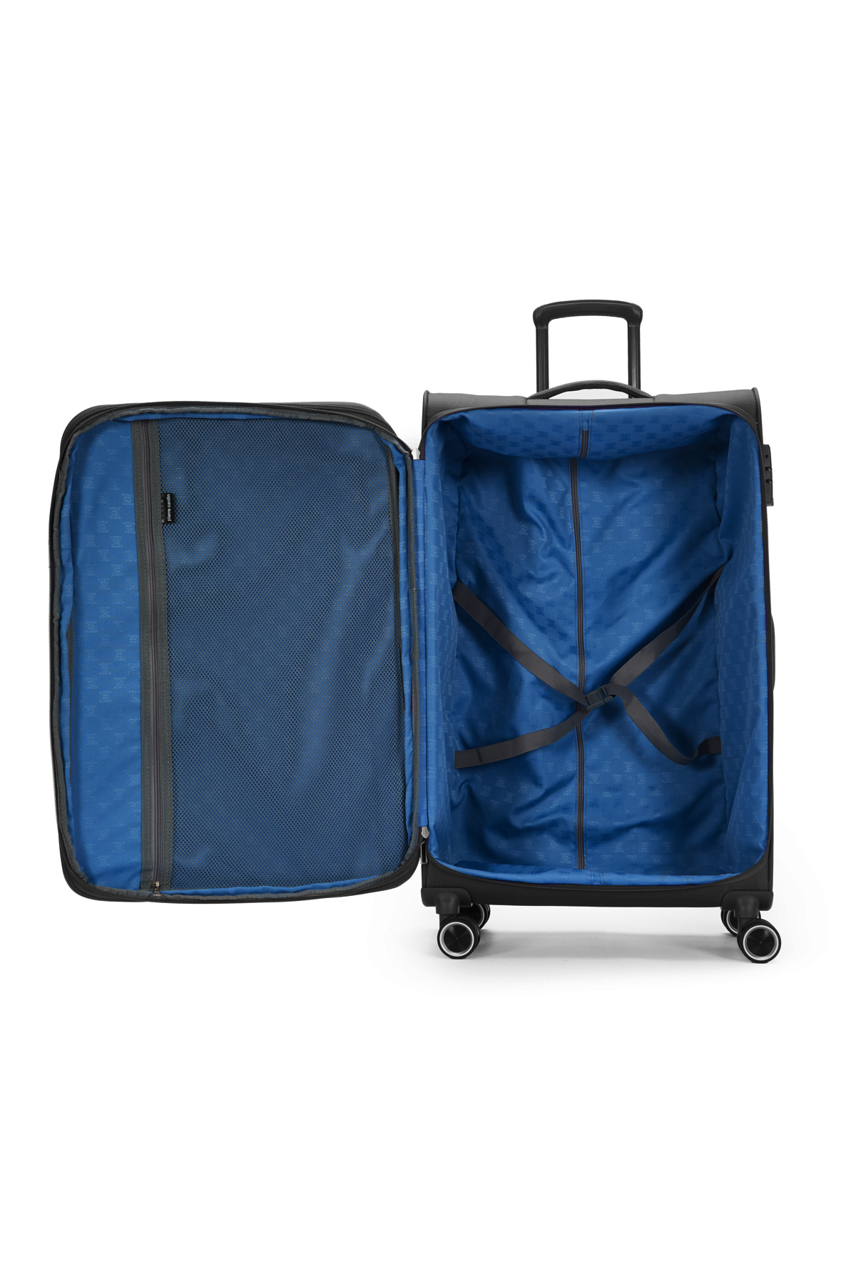 Marka: Pierre CardinÜrün Ölçü Ve Özellikleri: Büyük Boy: 77 cm x 49 cm x 30 cm / İç Hacim: 120 Litre 3,23 KgMalzeme Bilgisi: Esnek Yapılı, Darbe Emici Özellikli, Ultra Hafif, Su Geçirmez Kumaş Kasa Garanti Süresi: 2 Yıl Çekçek Mekanizması: 3 Kademeli Tekerlek: 360 Derece Dönebilen 4 Tekerlek Şifre Sistemi: TSA ŞİFRE Astar: Var İç Bölme Sayısı: Fileli ve Fermuarlı 1 adet Ağız Kapama Şekli: Şifre+Fermuar