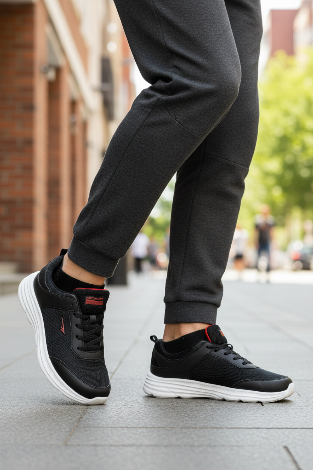 PROSHOT'un BONI Siyah Erkek Koşu Ayakkabısı ile her adımda performansı artır! Yüksek kaliteli tekstil ve PVC kombinasyonuyla üretilen bu spor ayakkabı, hafif yapısı ve esnek tabanı ile koşularda mükemmel destek sağlar. Siyah ve kırmızı detayları ile şıklığı yakalarken, spor stilinizi tamamlayacak. Bu model, hem konfor hem de stil arayan erkekler için ideal bir seçim. Hızlı ve etkili koşular için tasarlandı; şimdi bu şıklığı ve rahatlığı yaşamak için hemen sahip olun!