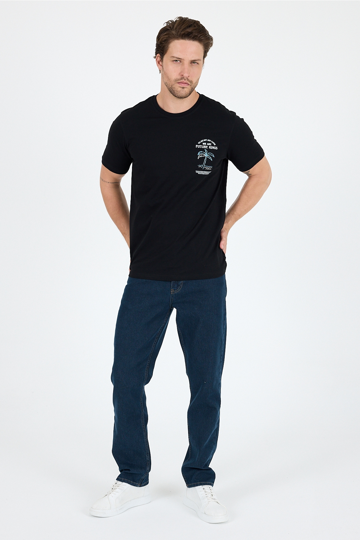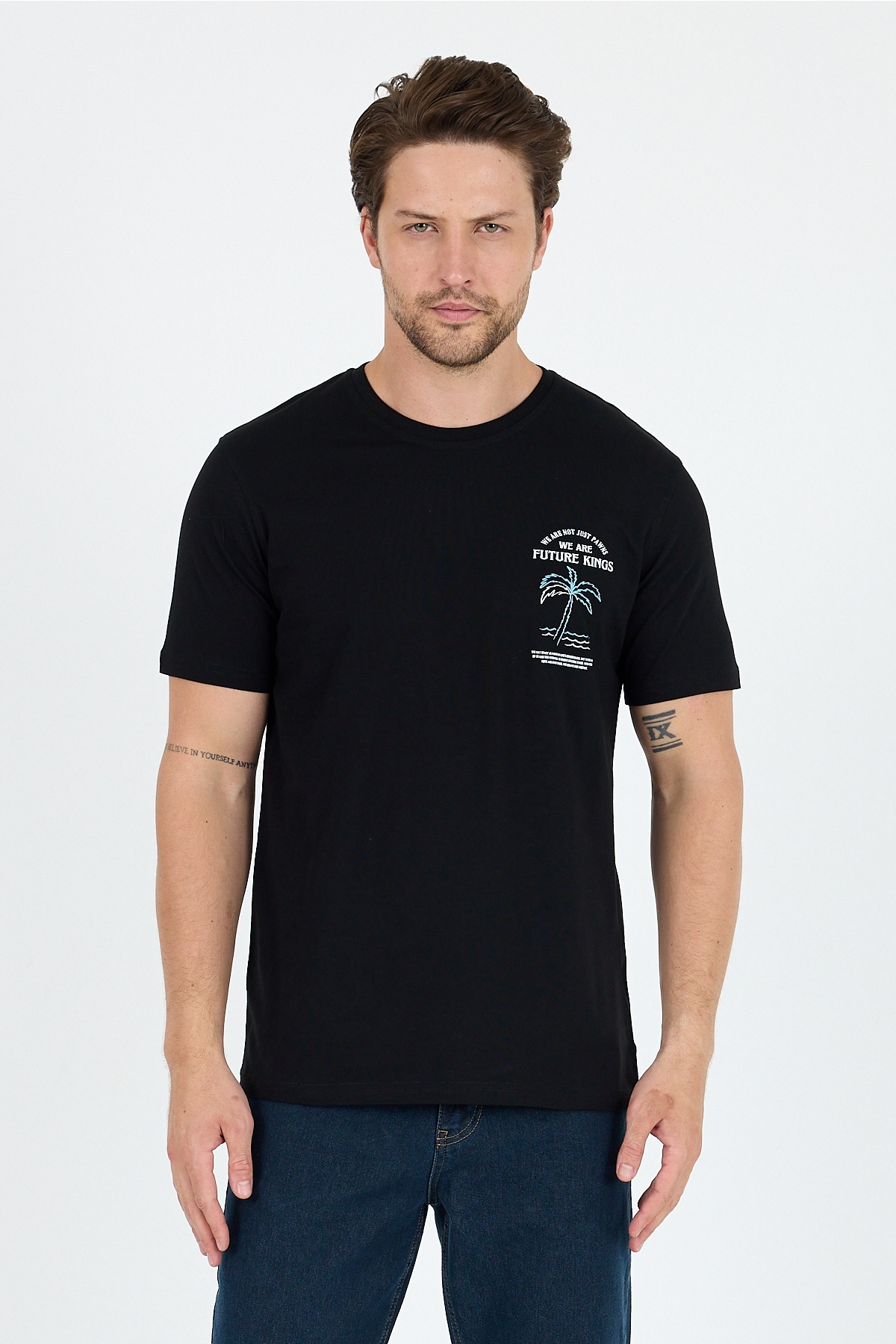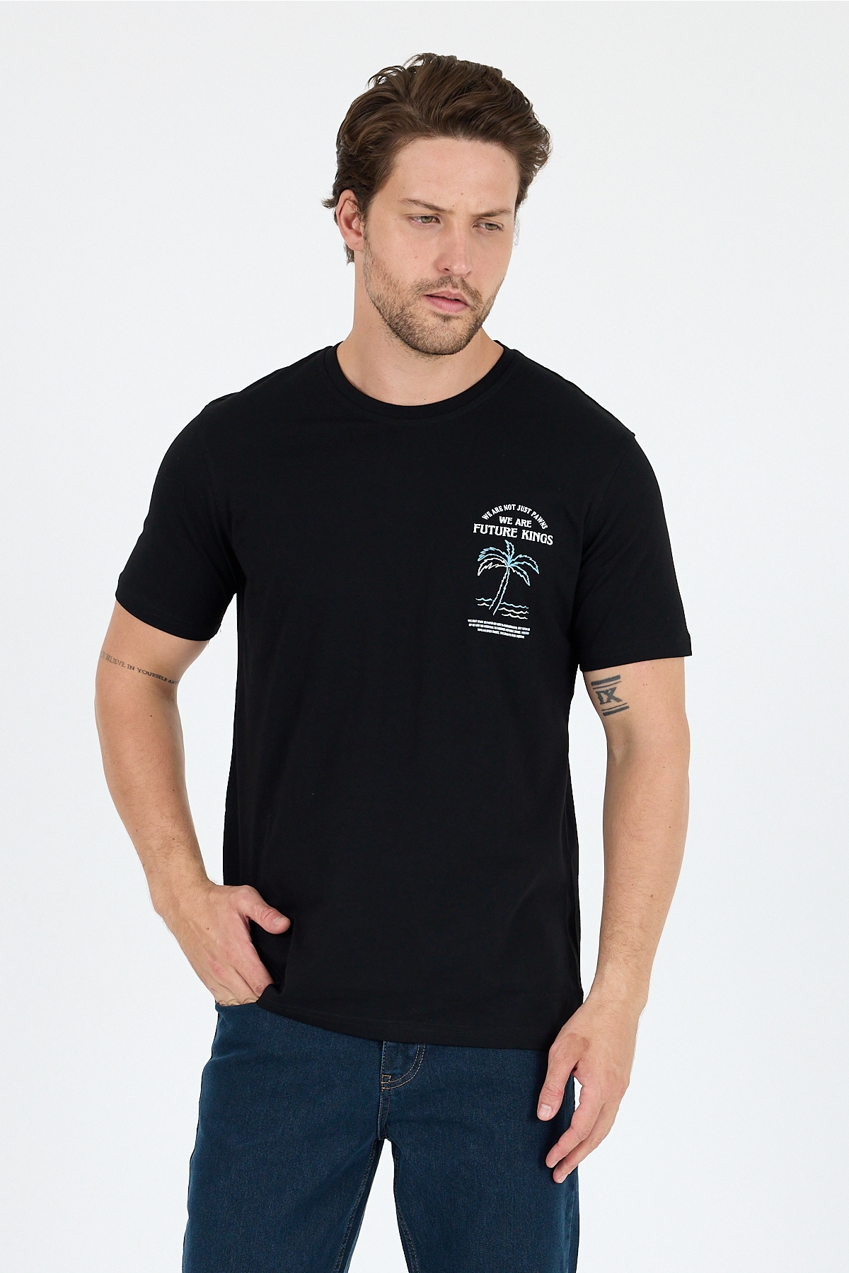 AnasayfaGiyimTişörtKısa kollu tişörtRegular fit pamuk bisiklet yaka baskılı penye erkek tişört 0027