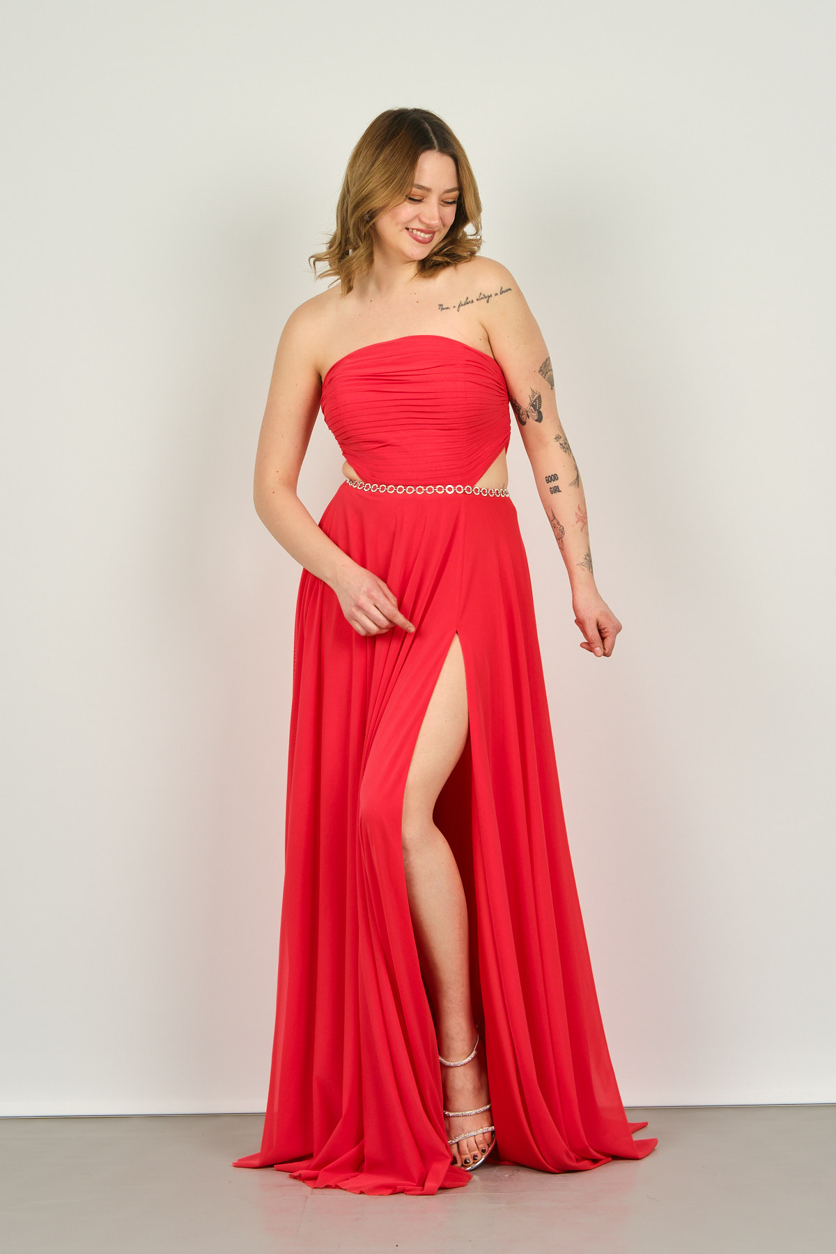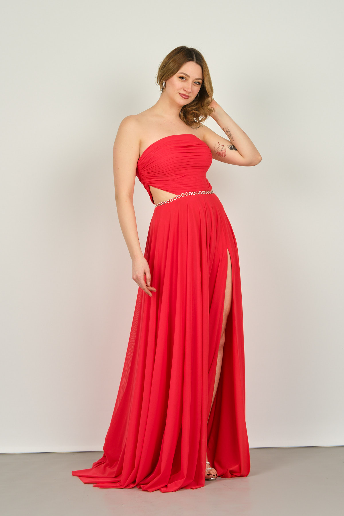Ürün Tipi: Abiye Elbise;Materyal Bilgisi: %100 Polyester;Kalıp Bilgisi: Standart;Detay: Derin yırtmaçlı, sırt detaylı, astarlı, uzun abiye elbise;Model Ölçüleri(cm) / Üzerindeki Ürün: Boy - 175, Göğüs - 87, Bel – 65, Kalça - 93 / 40 beden;