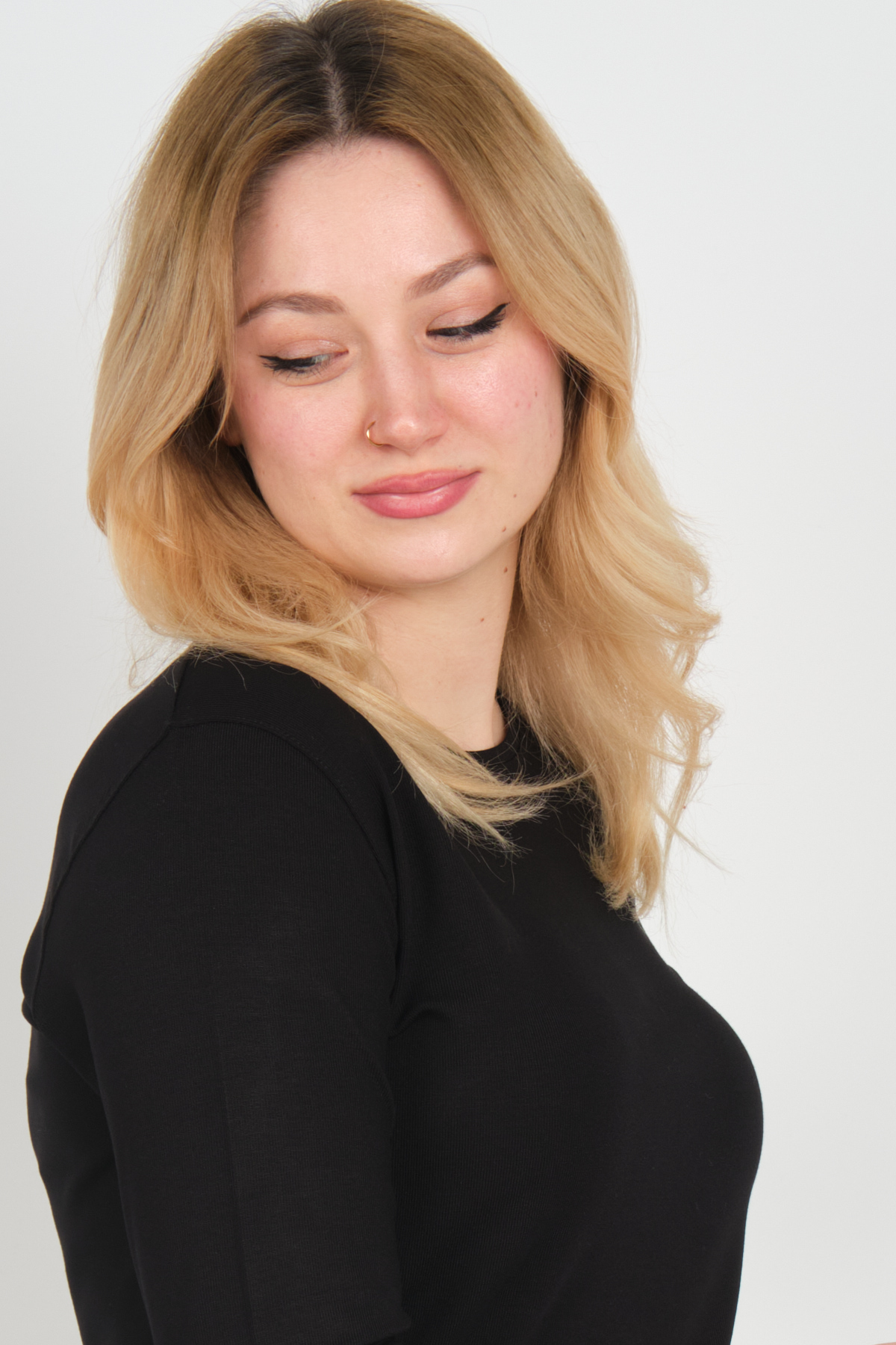 Ürün Tipi: Bluz;Kalıp Bilgisi: Tam kalıp;Materyal Bilgisi: 94% Viskon, 6% Elastan;Menşei : Türkiye (TR);Detay: Truvakar kol, bisiklet yaka ve viskon kumaşın birleşimiyle tasarlanan basic bluz, sade ve şık görünümüyle günlük kombinlerin vazgeçilmez parçalarından biridir. Hafif ve nefes alabilir viskon yapısı sayesinde gün boyu konfor sağlarken, truvakar kol kesimi modern ve zarif bir duruş kazandırır. Bisiklet yakası, farklı tarzlara uyum sağlayan klasik bir detay sunarken, basic tasarımı sayesinde hem tek başına hem de katmanlı kombinlerde rahatlıkla kullanılabilir. Zamansız ve fonksiyonel bir seçenek arayanlar için ideal bir tercih oluşturur;Model Ölçüleri(cm) : Boy - 175, Göğüs - 94, Bel - 72, Kalça –99 / Kilo: 64 Kg;Manken Üzerindeki Beden: S beden;Ürün Boyu(cm): 64;