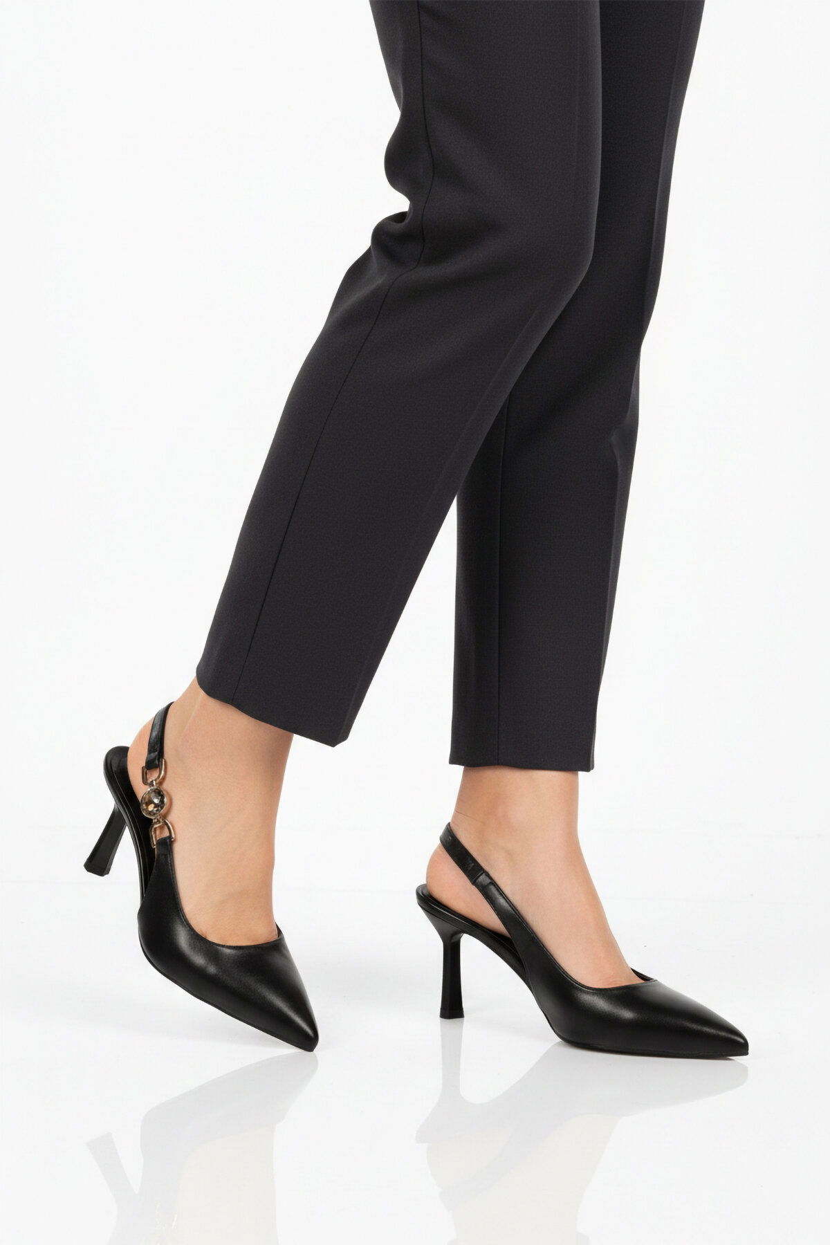 - İnce ve parlak topuk detayıyla dikkat çekicidir.