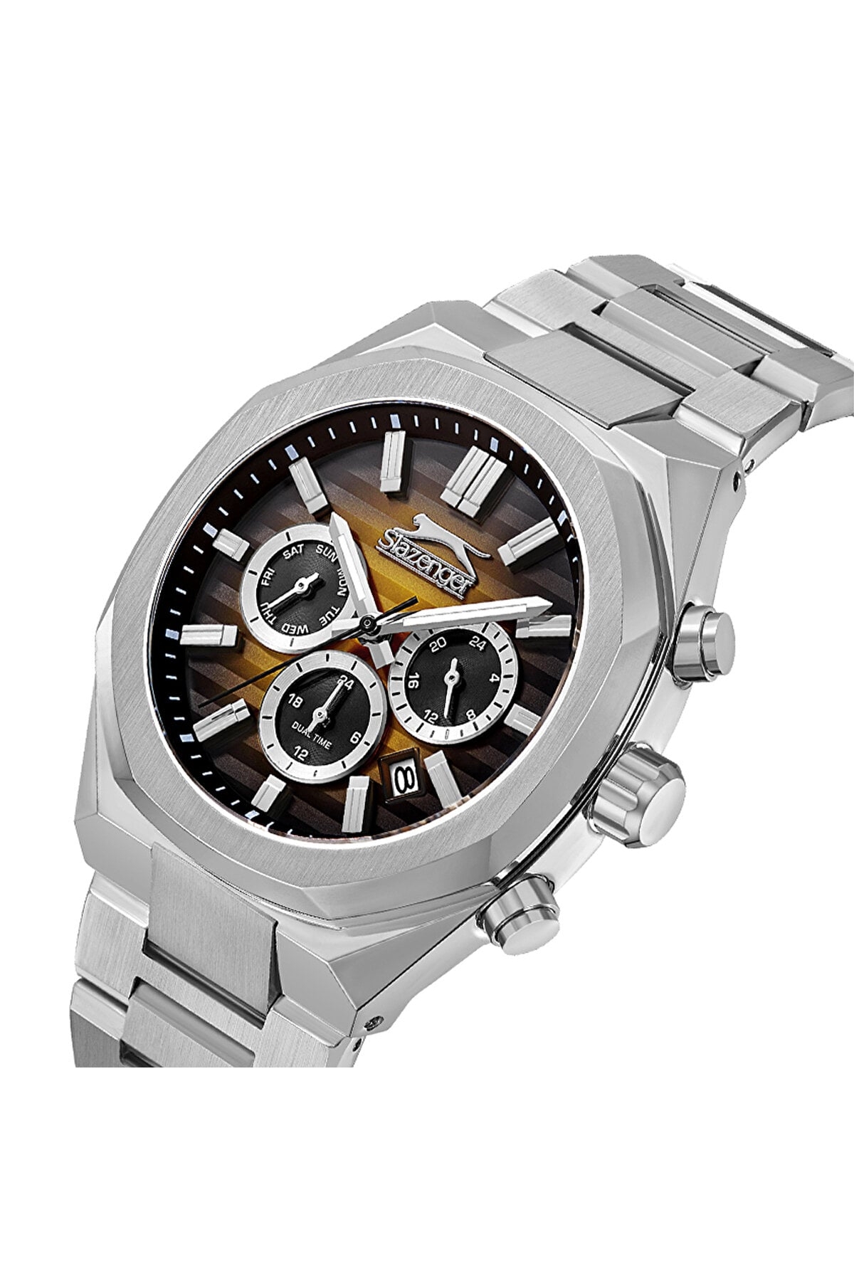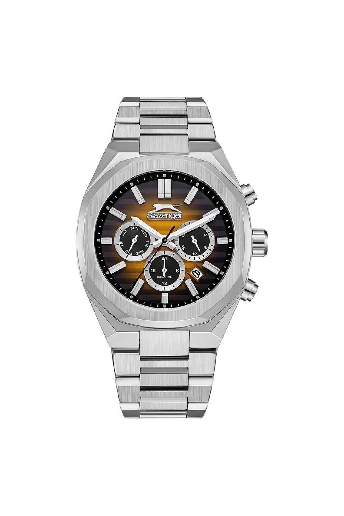 Ürün Özellikleri: Kasa Çapı: 45 MM Suya Dayanıklık: 5 ATM Mekanizma: Quartz Slazenger, 1881 yılında İngiltere’de kurulmuş, köklü geçmişiyle dünyanın en eski spor markalarından biridir. Kurulduğu günden itibaren kalite, dayanıklılık ve yenilikçi tasarım anlayışıyla öne çıkan marka; tenis, kriket ve golf başta olmak üzere birçok spor dalında profesyonellerin tercihi olmuştur. Sportif, güncel ve modern tasarımları; yenilikçi üretim teknikleri ve yüksek kalite materyallerle birleştiren Slazenger, günlük kullanım için ürettiği saat koleksiyonları ile sınırları zorlamaya devam ediyor. Dinamik, sosyal, sporla ilgilenen ve stiline önem verenlerin tercihi Slazenger saat. Uzun yıllar boyunca Wimbledon gibi prestijli turnuvaların resmi tedarikçisi olan Slazenger, spor dünyasındaki bu güçlü mirasını günlük hayata taşıyarak aksesuar ve saat koleksiyonlarını geliştirmiştir. Slazenger kol saatleri, markanın sportif ruhunu modern tasarım ve fonksiyonellikle birleştirerek zamansız bir stil sunar.Bugün Slazenger; dünya genelinde güvenilen, kaliteli ve ulaşılabilir ürünleriyle hem spor hem de şıklığı bir arada arayanların tercih ettiği global bir marka olmaya devam etmektedir. Slazenger kol saati, modern tasarımı, dayanıklı yapısı ve dünyaca bilinen marka güvencesiyle saat tutkunlarının vazgeçilmez tercihlerinden biridir. Spor şıklığı klasik çizgilerle buluşturan Slazenger saat modelleri, günlük kullanımda olduğu kadar özel anlarda da stilinizi tamamlar. Kalite ve estetiği bir arada sunan orijinal Slazenger kol saati, hem erkek kol saati hem de kadın kol saati seçenekleriyle geniş bir kullanıcı kitlesine hitap eder. Ergonomik tasarımı sayesinde bilekte konforlu bir kullanım sunar ve uzun süreli kullanıma uygundur. Slazenger saat, dayanıklı kasa yapısı, uzun ömürlü mekanizması ve dikkat çekici tasarımıyla ön plana çıkar. Spor, klasik ve casual kombinlerle kolayca uyum sağlar. Bu özelliğiyle hem iş hayatında hem günlük kullanımda güvenle tercih edilir. Markalı kol saati arayanlar için Slazenger, performans açısından öne çıkan bir seçenektir. Slazenger kol saatleri, şıklığından ödün vermeden kaliteli bir saat kullanmak isteyenler için ideal bir alternatiftir. Ayrıca sevdikleriniz için hediye kol saati olarak da oldukça şık ve anlamlı bir tercihtir. Doğum günü, yıl dönümü, özel günler ve kurumsal hediyeler için ideal bir seçenek olan bu kol saati; estetik görünümü, konforlu kullanımı ve güven veren yapısıyla sevdiklerinize değerli bir hediye sunmanızı sağlar. Hediyelik saat modelleri arasında yüksek talep görmesi, kullanıcı memnuniyetinin en güçlü göstergesidir. Slazenger kol saati, zamana değer verenlerin, stilini güçlü bir aksesuarla tamamlamak isteyenlerin ortak noktasıdır. Siz de Slazenger kalitesini keşfedin, tarzınızı bileğinizde yansıtın.