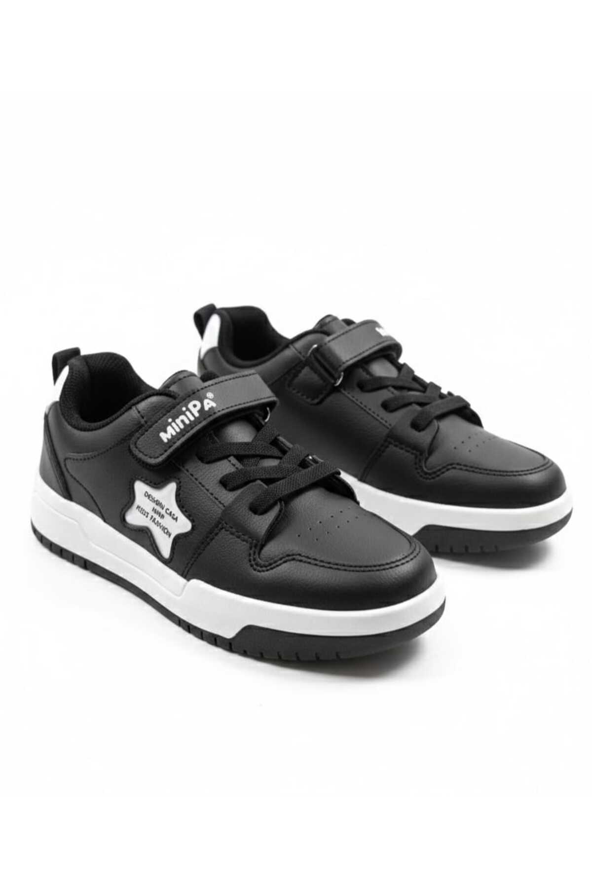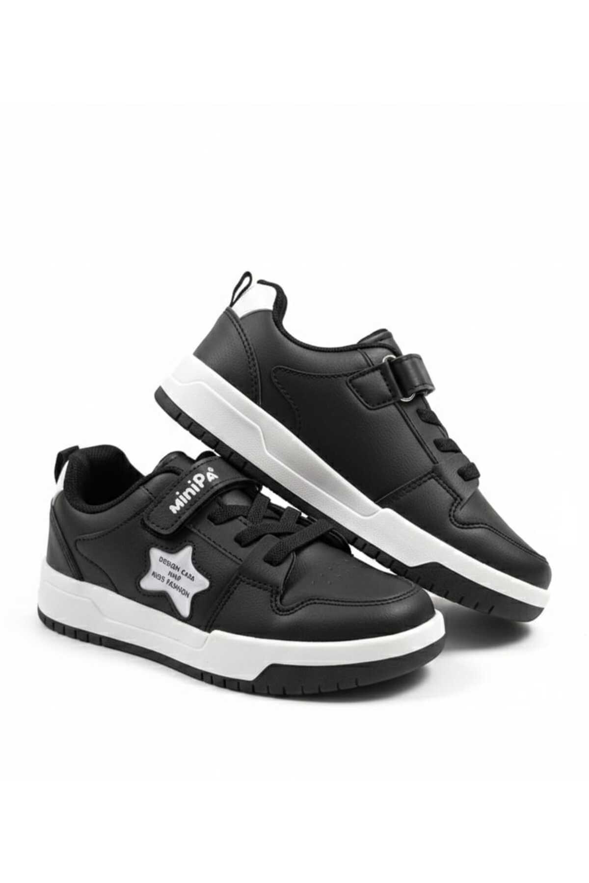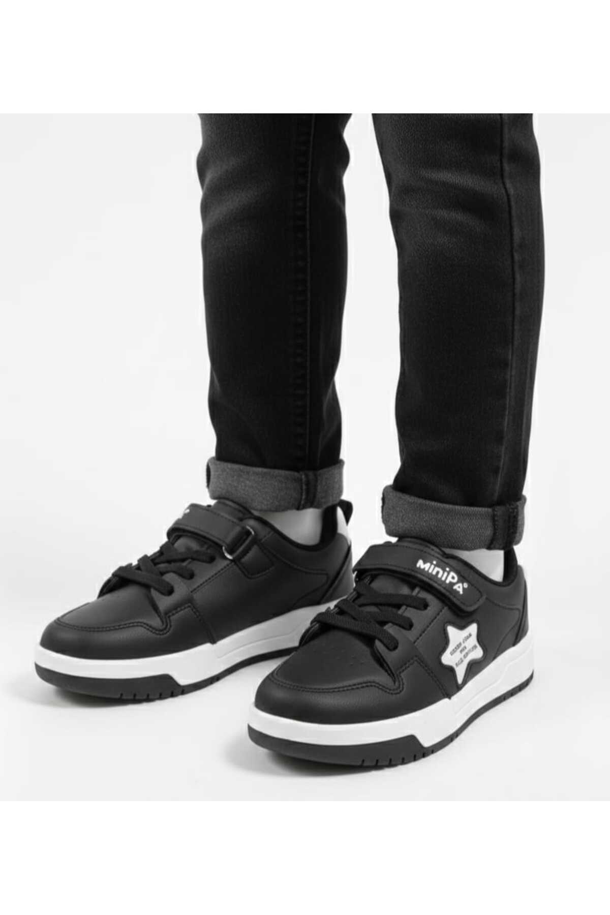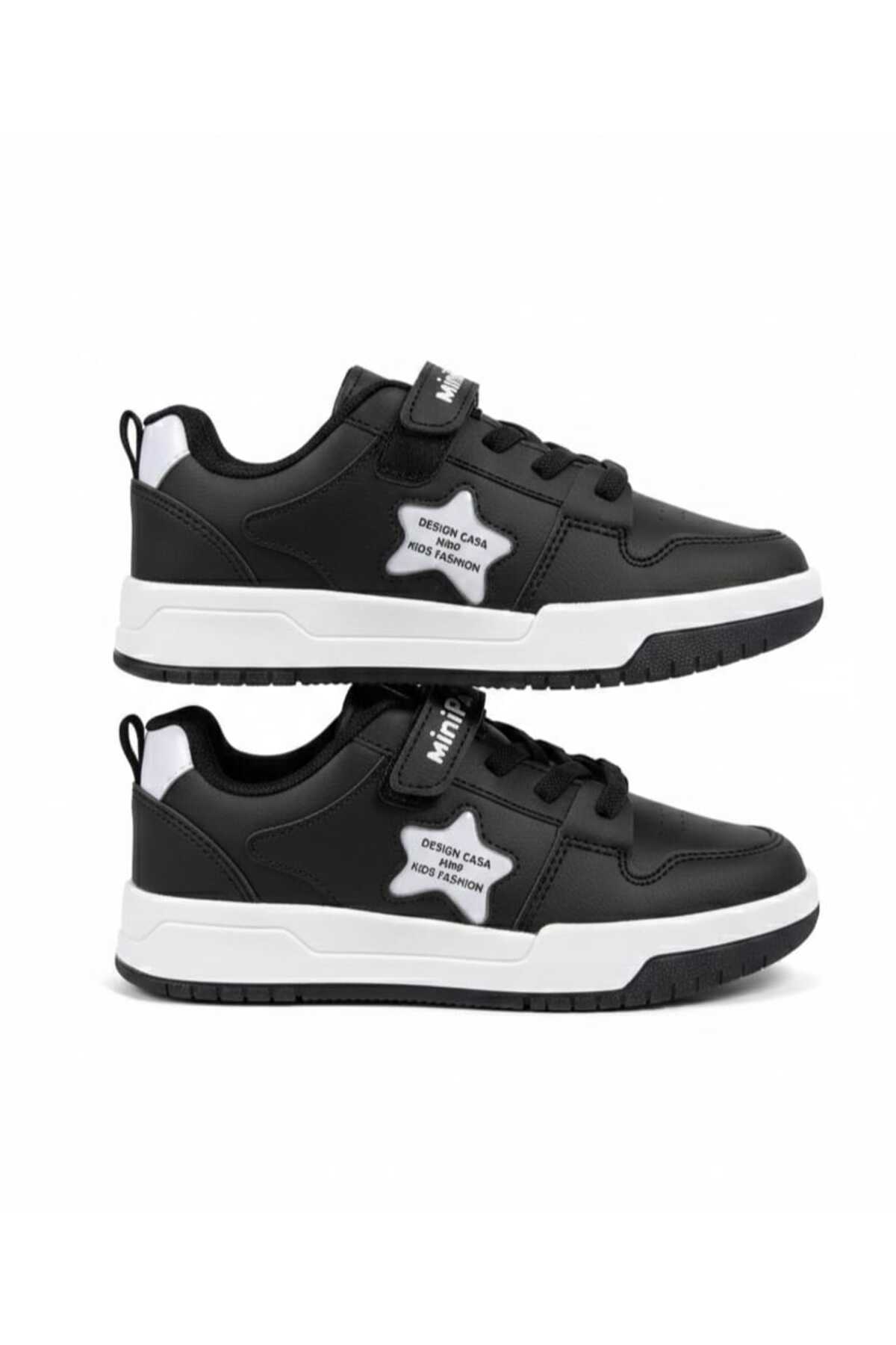- Unisex tasarımıyla hem kız hem de erkek çocukların rahatlıkla kullanabileceği bir modeldir.; - Suni deri materyali sayesinde dayanıklı ve uzun ömürlü bir kullanım sunar.; - Ortopedik tabanı ile çocukların ayak sağlığını destekler ve konforlu adımlar atmalarını sağlar.; - Cırt bant ve bağcık kombinasyonu, kolay giyip çıkarma imkanı sunarken ayakkabının ayağa tam oturmasını sağlar.; - Siyah ve beyaz renk kombinasyonu ile şık ve zamansız bir görünüm elde edilir.; - Düz taban yapısı, günlük kullanım için idealdir ve çocukların rahat hareket etmesine olanak tanır.; - Günlük kullanım için tasarlanmış olup, casual ortamlarda rahatlıkla tercih edilebilir.; - Tekstil astar materyali sayesinde ayakların nefes almasını sağlar ve terlemeyi minimize eder.; - Tüm sezonlar için uygun olan bu spor ayakkabı, yıl boyunca rahatlıkla kullanılabilir.; - Kutulu gönderimi ile ürünün hijyenik ve hasarsız bir şekilde teslim alınmasını sağlar.; - Türkiye'de üretilmiştir.