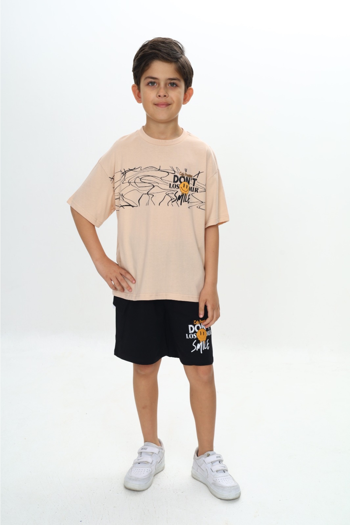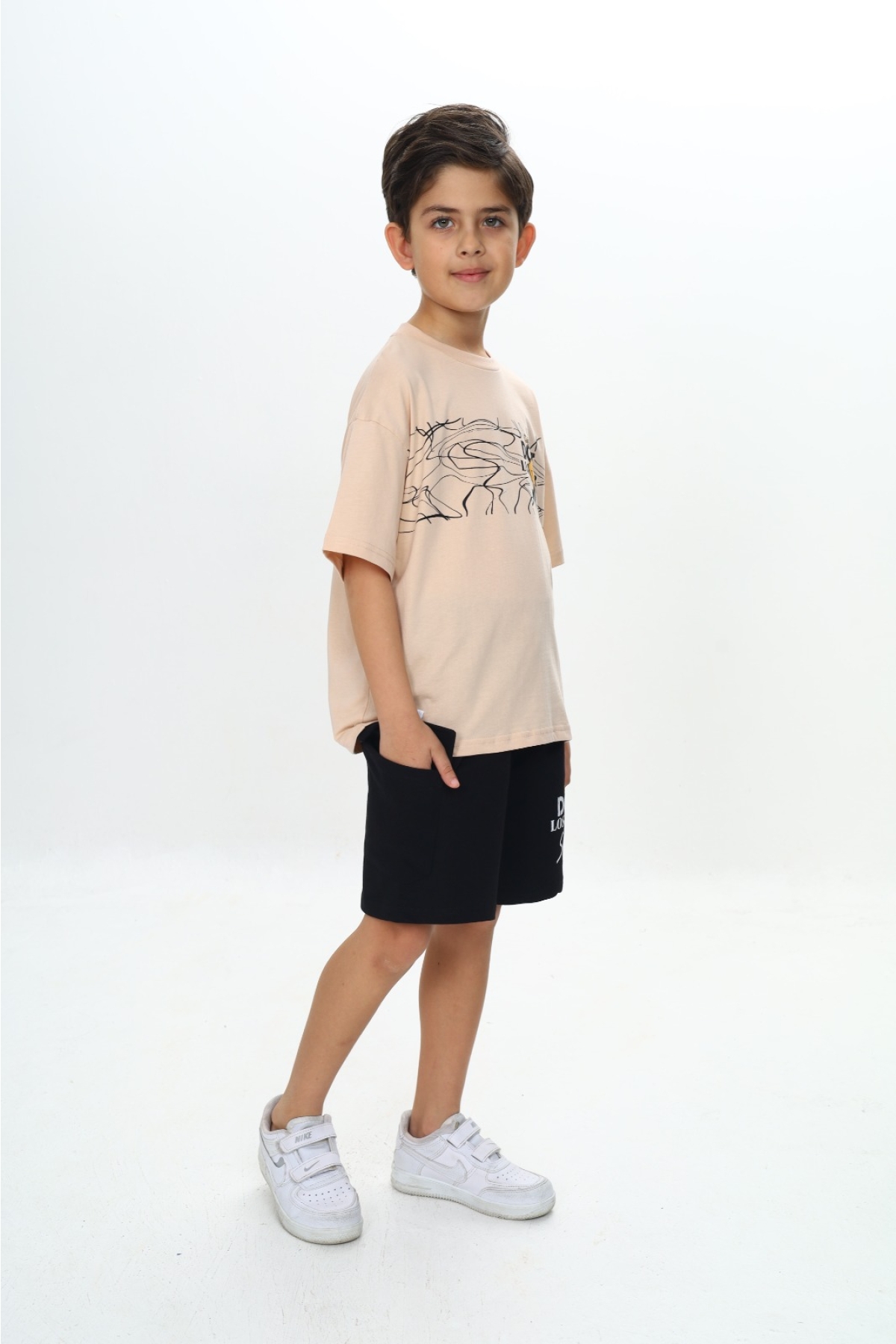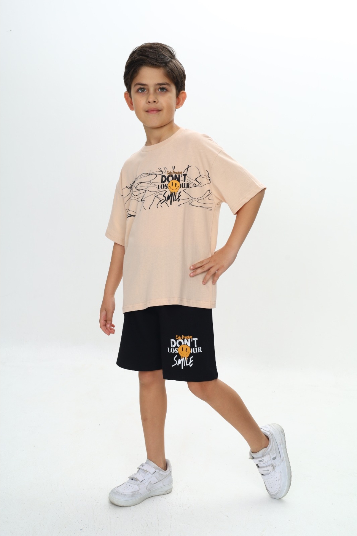 Takım İçeriği Tişört: Bisiklet yakadır. Düşük kol, etek ucu yazı süs etiket detaylıdır. Şort: Kordonludur. Kargo ceplidir. Kumaş Özellikleri Tişört:%100 Pamuk'dan üretilmiştir. Şort :%94 Pamuk %6 Elastan'dan üretilmiştir. Yıkama talimatı: ürünlerimizi daha uzun süre kullanabilmeniz için, lütfen yıkama, kurutma ve ütüleme işlemlerini tersten yapınız. Dikkat stüdyo çekimlerinde ışık farklılığından dolayı ürün renkleri değişiklik gösterebilir.