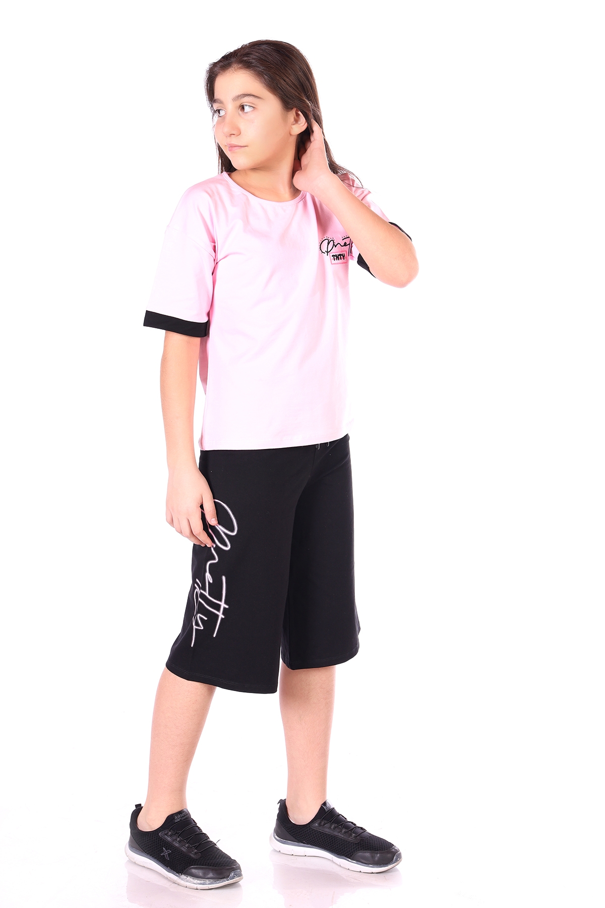 Tişört İçeriği Bisiklet yakadır. Düşük koldur. Kapri İçeriği Kordonludur. Bol paçadır. Kumaş Özellikleri %94 Pamuk %6 Elastan'dan üretilmiştir. Yıkama talimatı: ürünlerimizi daha uzun süre kullanabilmeniz için, lütfen yıkama, kurutma ve ütüleme işlemlerini tersten yapınız. Dikkat stüdyo çekimlerinde ışık farklılığından dolayı ürün renkleri değişiklik gösterebilir.
