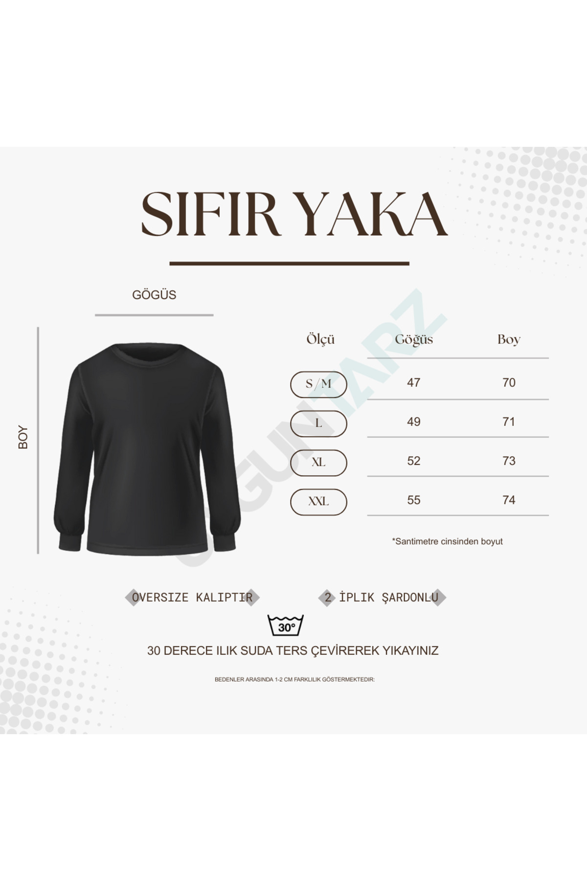 Ürün Özellikleri; Ürünlerimiz %80 pamuk, %20 Polyester üretimdir. Oversize kalıptır. 2 iplik şardonlu kumaş özelliğine sahiptir. Yıkama Önerisi; 30 derece sıcaklıkta ılık suda ve baskılı ürünleri ters çevirerek yıkanması tavsiye edilir. Sweatshirt; | S-M | Göğüs: 47 | Boy:70 | | L | Göğüs: 49 | Boy:71 | | XL | Göğüs: 52 | Boy:73 | | XXL | Göğüs: 55 | Boy:74 | Eşofman Altı; | S-M | Bel: 42 | Boy:97 | | L | Bel: 45 | Boy:99 | | XL | Bel: 49 | Boy:100 | | XXL | Bel: 52 | Boy:101 | Şort; | S-M | Bel: 34 | Boy:48 | | L | Bel: 36 | Boy:49 | | XL | Bel: 38 | Boy:51 | | XXL | Bel: 40 | Boy:53 | Not: Ürün fotoğraflarında kullanılan cihazların ekran ayarları ve ışık koşulları nedeniyle renk tonlarında ufak farklılıklar görülebilir.