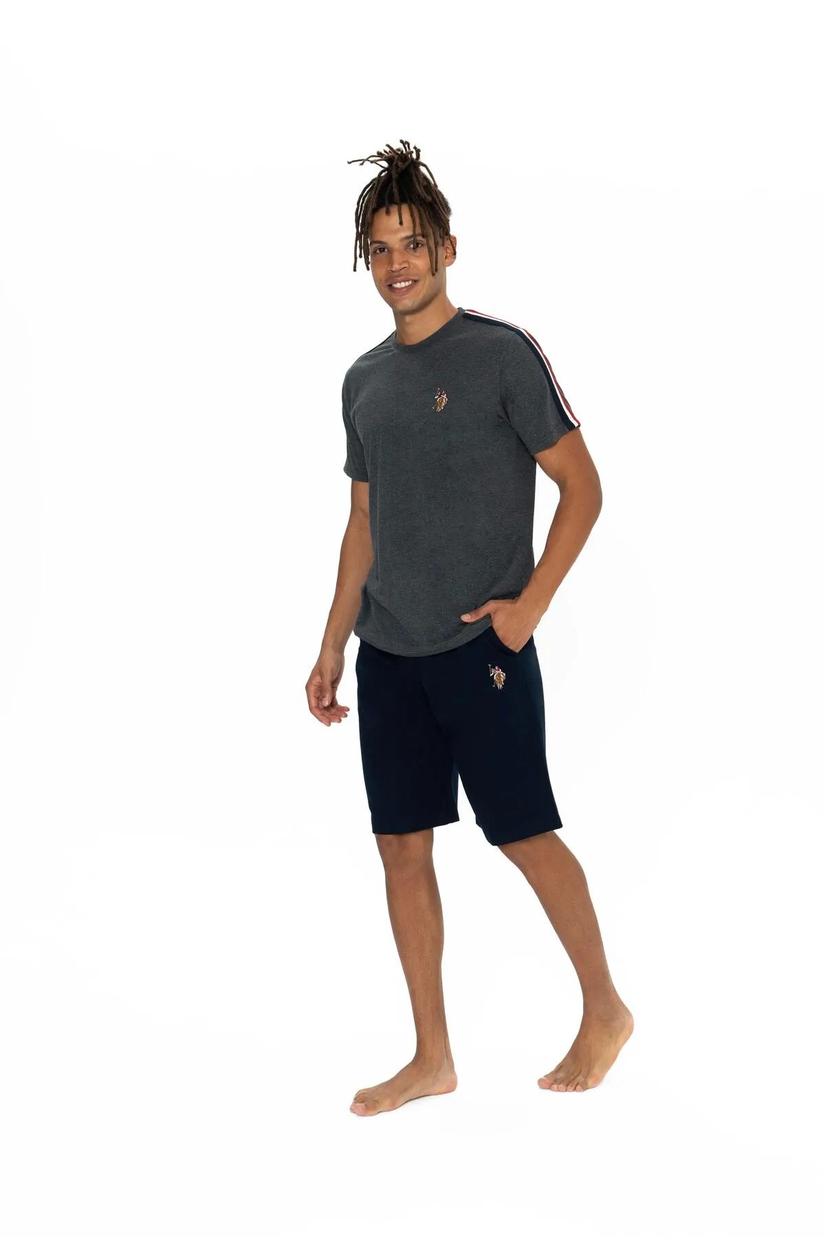 U.S. Polo Assn. logosu ile klasik ve modern görünümü bir araya getirir. U.S. Polo Assn.'nin klasik çizgilerini taşıyan bu pijama seti, hem evde dinlenirken hem de rahat bir uyku için idealdir. Günlük kullanım için tasarlanan bu özel set, yumuşak dokusu ve şık tasarımıyla sizi her an konforlu hissettirecek. Orijinaldir. Paketli bir şekilde gönderilmektedir. Paket içerisinde 1 adet t-shirt ve 1 adet şort bulunmaktadır.Kumaş Bilgisi :Üst %100 Pamuk Alt %50 Pamuk %50 PolyesterFit Bilgisi :Regular Fit