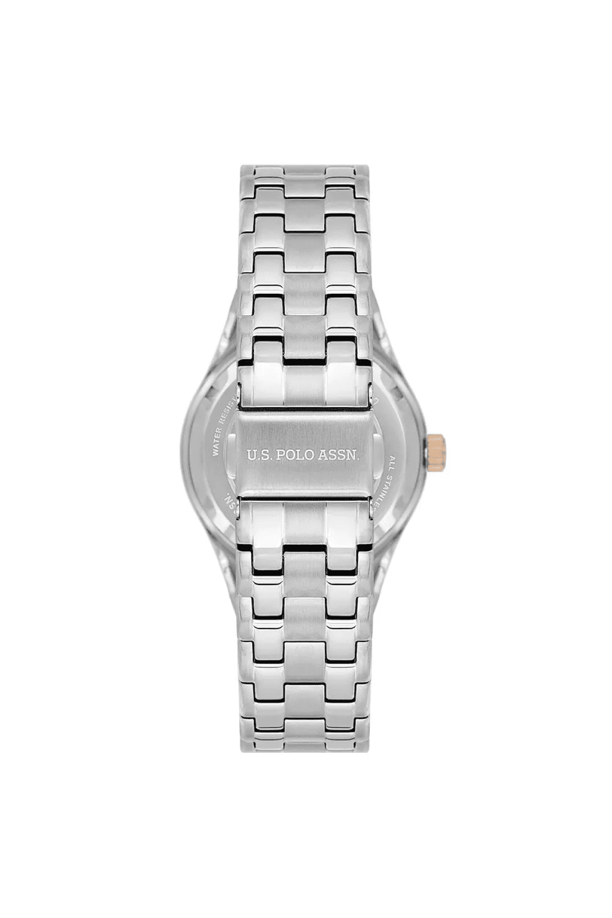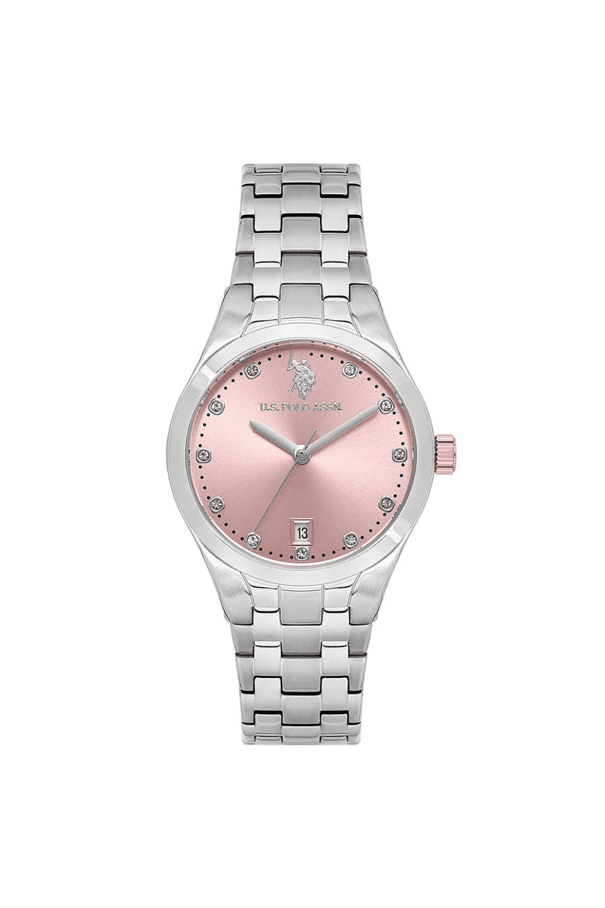 U.S. Polo Assn.’in modern tasarım çizgisini zarif ve feminen detaylarla birleştiren bu model, güvenilir Quartz mekanizma ile çalışarak günlük kullanımda hassas zaman ölçümü sağlar. 33 mm metalik gri çelik kasa ve 10 mm kalınlık ile bilekte şık, dengeli ve modern bir duruş sergiler. Günlük kullanıma karşı dayanıklılık sunan mineral cam koruma sağlarken, taş detaylarıyla ışıltı kazanan pembe analog kadran modele zarif ve sofistike bir görünüm katar. Saat 95 gr ağırlığındadır ve sağlam yapısıyla kaliteli bir kullanım hissi sunar.