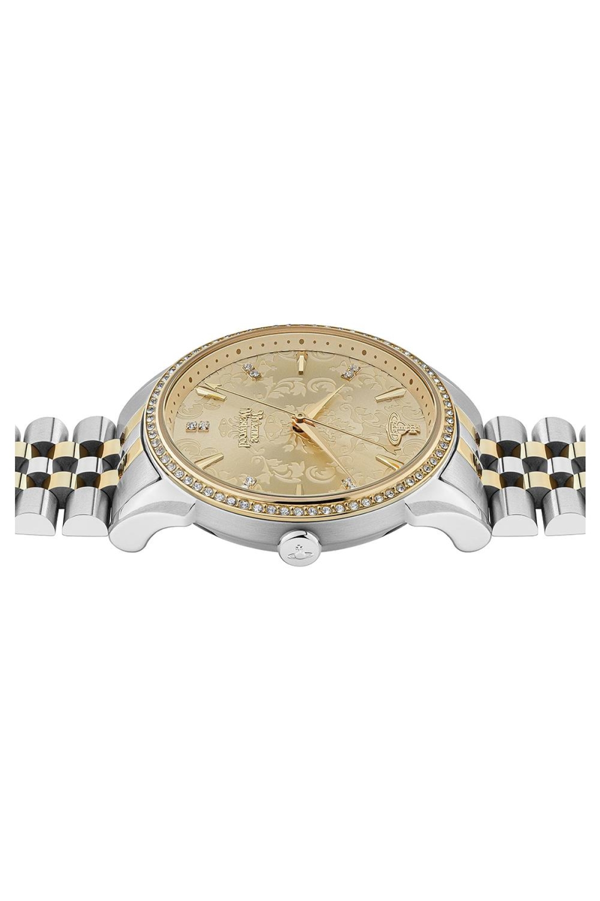 Kasa Çapı: 38 mm - Kasa Şekli: Yuvarlak - Kasa Materyali: Çelik - Kasa Rengi: Rose Gold - Kordon Materyali: Çelik - Kordon Rengi: Gümüş/Altın- Kadran Rengi: Şampanya - Kadran Işığı: Yok - Taş: Var - Çalışma Şekli: Analog - Teknolojisi: Swiss Quartz - Takvim: Yok - Kronometre: Yok - Alarm: Yok - Cam Özelliği: Mineral - Özellik: - Su Geçirmezlik: 5 ATM - Garanti Süresi: 2 Yıl - Cinsiyet: Kadın