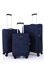 4200 3 LÜ SET Ultra Light Hafif Lüx Kumaş Tekerlekli Valiz LACİVERT